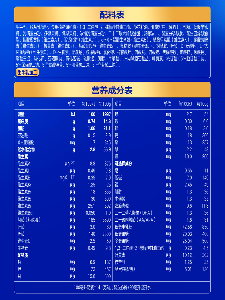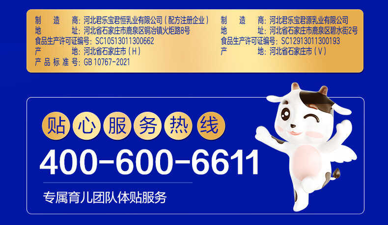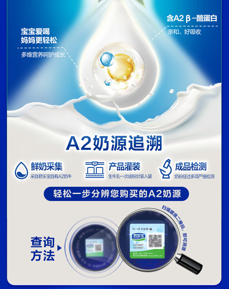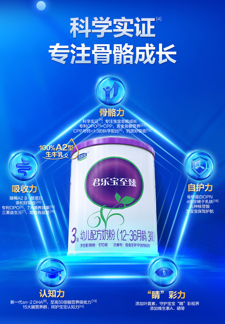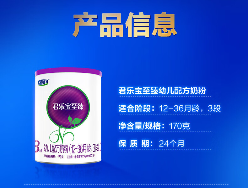君乐宝(JUNLEBAO)至臻 A2奶牛奶粉3段(12-36月龄)听装170g添加OPO+CPP新旧随机发
