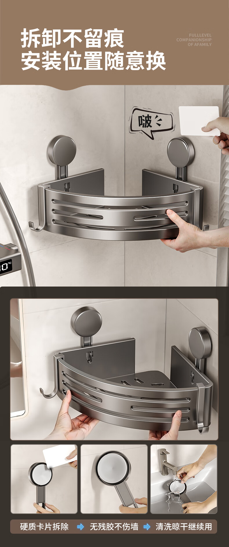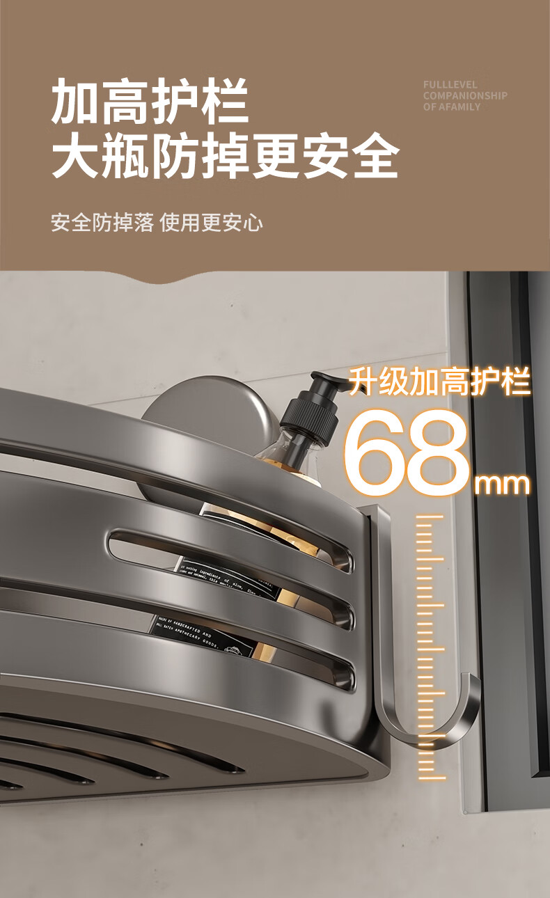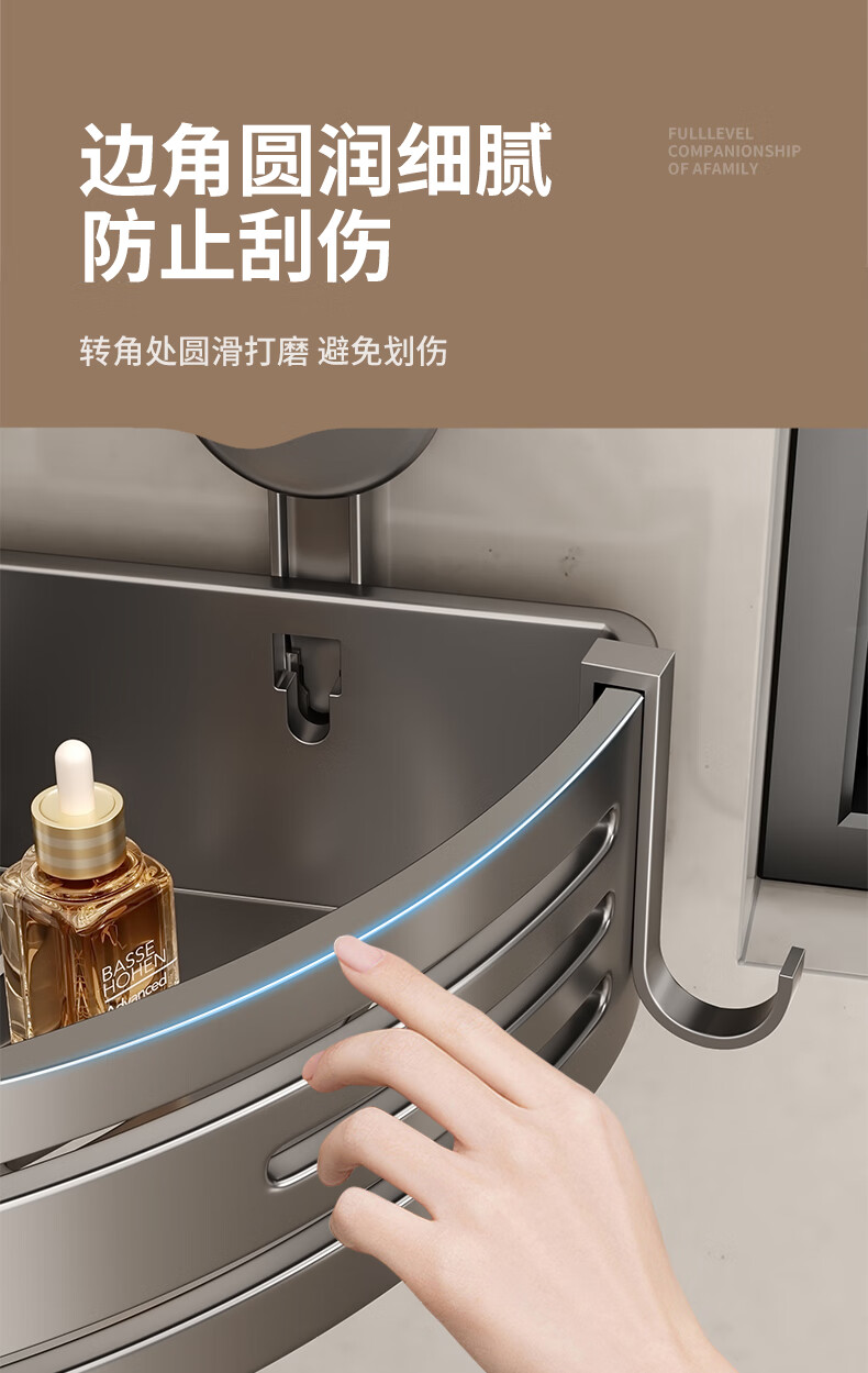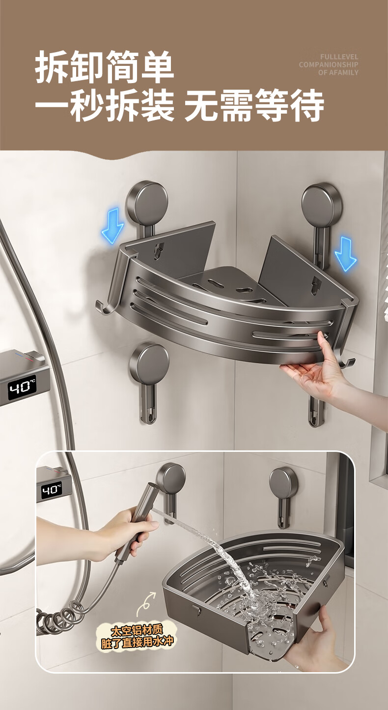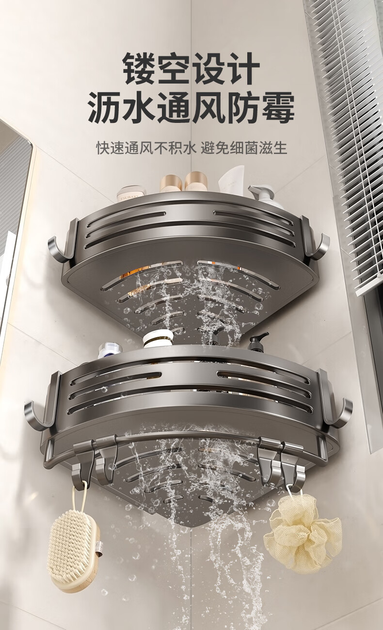 妃驰卫生间置物架吸盘免打孔浴室三角厕所洗漱台转角洗手间收纳架子灰 【加高加厚】吸盘双层四方架