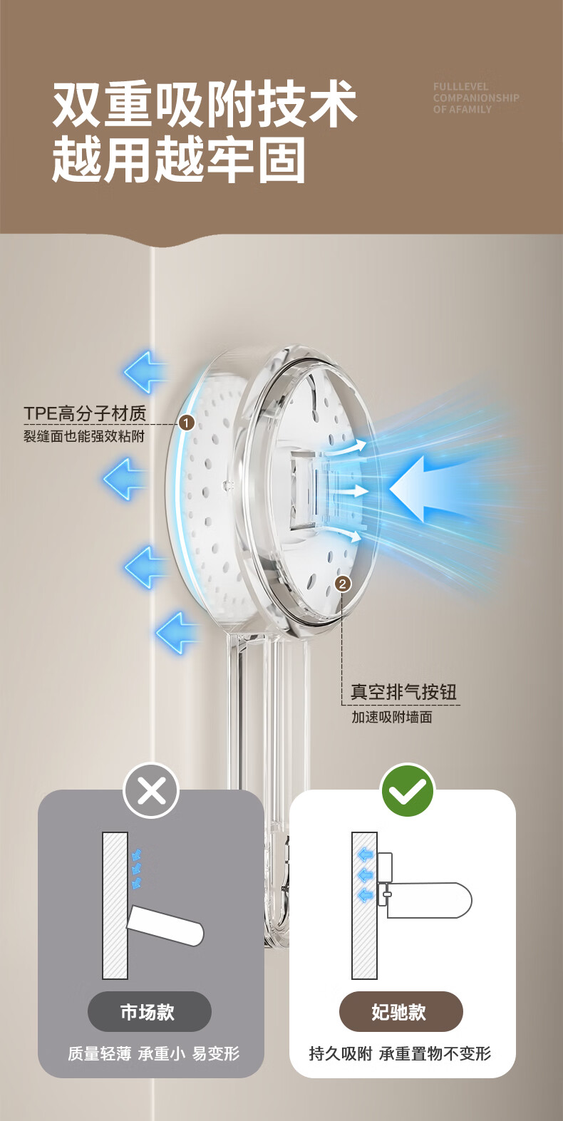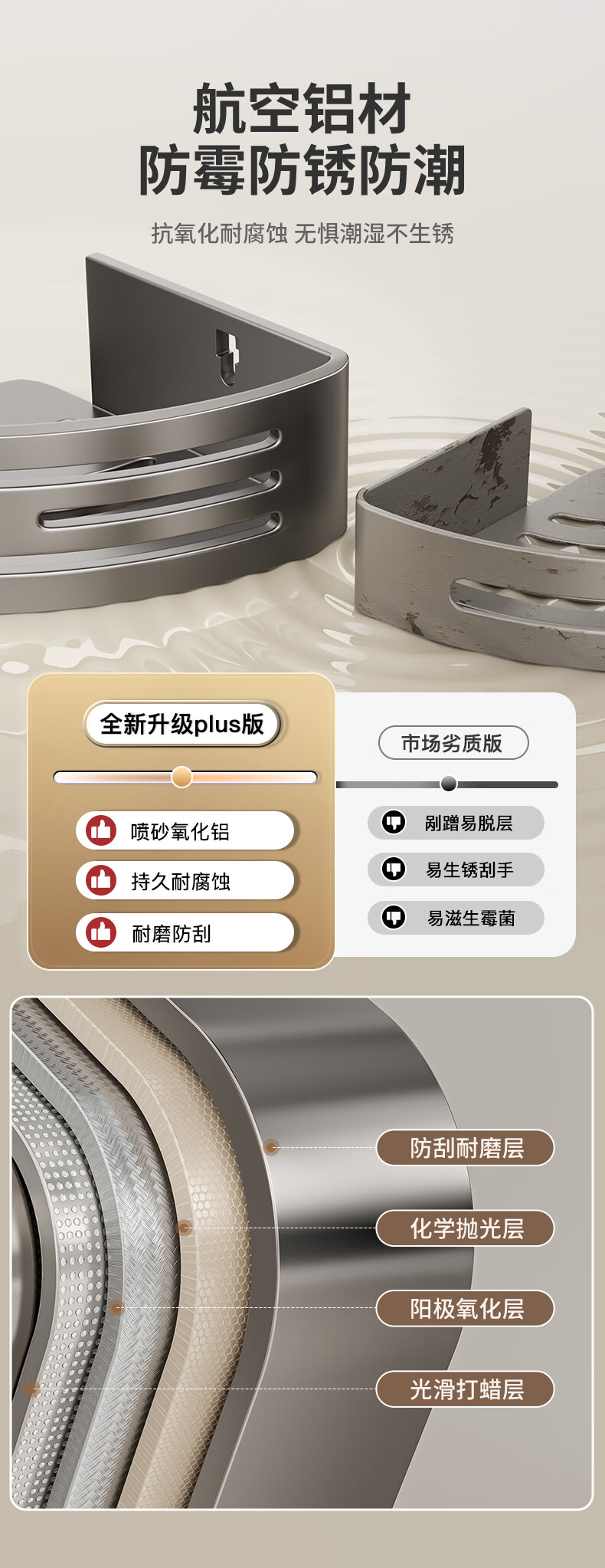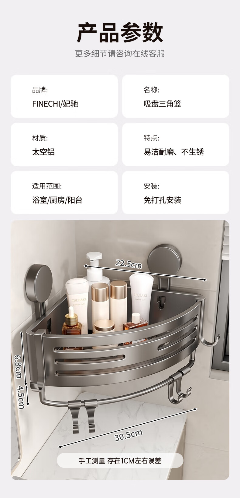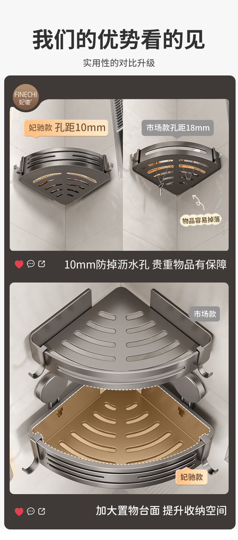 妃驰卫生间置物架吸盘免打孔浴室三角厕所洗漱台转角洗手间收纳架子灰 【加高加厚】吸盘双层四方架