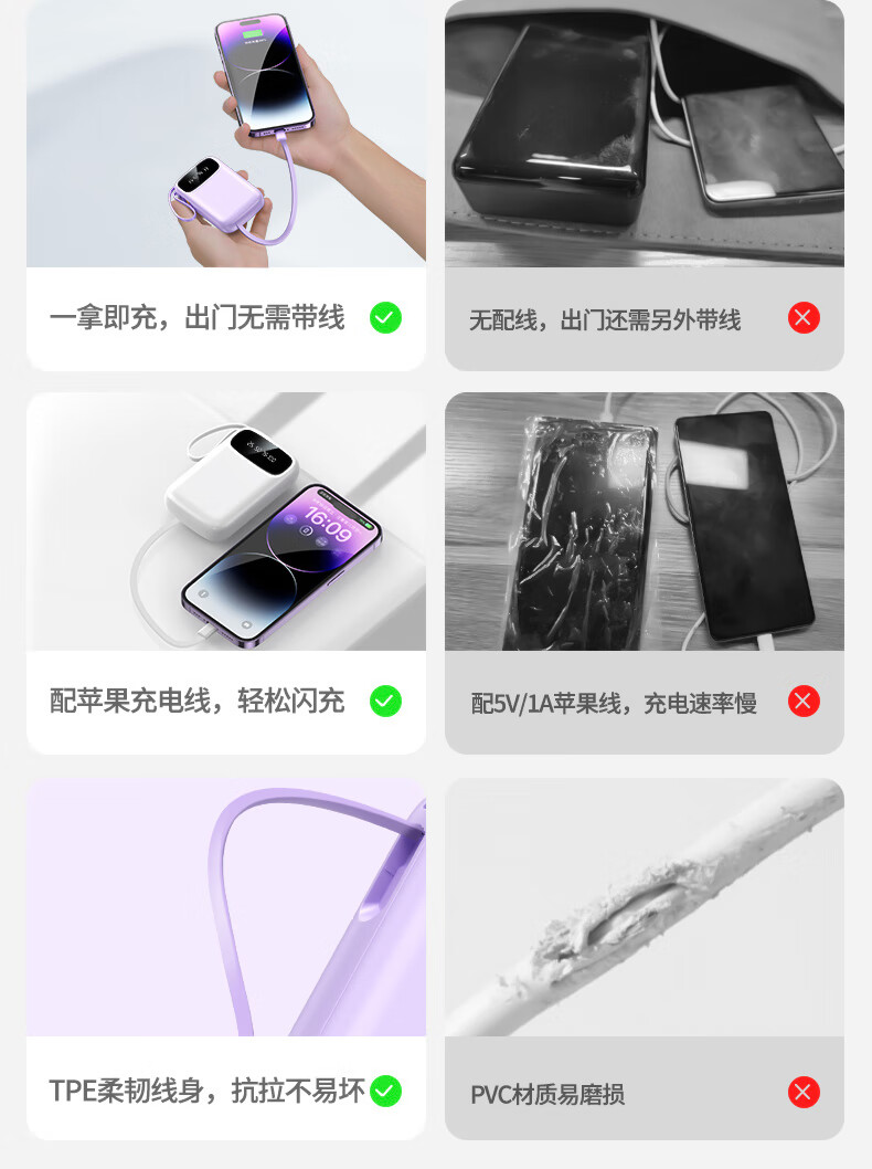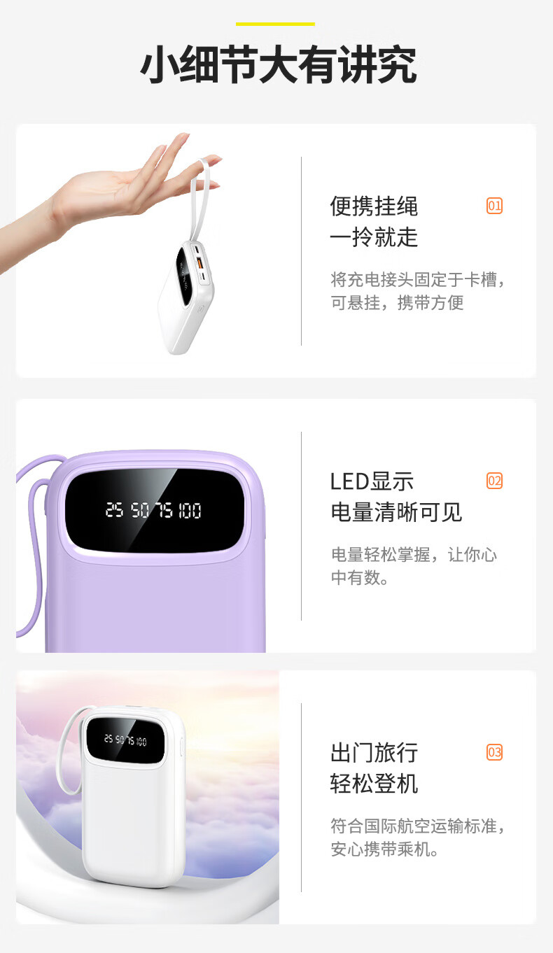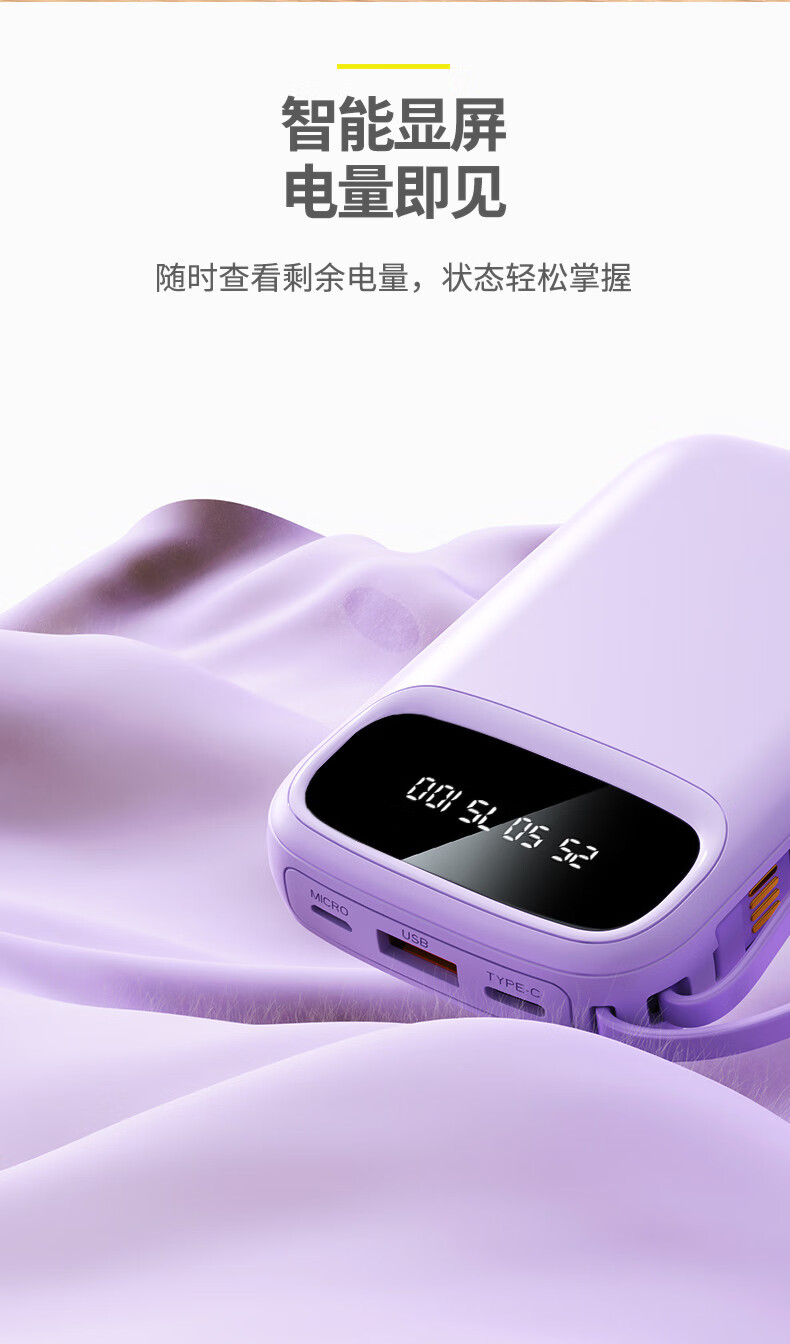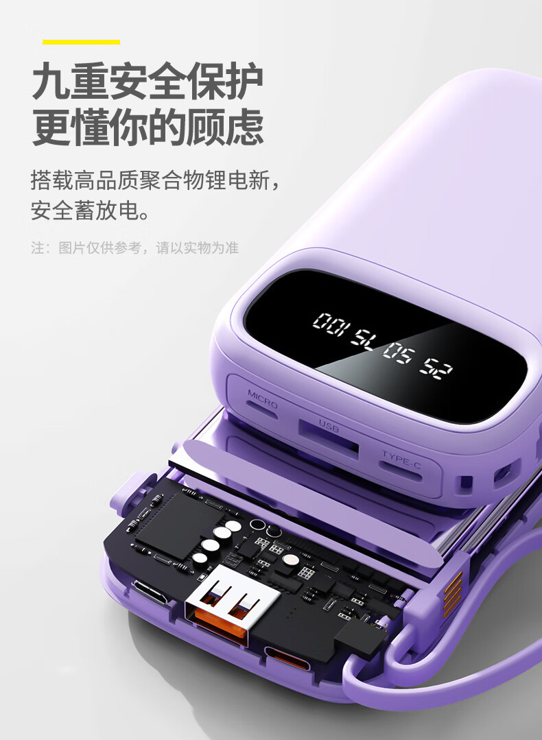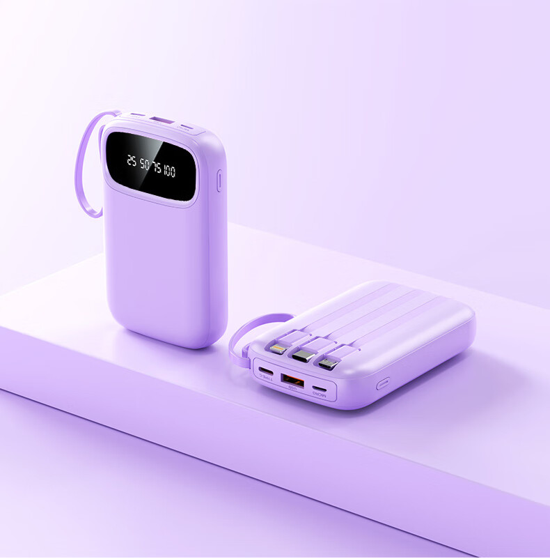 铁达信国标3c认证充电宝 自带线快充10000毫安 迷你超薄便携移动电源可上飞机苹果16/17安卓华为小米vivo 新品【紫色/旗舰版/进口电芯】自带4线