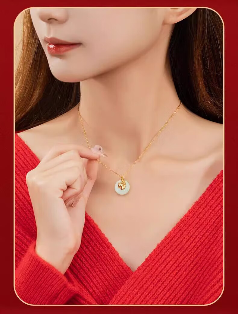 YONGJIE【马到成功】天然a货翡翠玉石生肖马牌翡翠吊坠真品属马男女真玉
