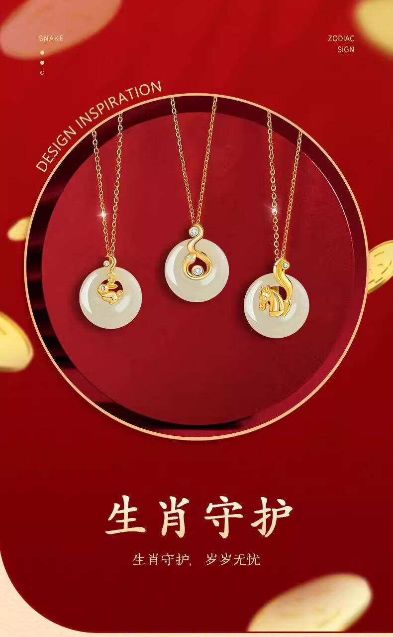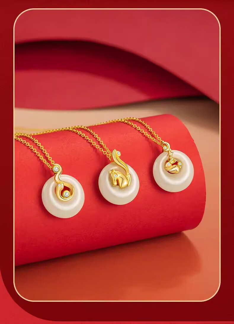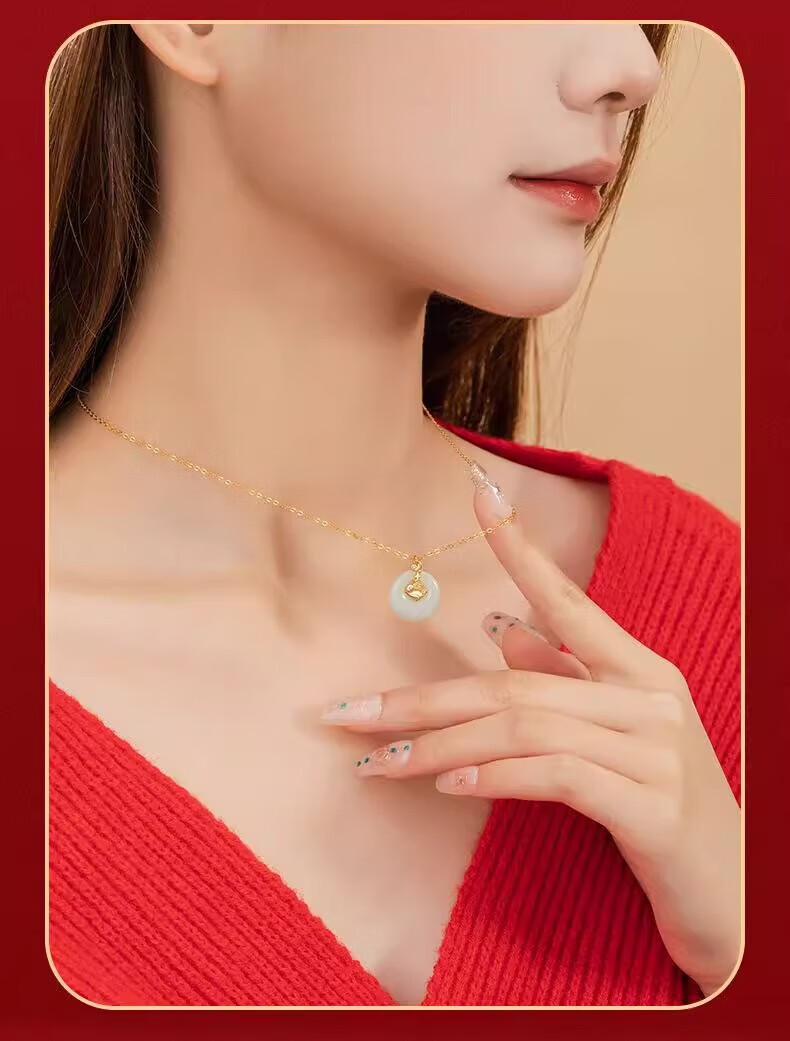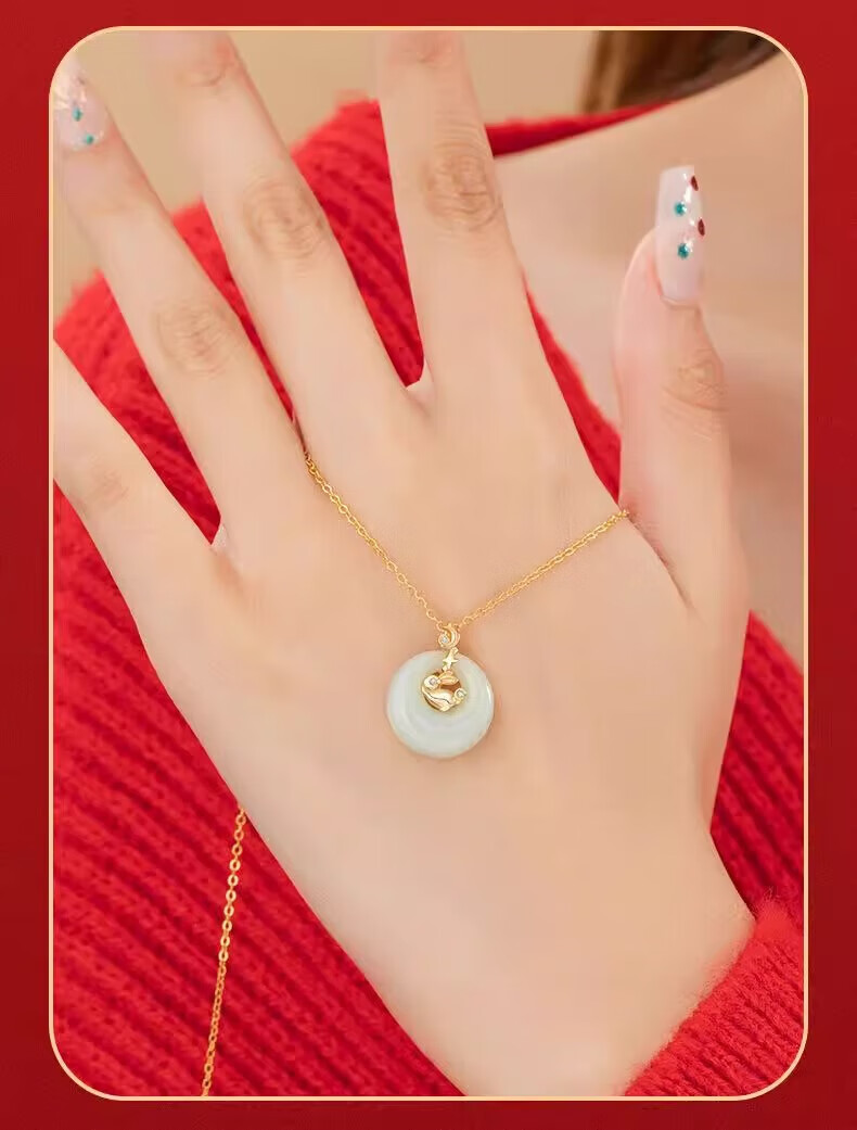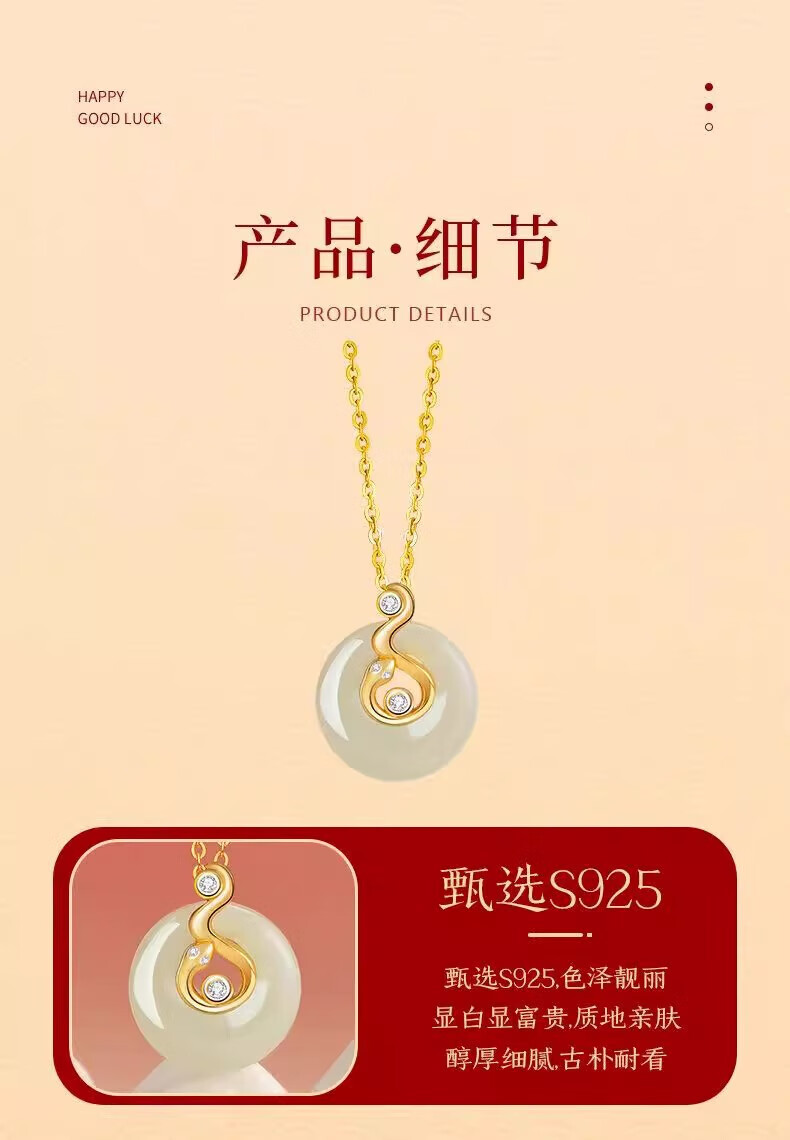 老凤祥S925银和田玉十二生肖项链平安扣吊坠情人节生情人节礼物送女朋友 和田玉十二生肖项链-兔【品牌礼盒】