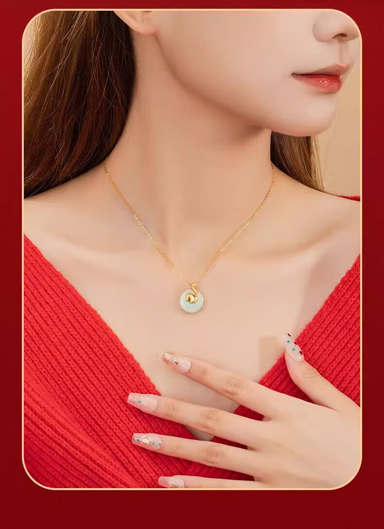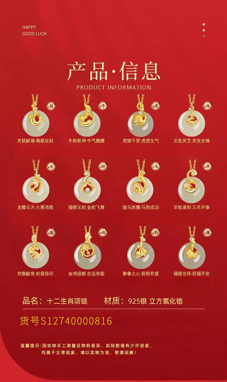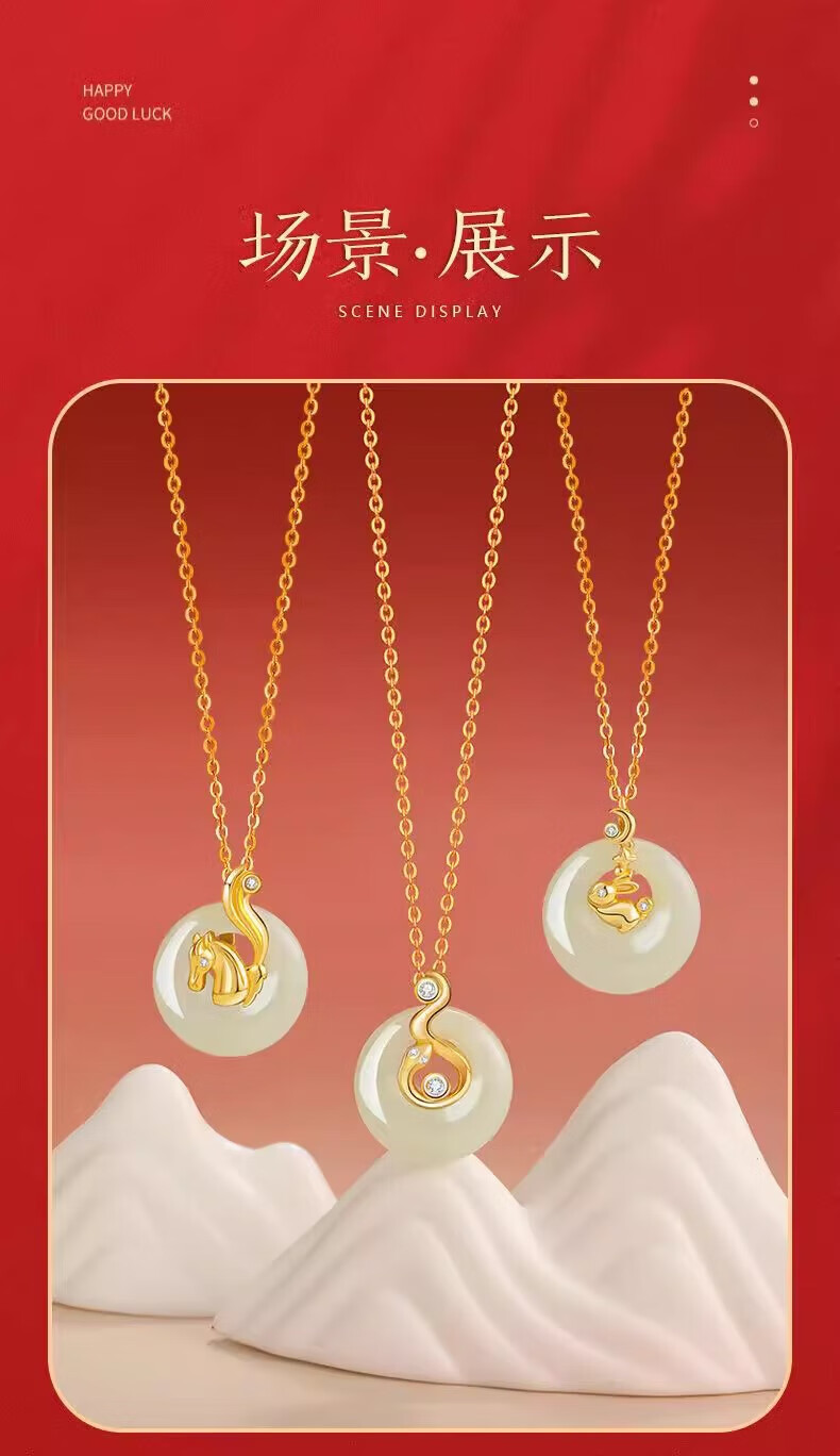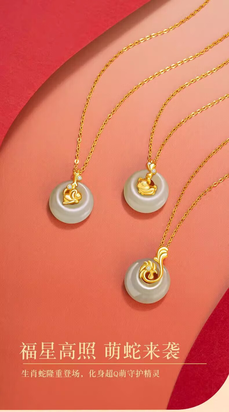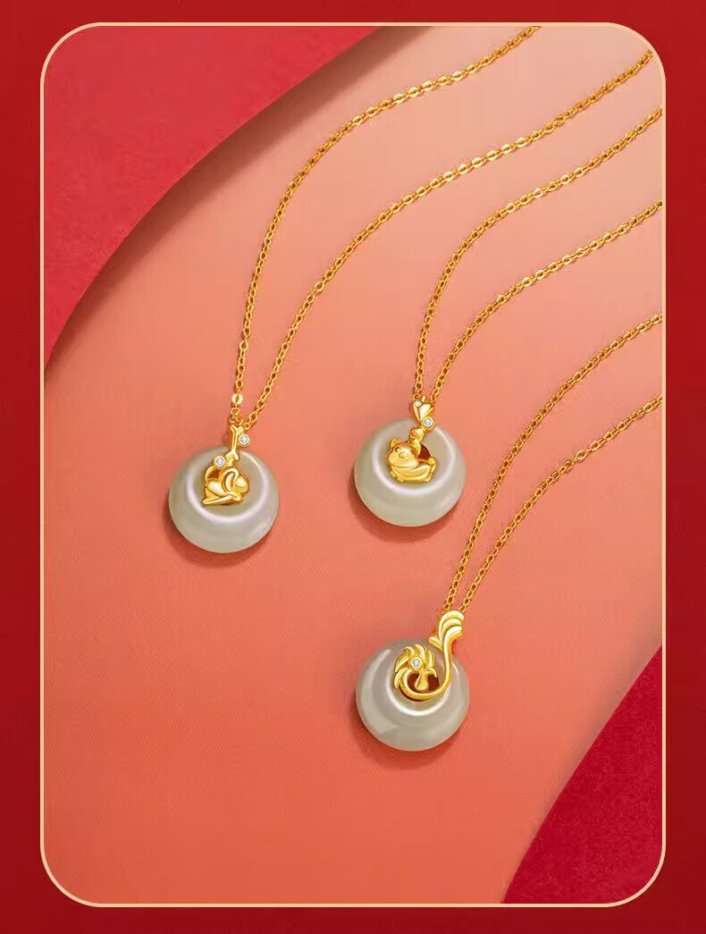 老凤祥S925银和田玉十二生肖项链平安扣吊坠情人节生情人节礼物送女朋友 和田玉十二生肖项链-兔【品牌礼盒】