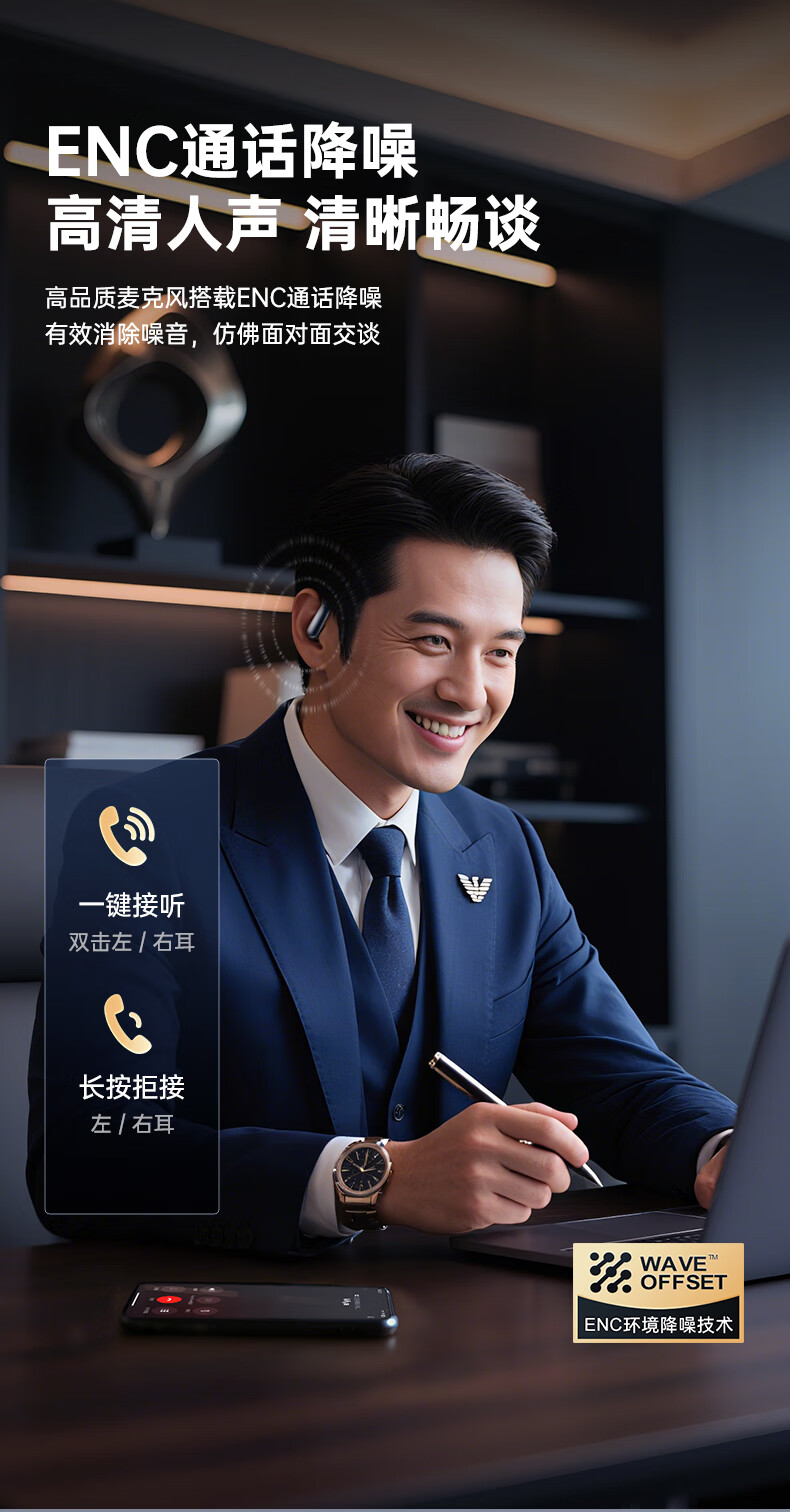 魔声(Monster)Airclip AC200 不入耳式无线蓝牙耳机AI智能耳机 小耳夹主动降噪 6.0蓝牙低延迟新款升级 手机通用 锖黑色【AI智能+40h时长+4g舒适佩戴】