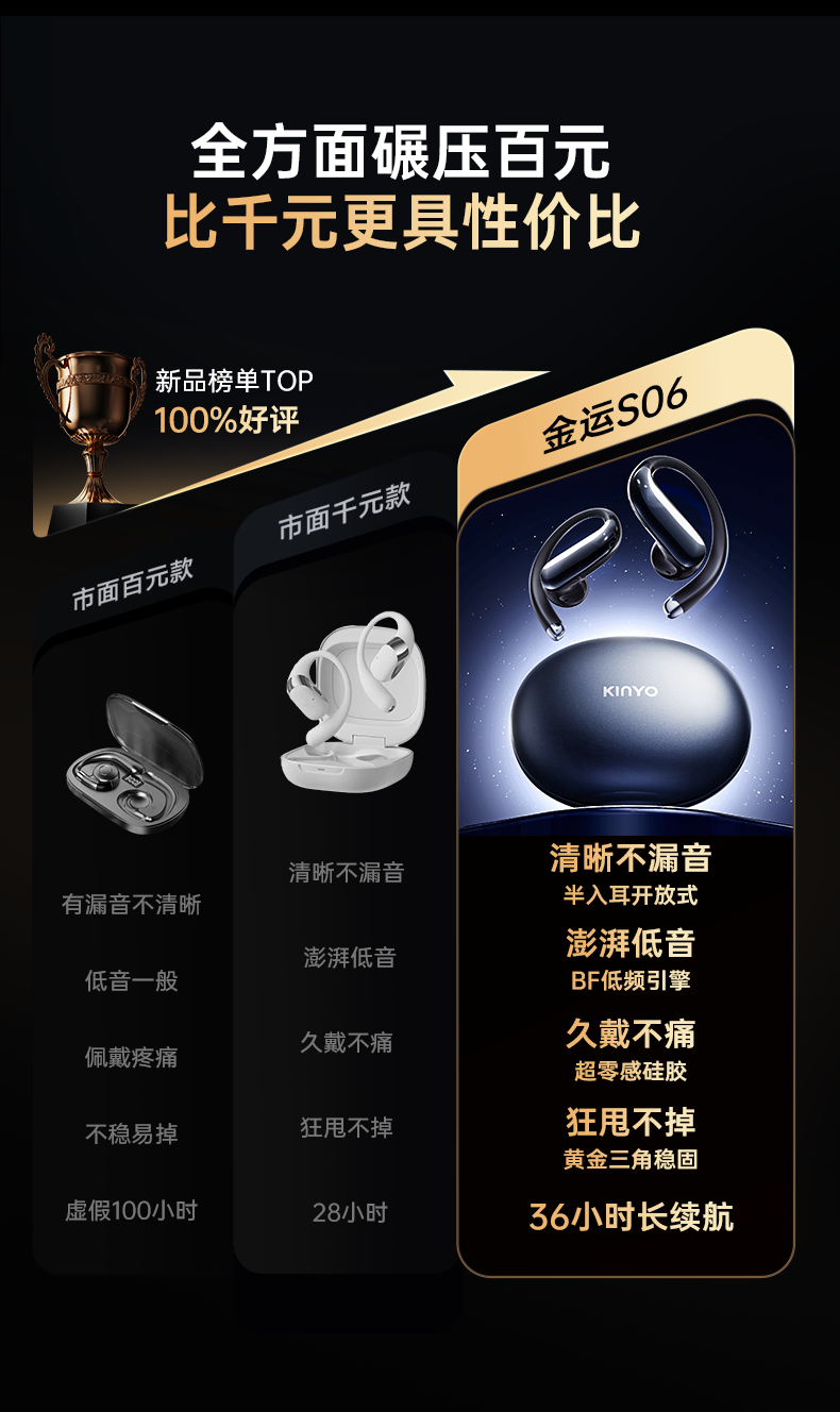 金运【100%好评推荐】蓝牙耳机挂耳式无线开放不入耳运动跑步骨传导超重低音超长续航榜前十 【雅丹黑】AI语音翻译丨同声传译