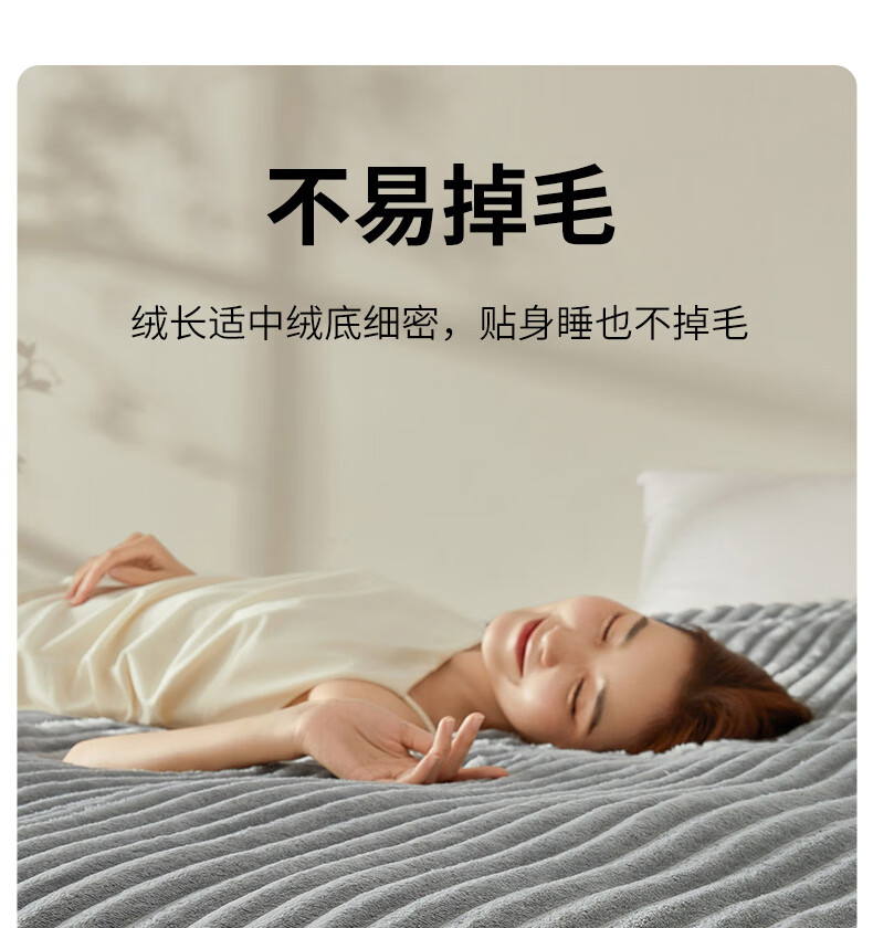 贵人梦电热毯双人双控1.8米2米调温学生宿舍家用防漏电除湿单人电褥子 纯色亲肤绒-智能定时 180*120cm单控