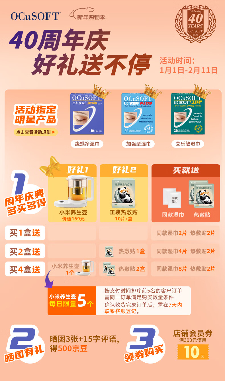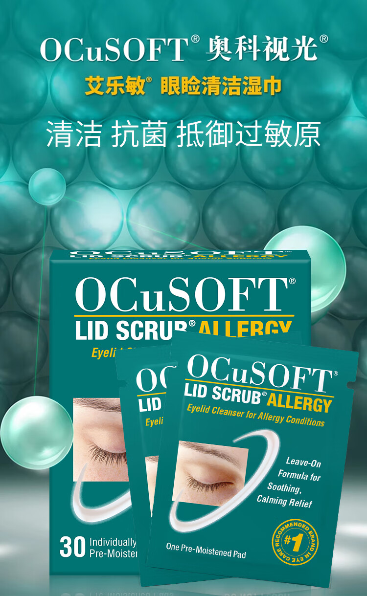 OCuSOFT【眼睛过敏】艾乐敏眼部清洁湿巾 眼睑眼皮发痒抗过敏防护 1盒:30片(效期至26年10月)
