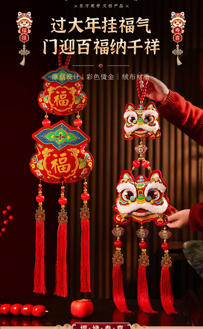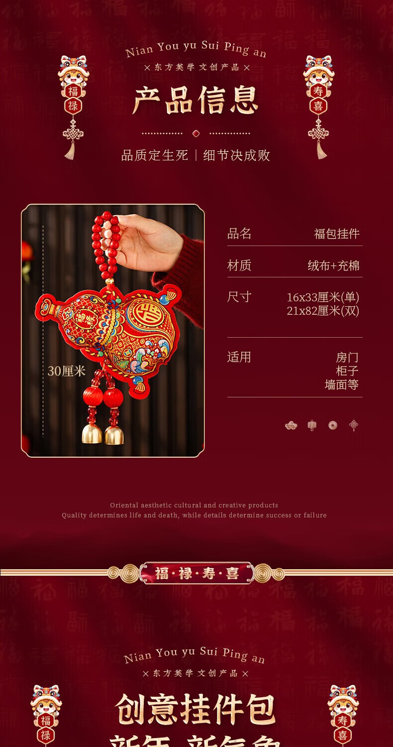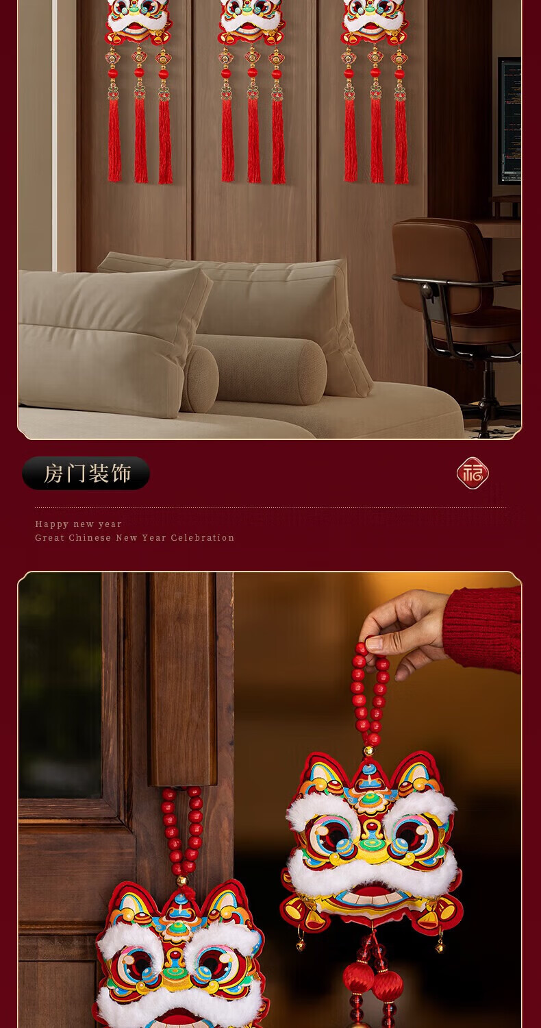 浪漫满屋2026新年装饰品福包挂件客厅春节过年氛围布置平安福挂饰福袋挂件 【2个装醒狮闹春】福包挂件 送大挂钩