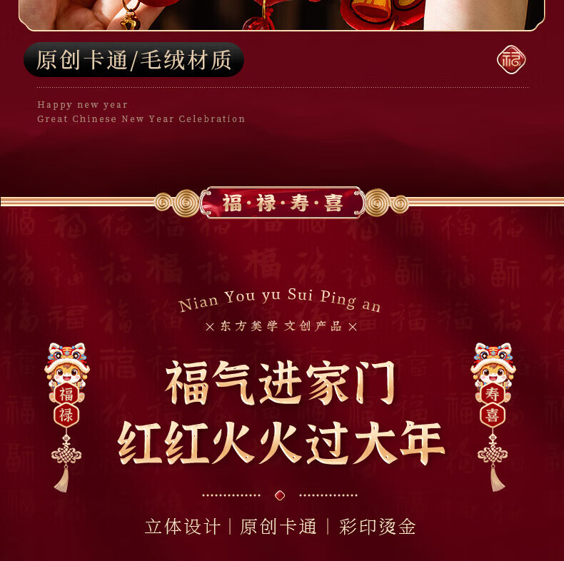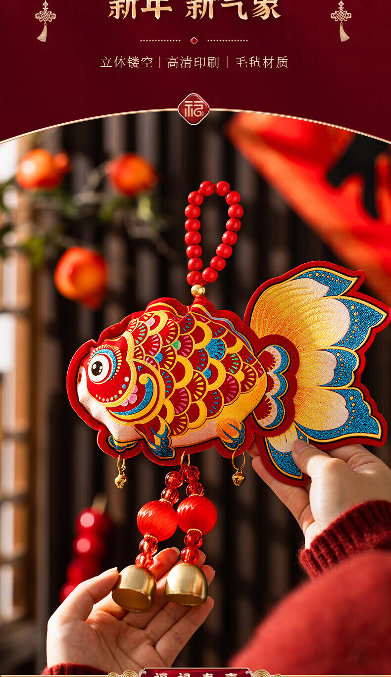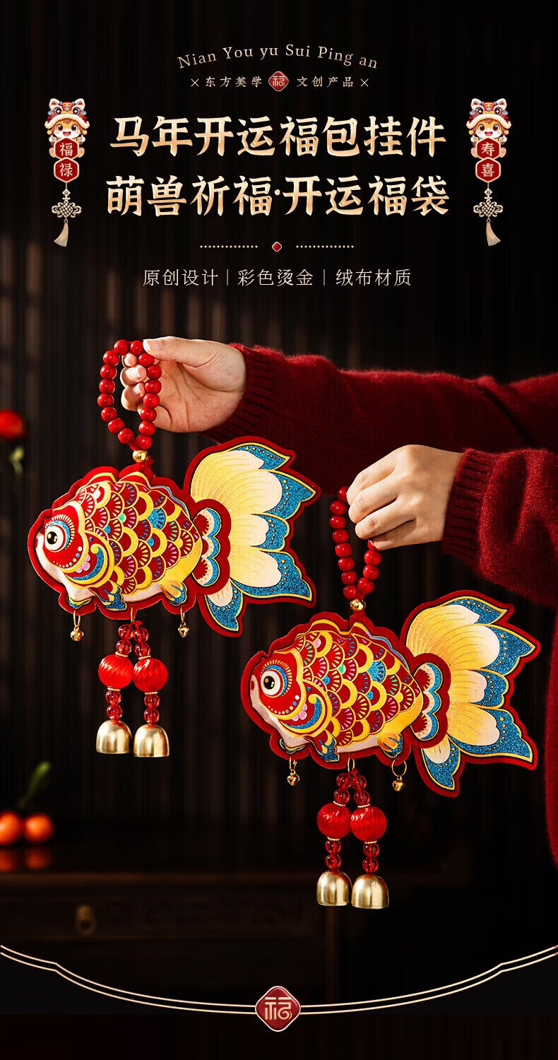 浪漫满屋2026新年装饰品福包挂件客厅春节过年氛围布置平安福挂饰福袋挂件 【2个装醒狮闹春】福包挂件 送大挂钩