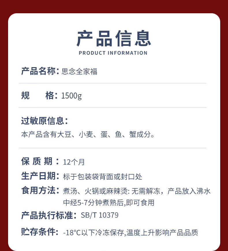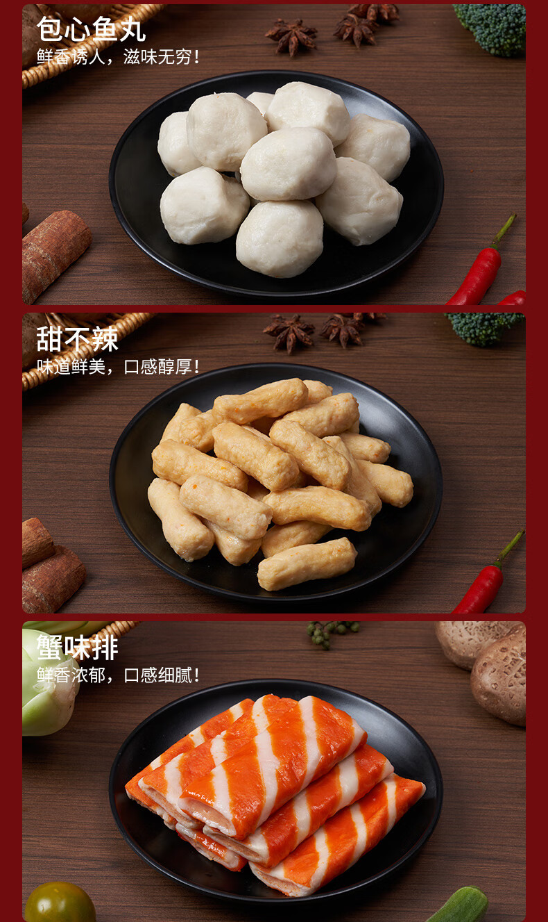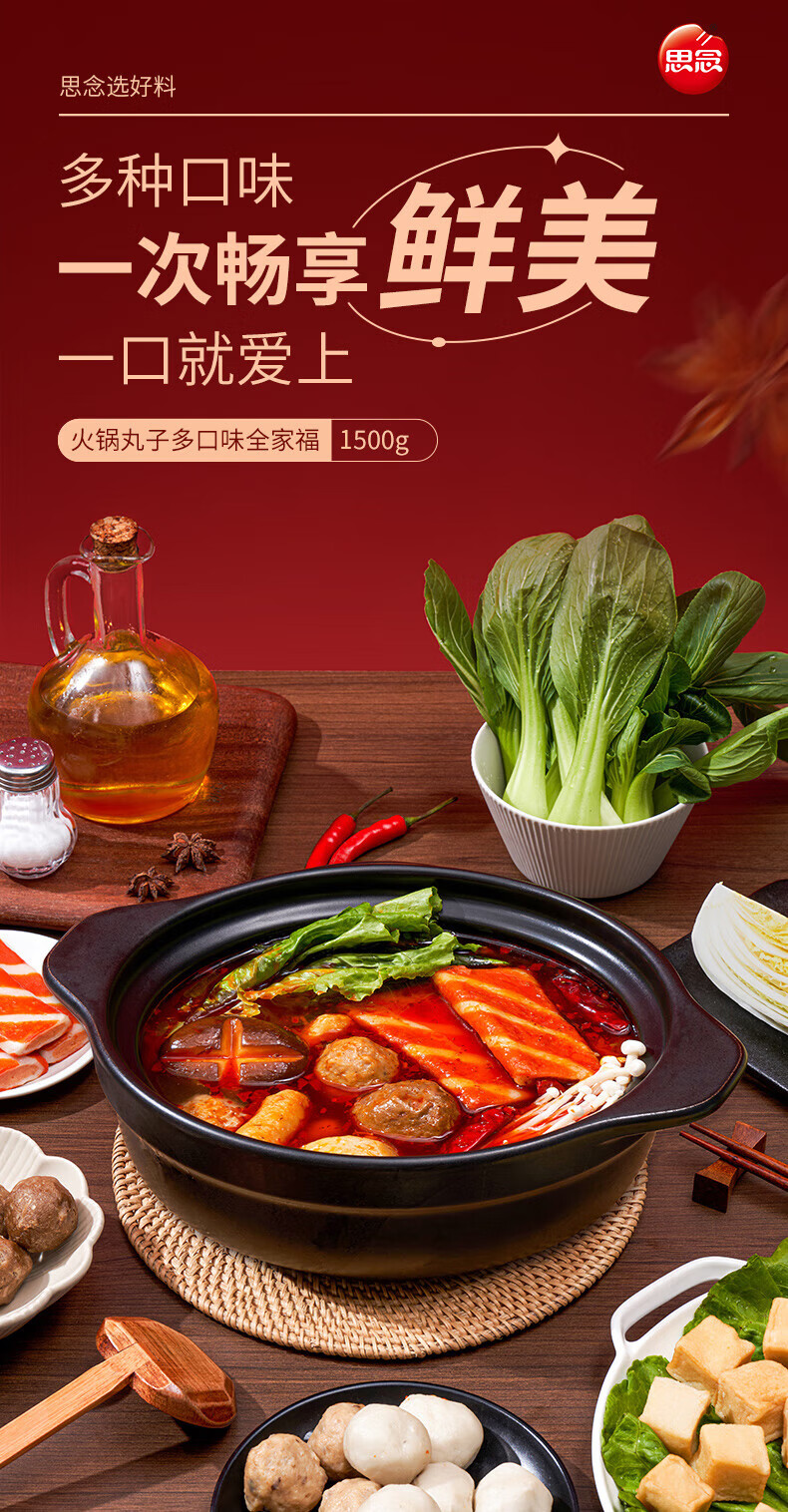 思念火锅丸料组合全家福1500g 香菇贡丸鱼豆腐鱼丸蟹排 家里家外2同款