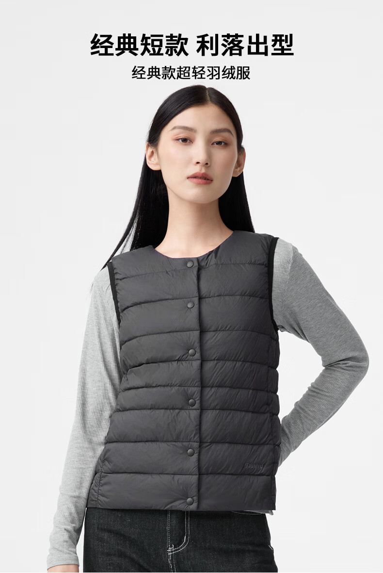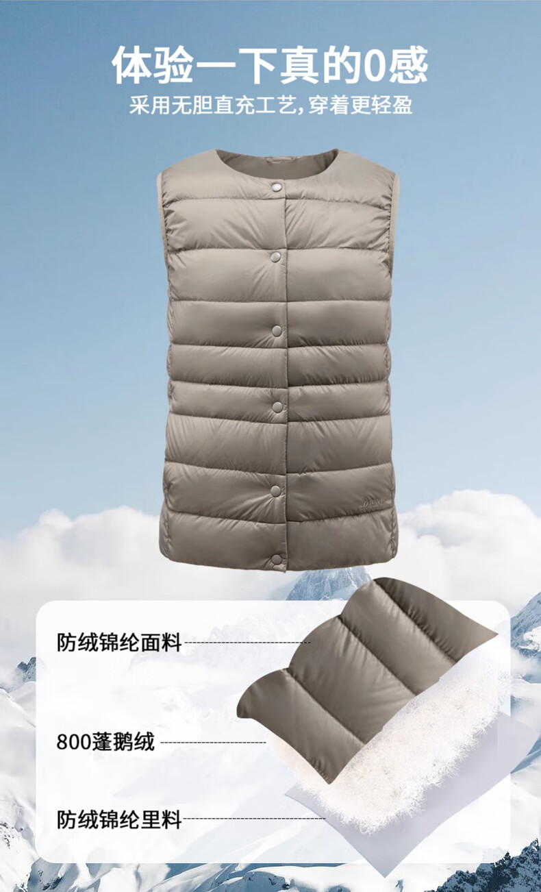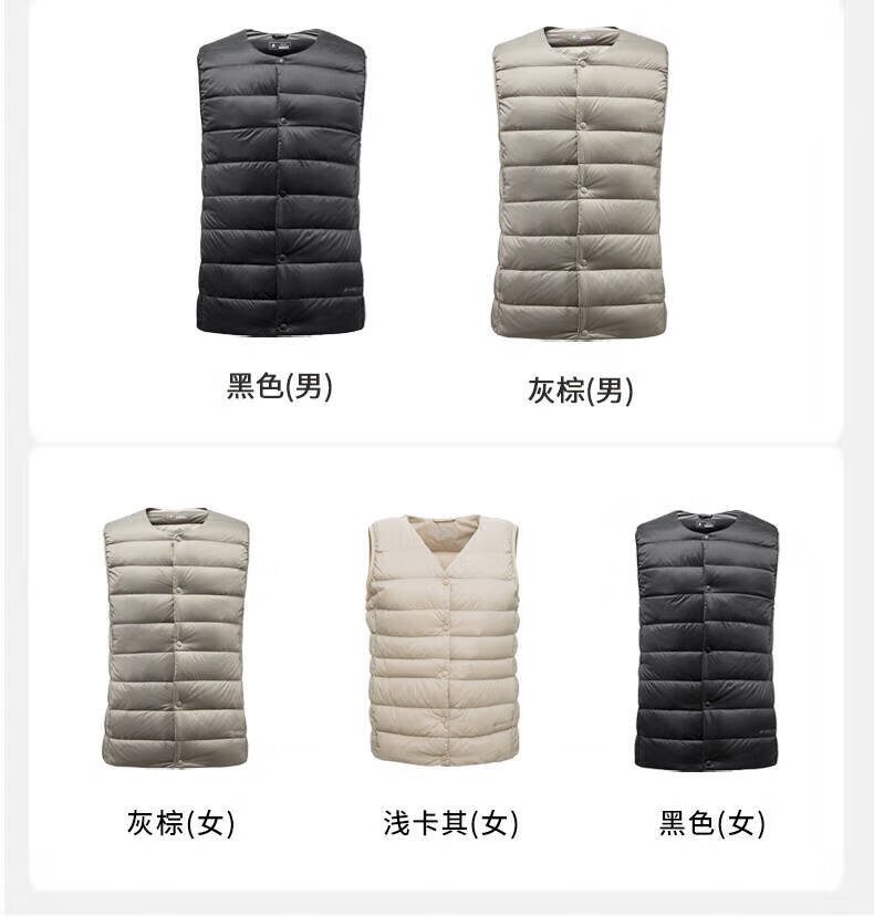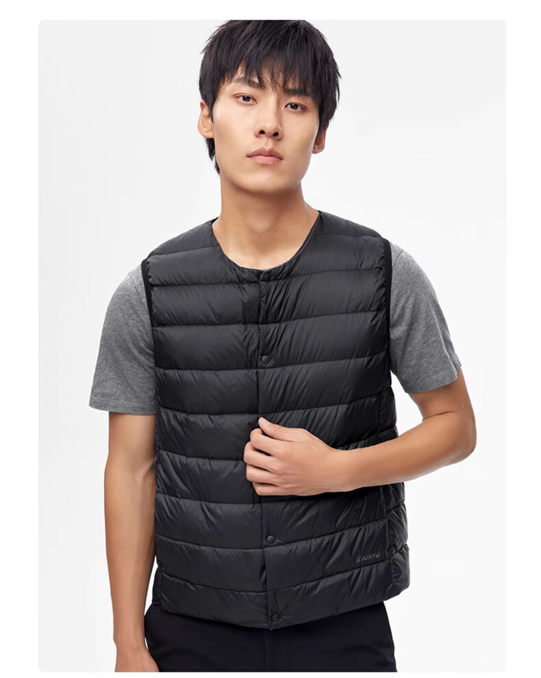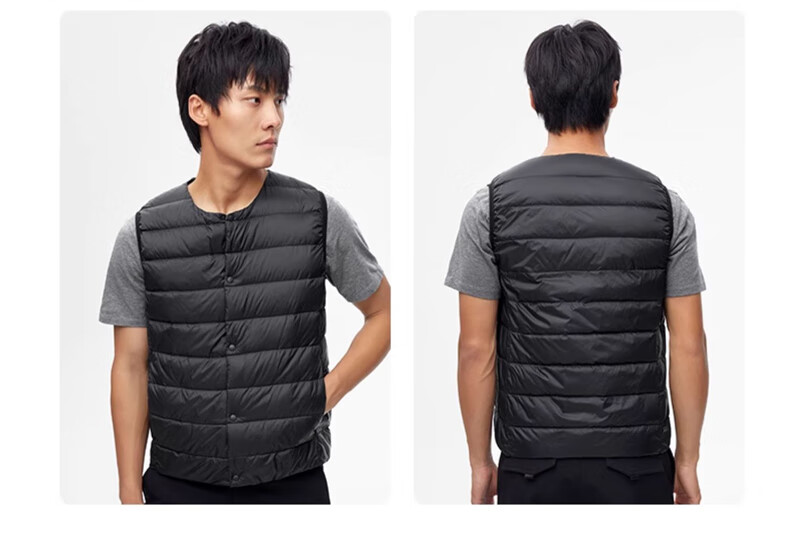 君羽鹅绒羽绒马甲男女款800蓬白鹅绒居家保暖背心 黑色-男款 L 推荐男131-145斤/女106-115斤