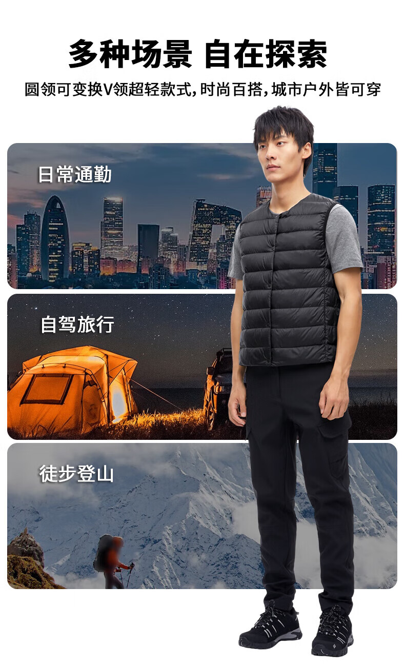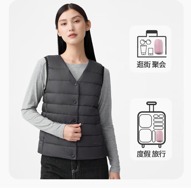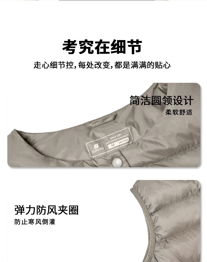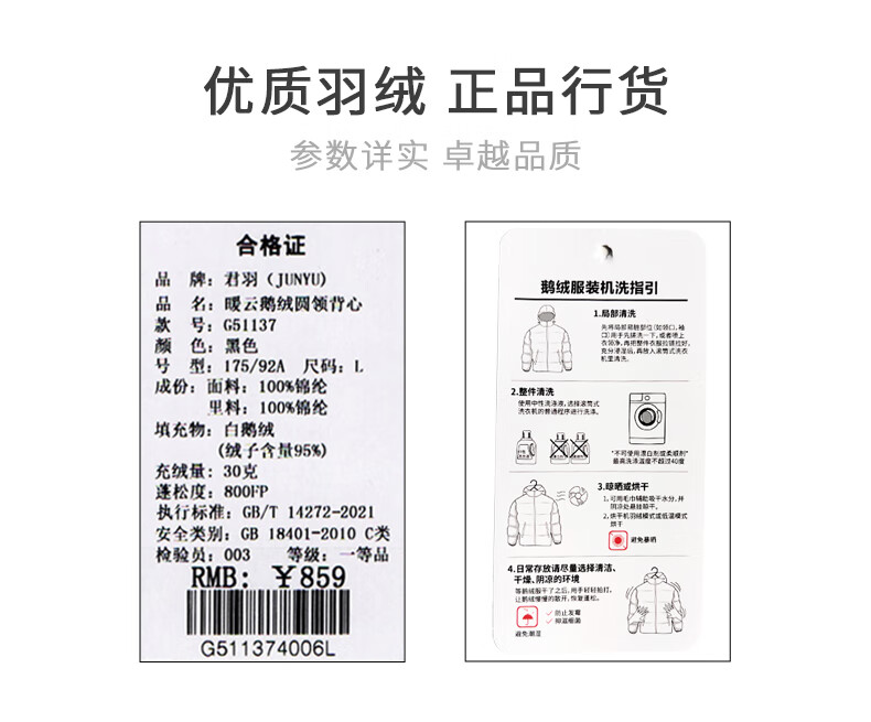 君羽鹅绒羽绒马甲男女款800蓬白鹅绒居家保暖背心 黑色-男款 L 推荐男131-145斤/女106-115斤