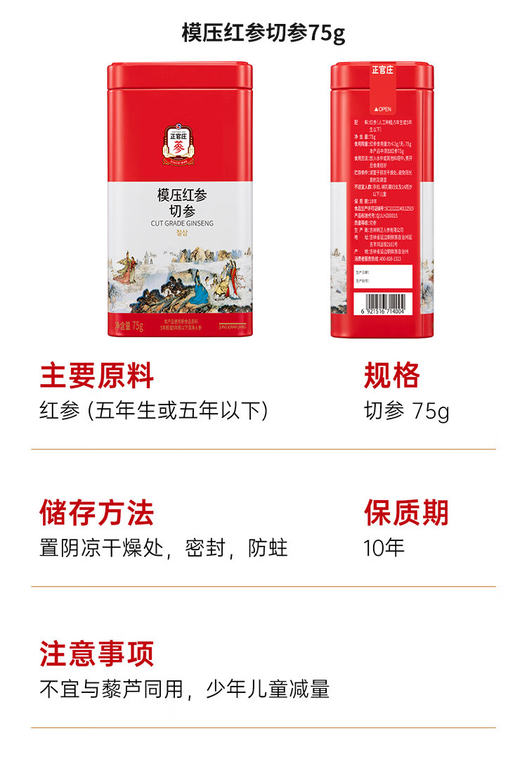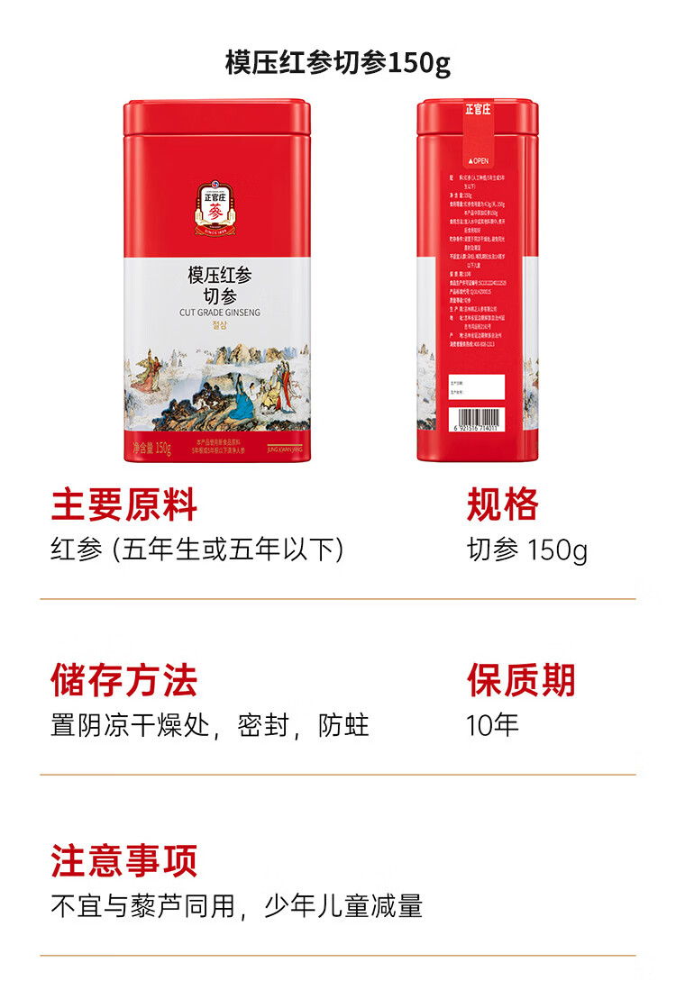 正官庄(korean red ginseng)正官庄原支参切参人参红参液EVERYTIME红参浆年货节礼盒礼品补品 (切参150g+红参浆300g) 450g*1盒