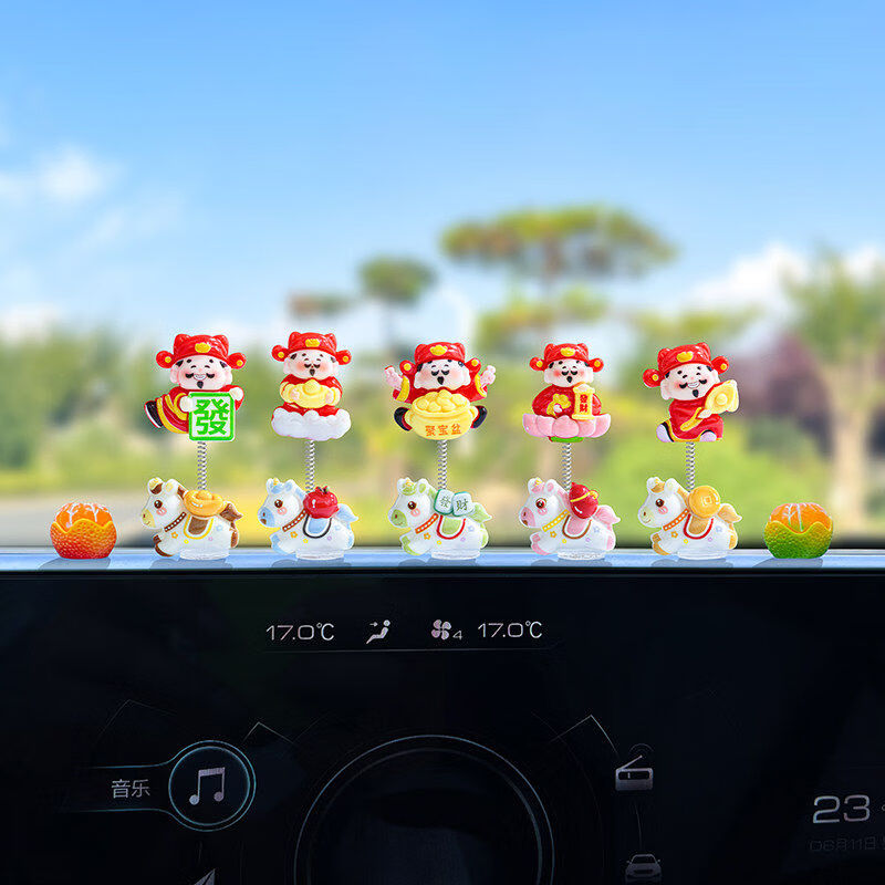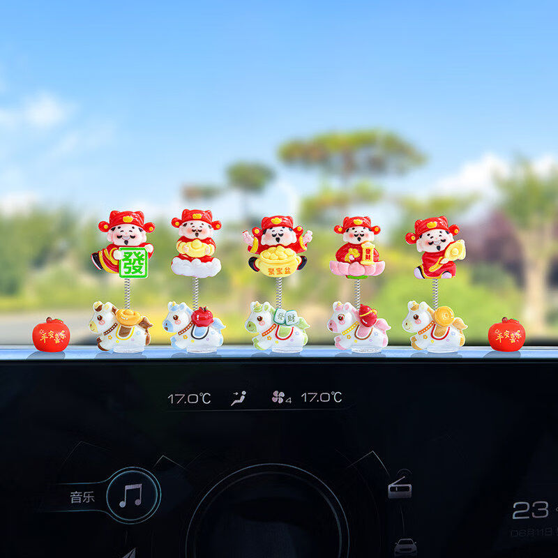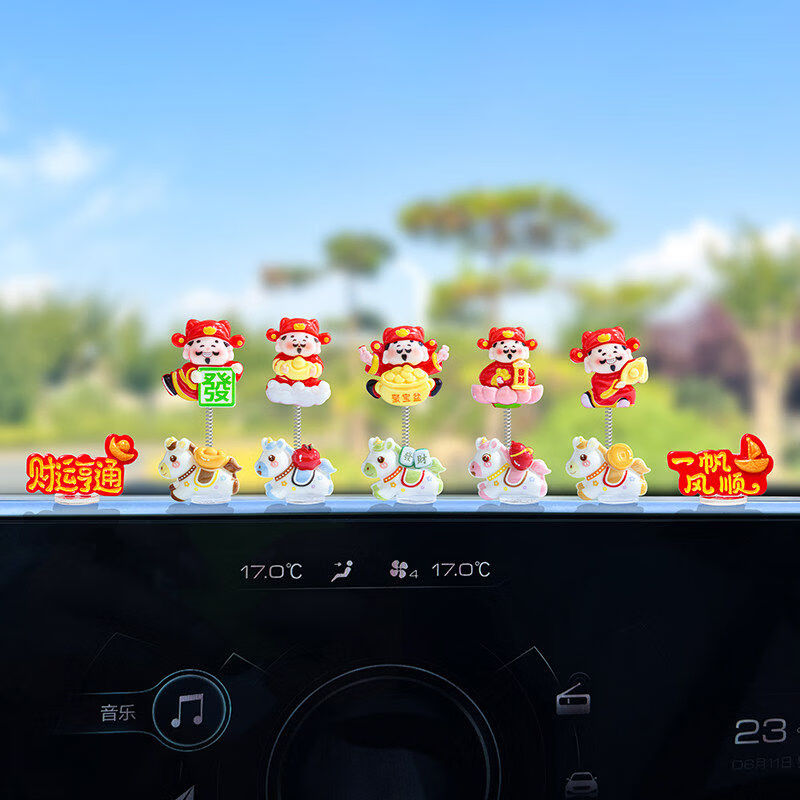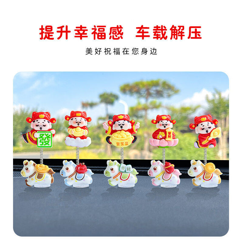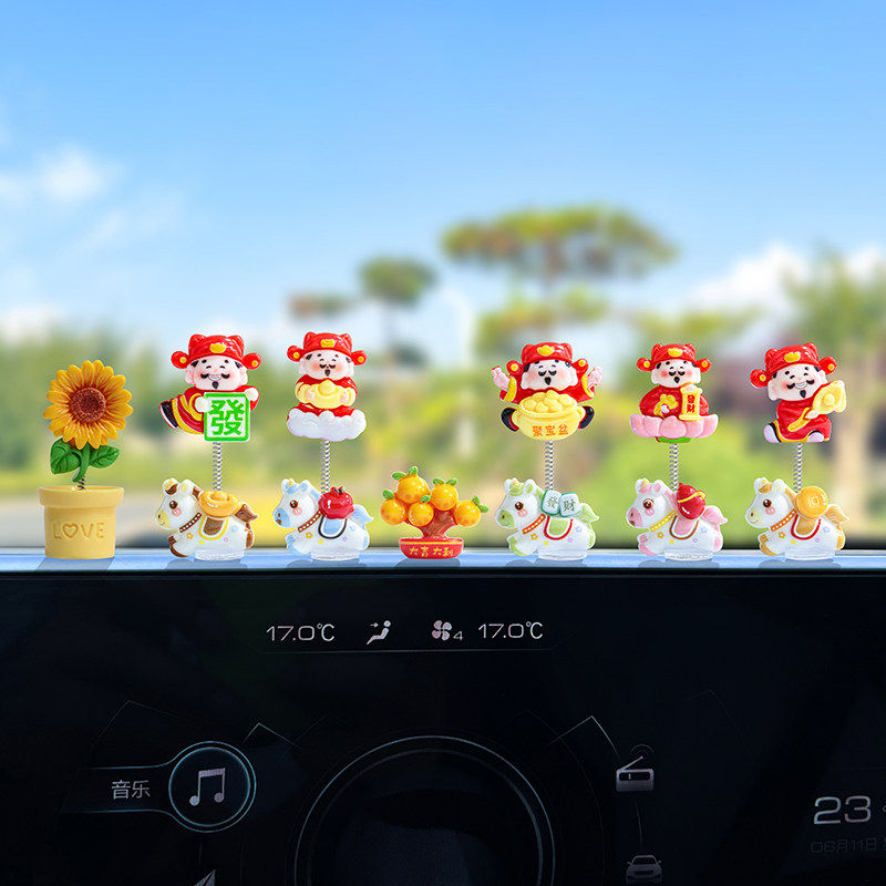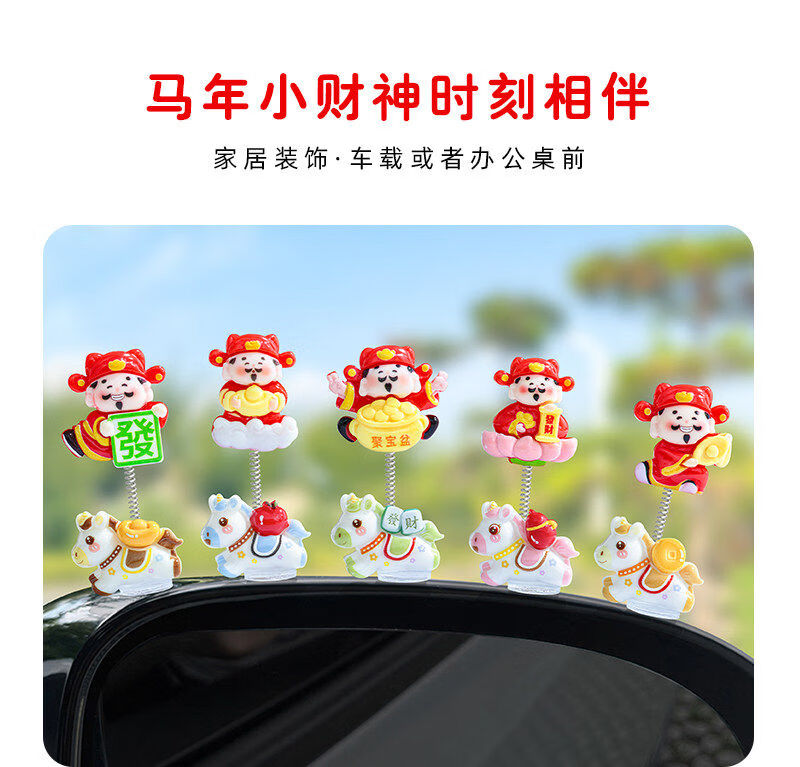 生肖马年新款摇摆财神爷汽车摆件电动车内中控台屏幕办公桌装饰品 发财小马财神组合5款【配胶】