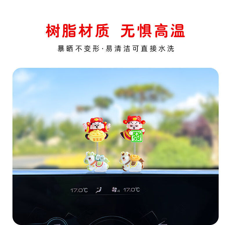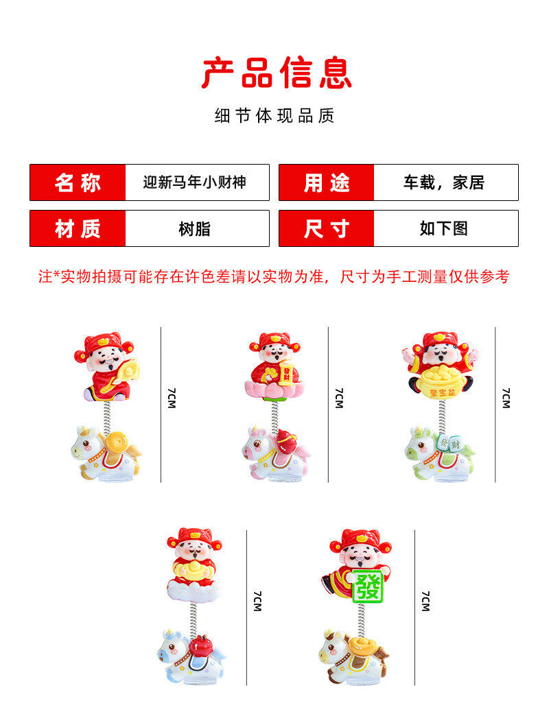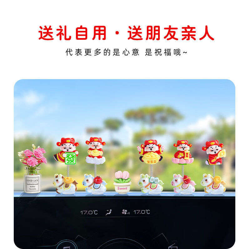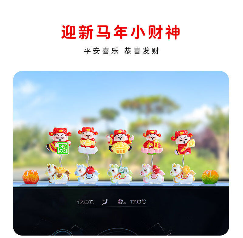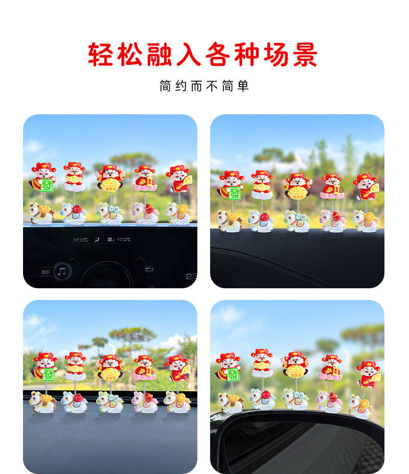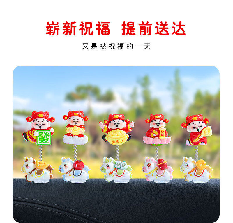 生肖马年新款摇摆财神爷汽车摆件电动车内中控台屏幕办公桌装饰品 发财小马财神组合5款【配胶】