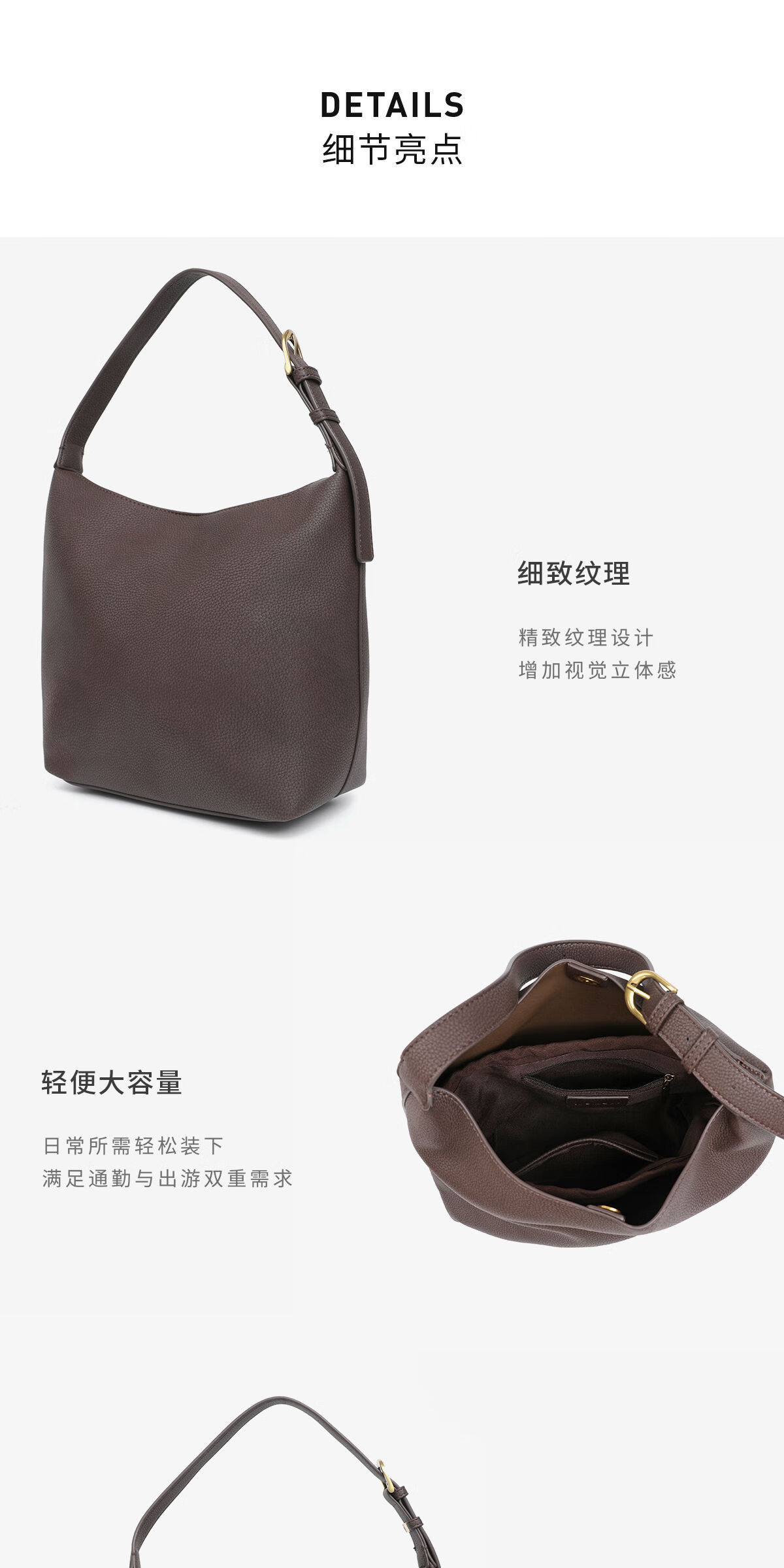 月芽儿小众手提包女2025秋冬新款磨砂复古休闲百搭单肩斜挎包 摩卡69