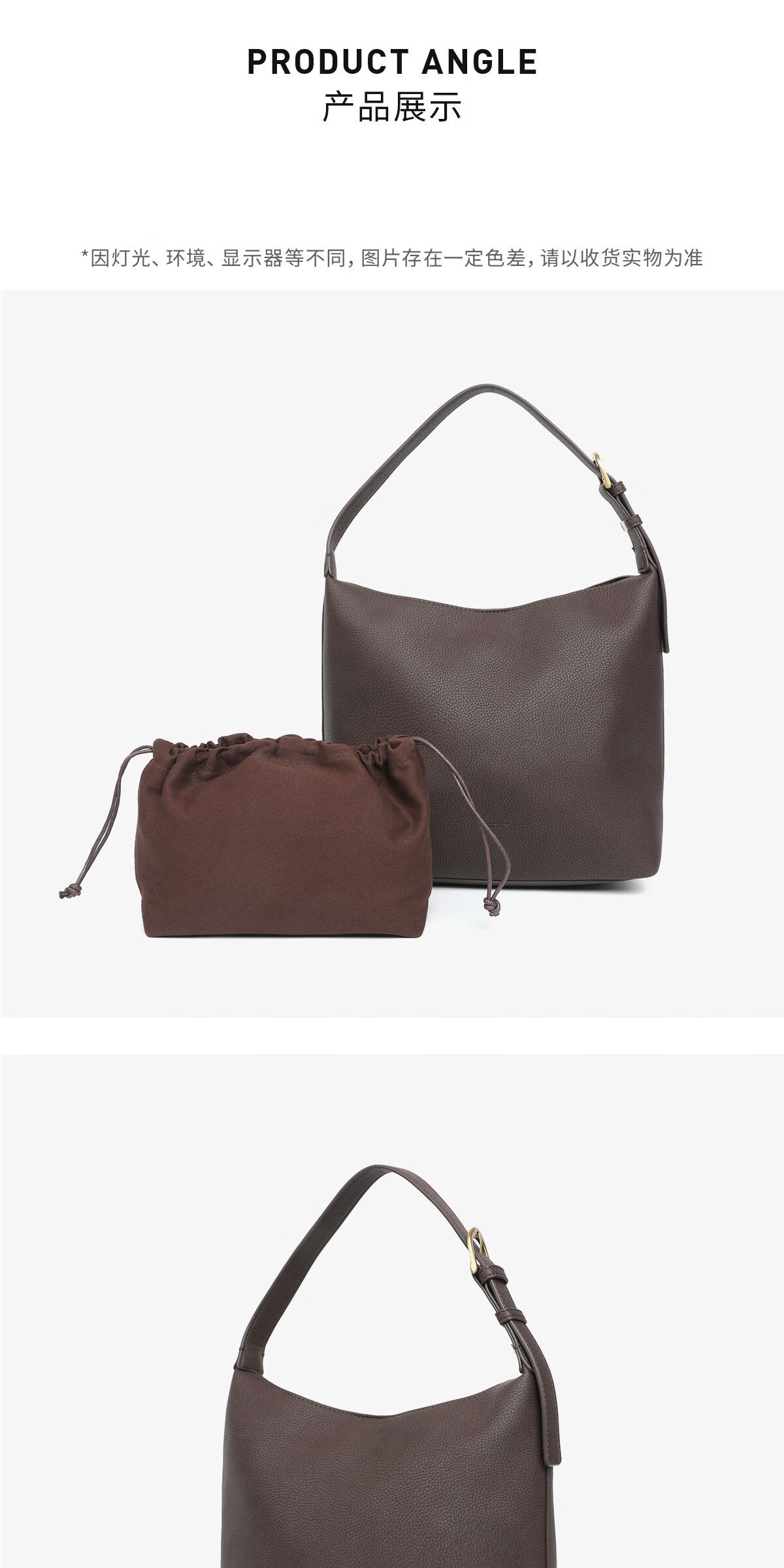 月芽儿手拎包包女2025新款时尚质感斜挎水桶包流行休闲百搭单肩包 咖啡色20