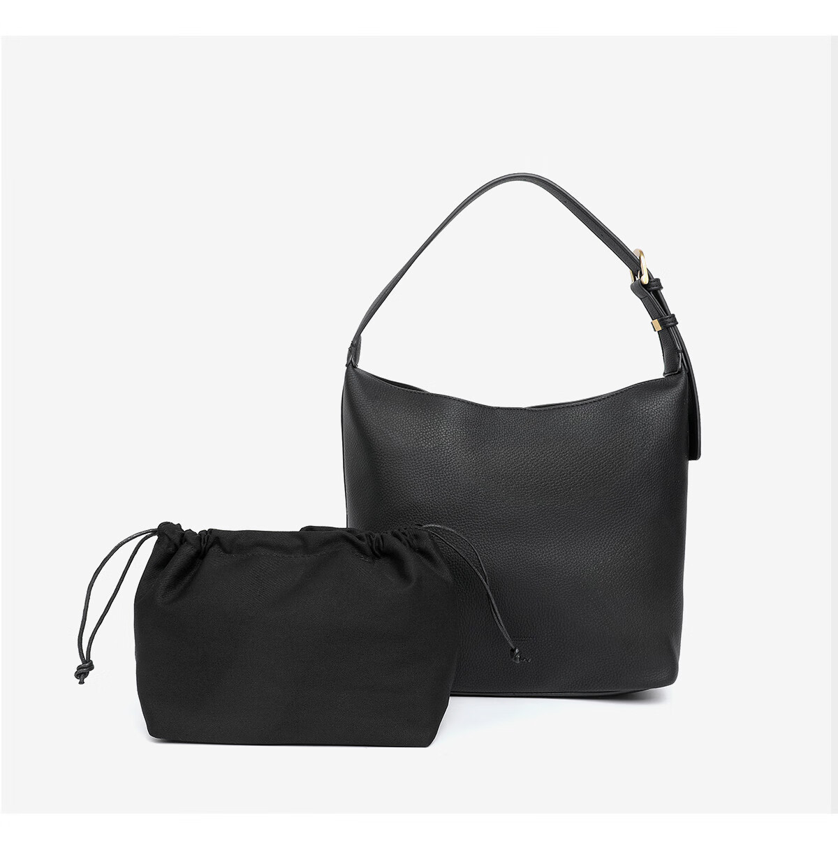 月芽儿2025新款腋下包极简风水桶包女大容量单肩包手提通勤托特包 黑色01