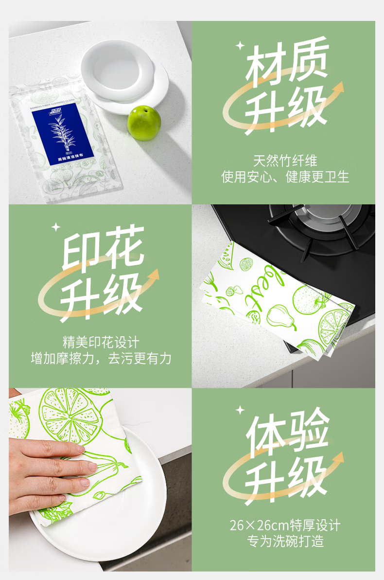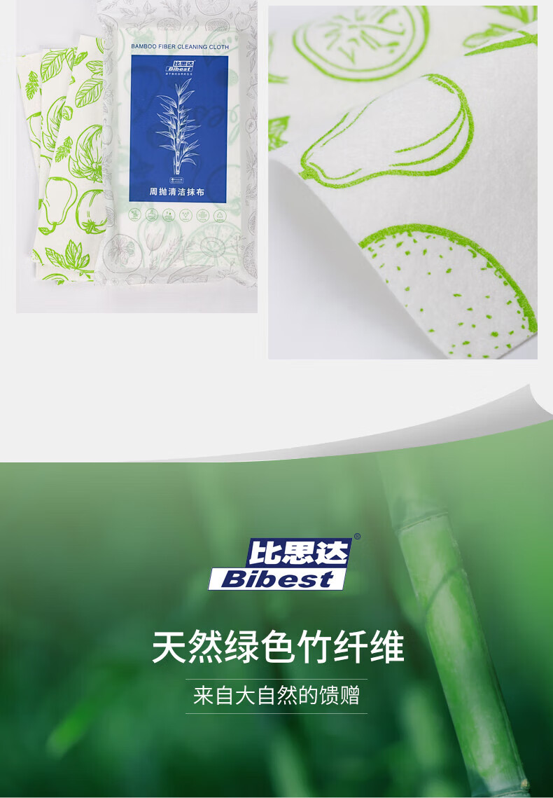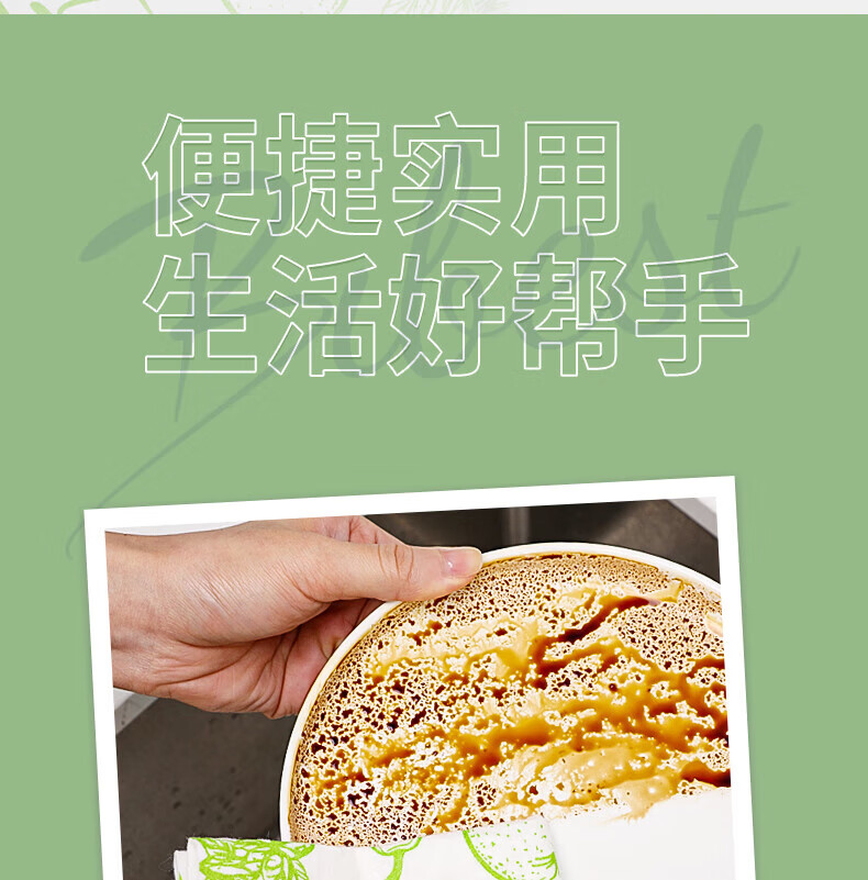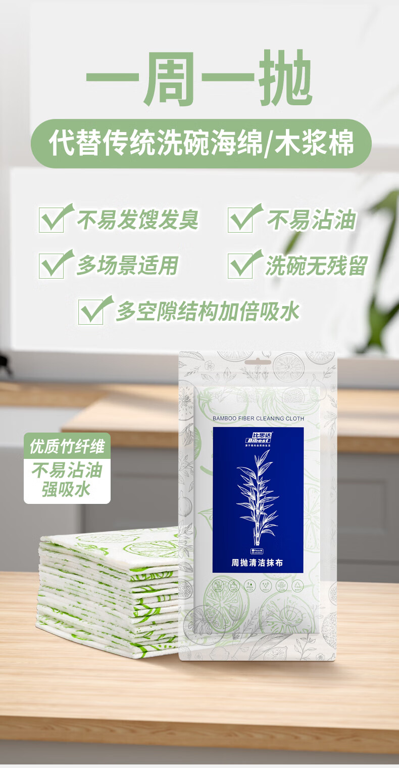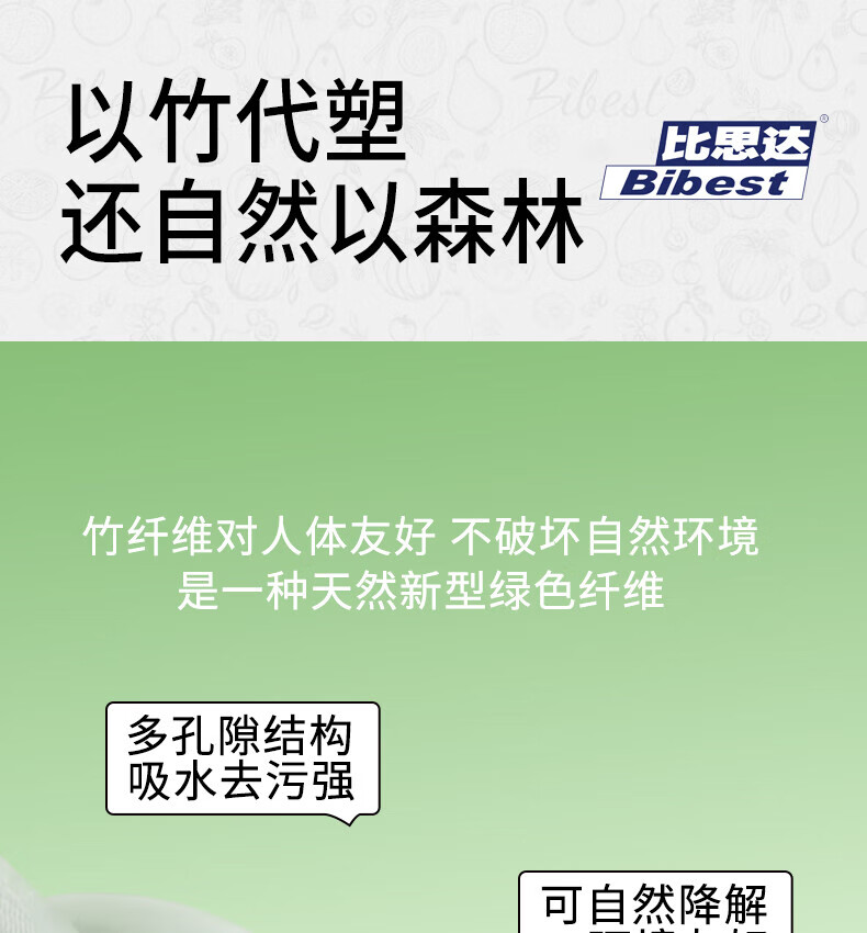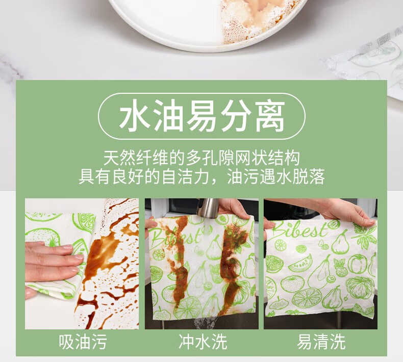 比思达一次性抹布不易沾油吸水竹纤维周抛抹布 抗菌防臭百洁布 升级5卷装(100条)加厚/抗菌+挂钩