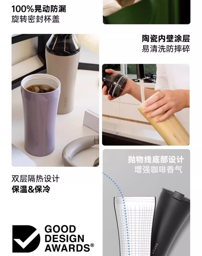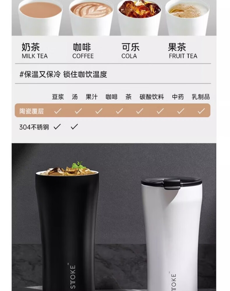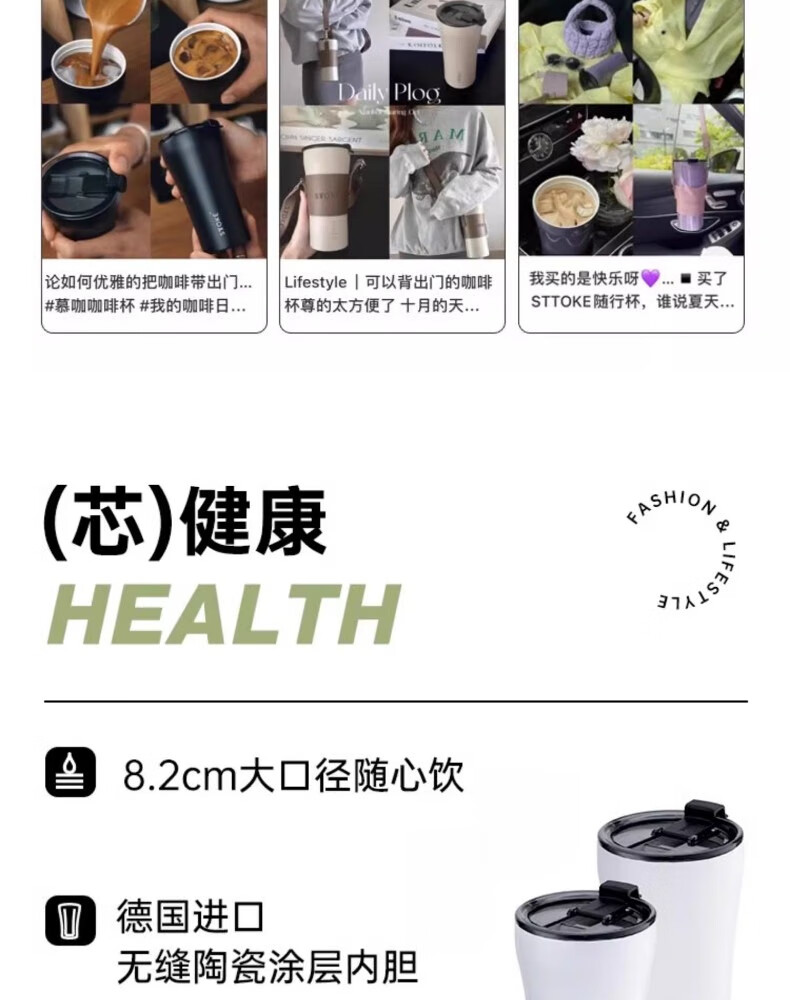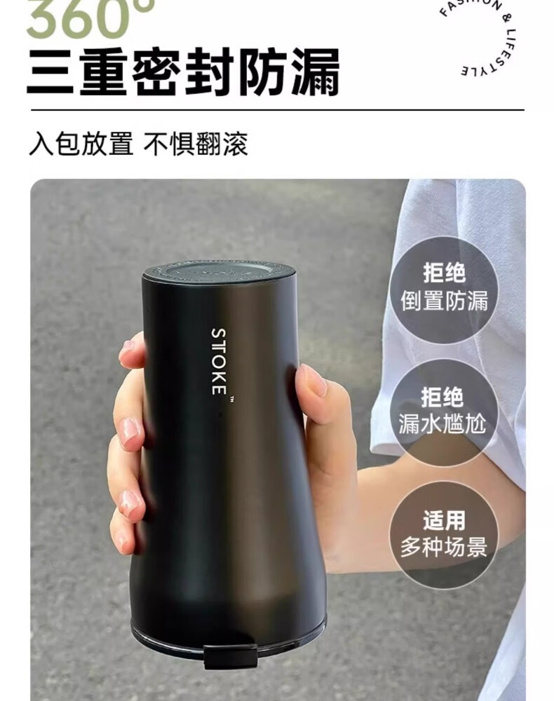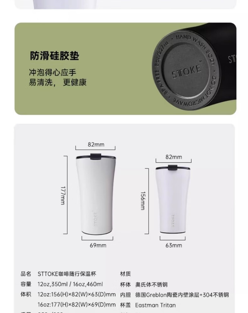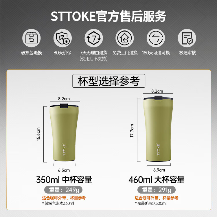 慕咖STTOKE户外水杯套装便携随身杯大容量保温杯健身吸管杯咖啡杯礼物 燕麦奶 密封旋盖款+延伸盖460ml