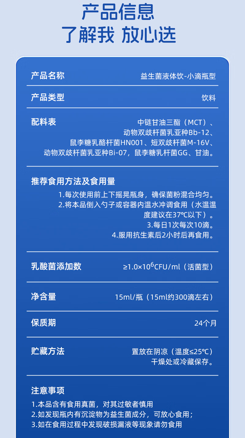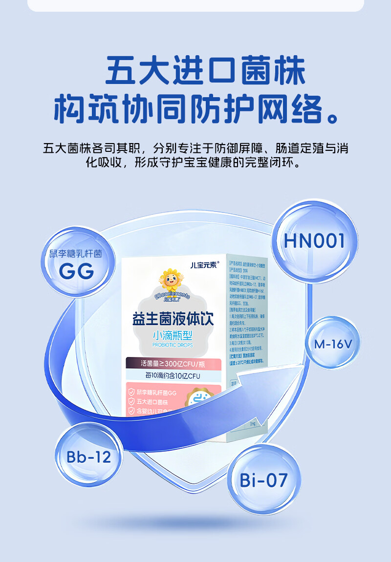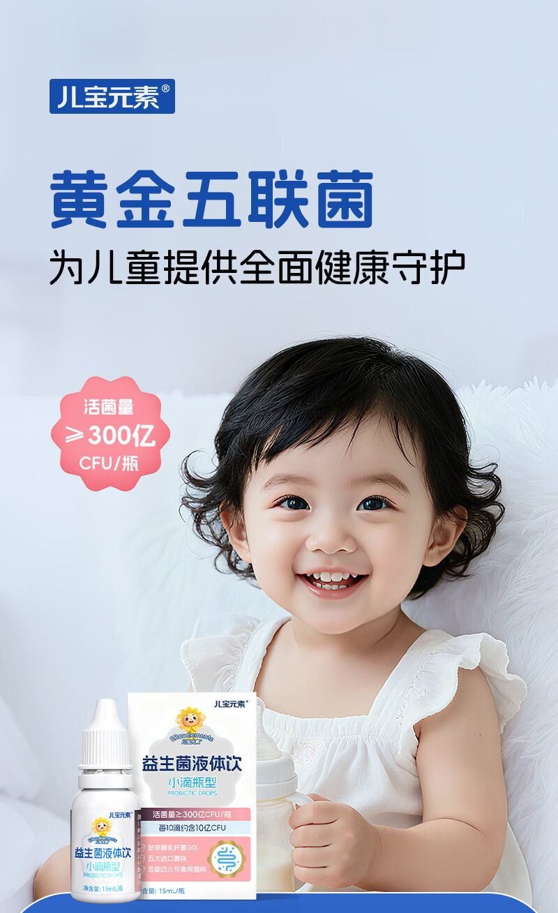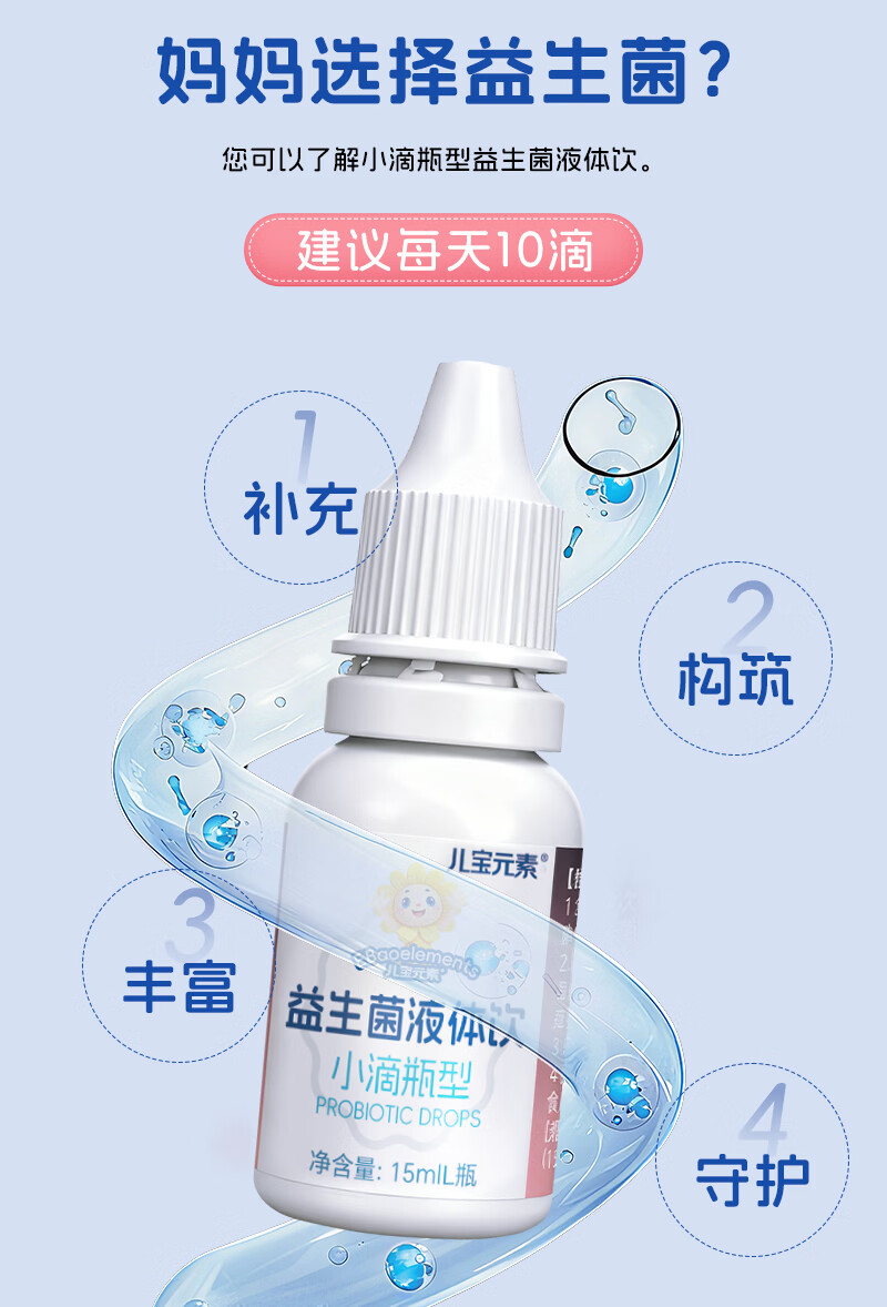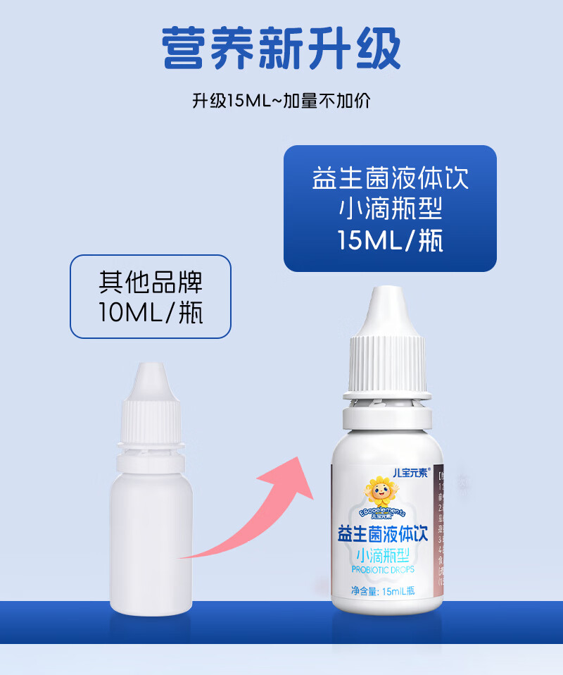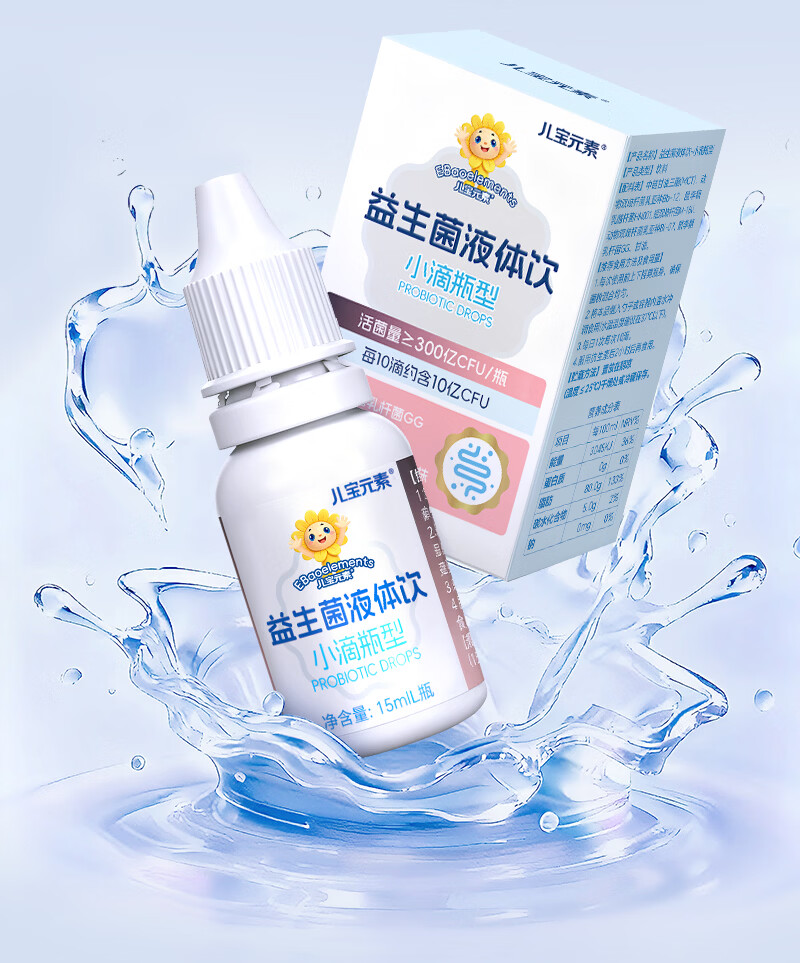儿宝元素(EBAO ELEMENT)益生菌液体饮15ml儿童滴剂进口活菌鼠李糖乳杆菌动物双歧杆菌Bb12 15ml*1盒