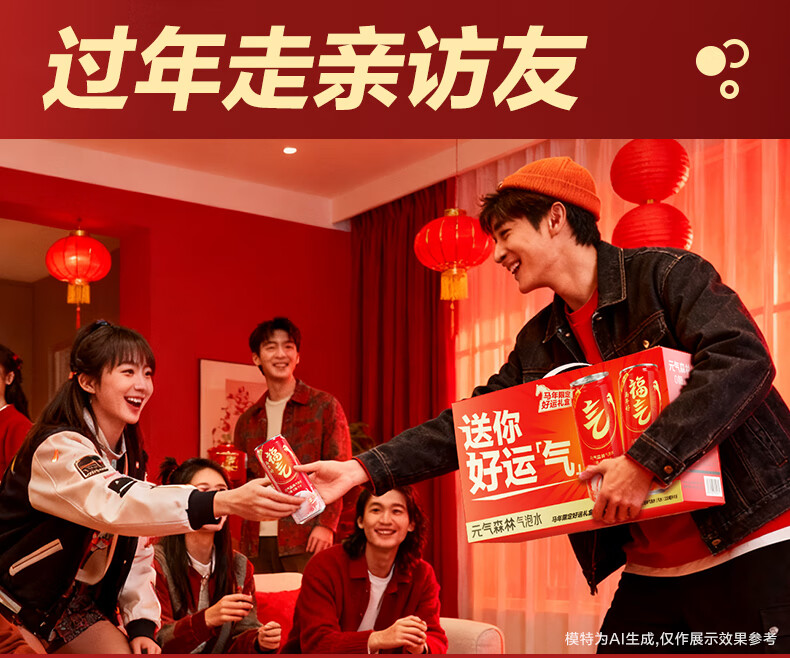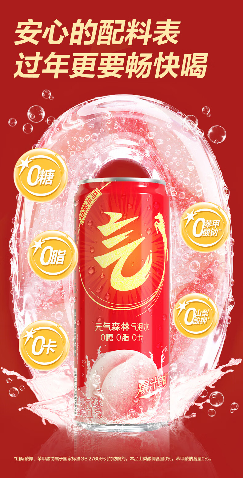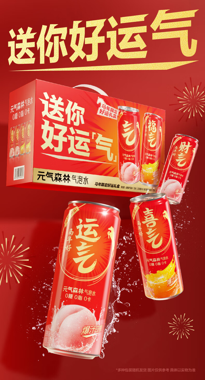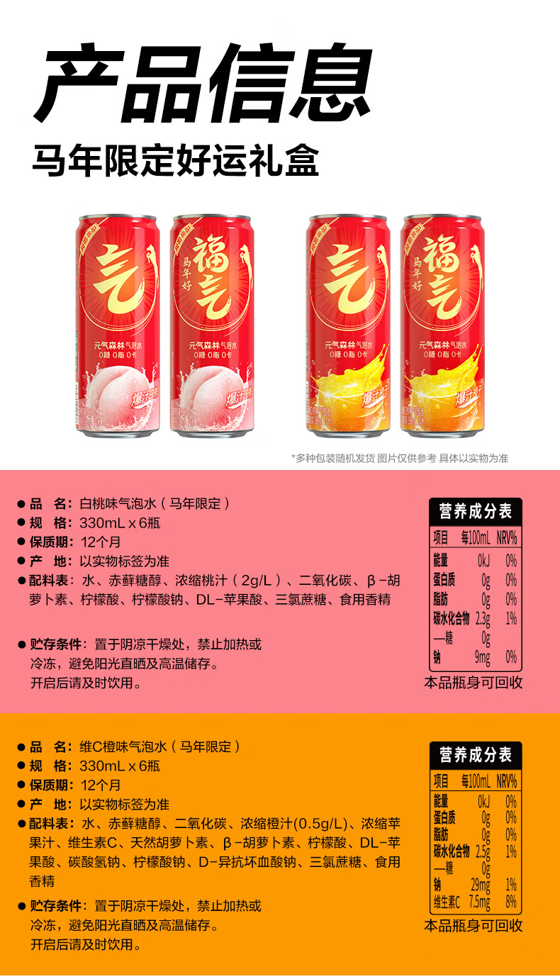 元气森林【年货礼盒】新年礼盒 饮料330ml*6白桃味+330ml*6维C橙味气泡水