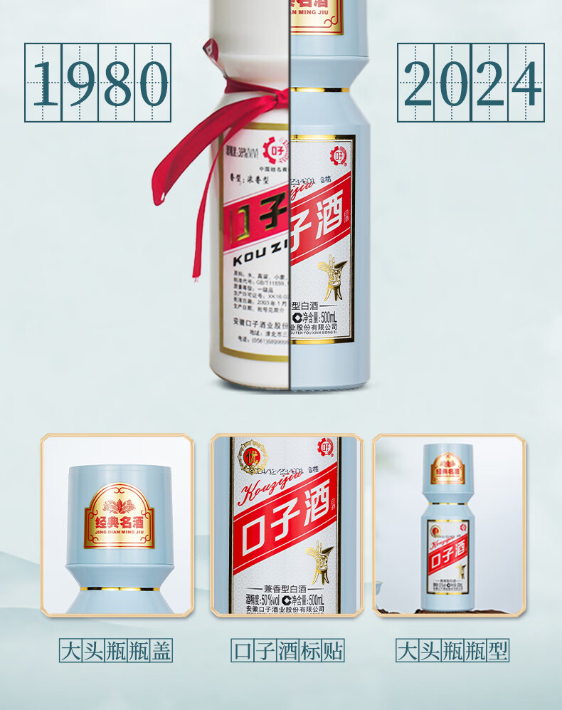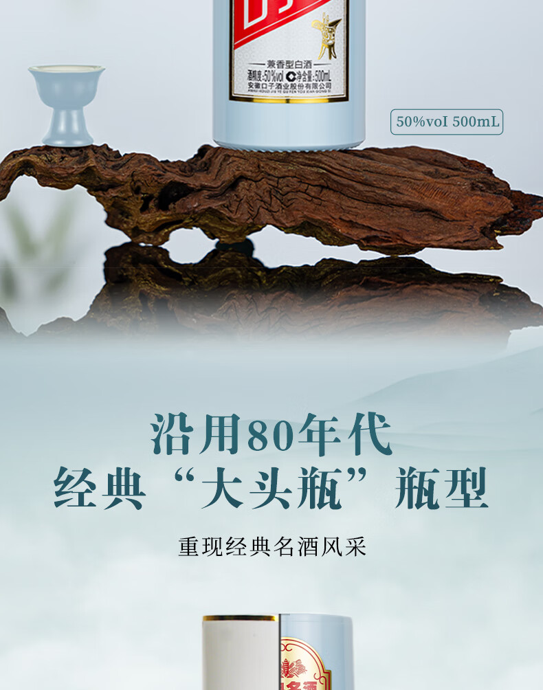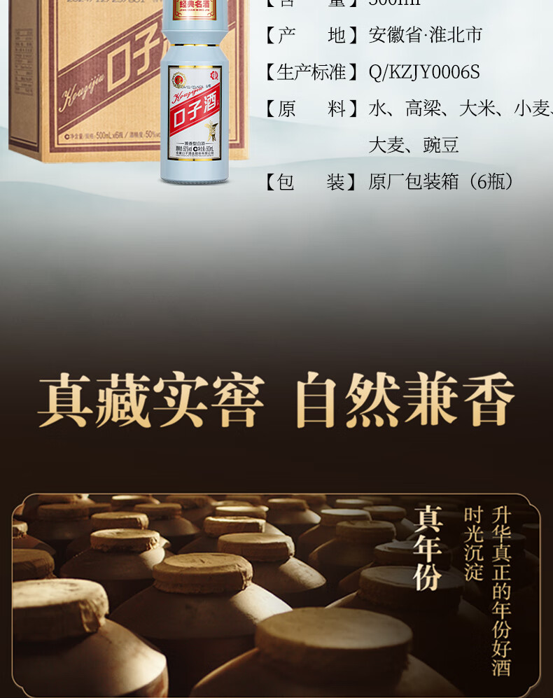 口子窖 大头瓶口子酒 兼香型白酒 50度 500ml*1瓶 单瓶装 自饮 口粮酒