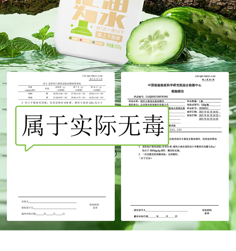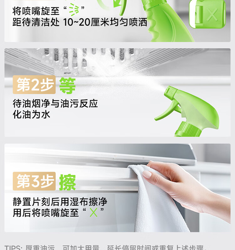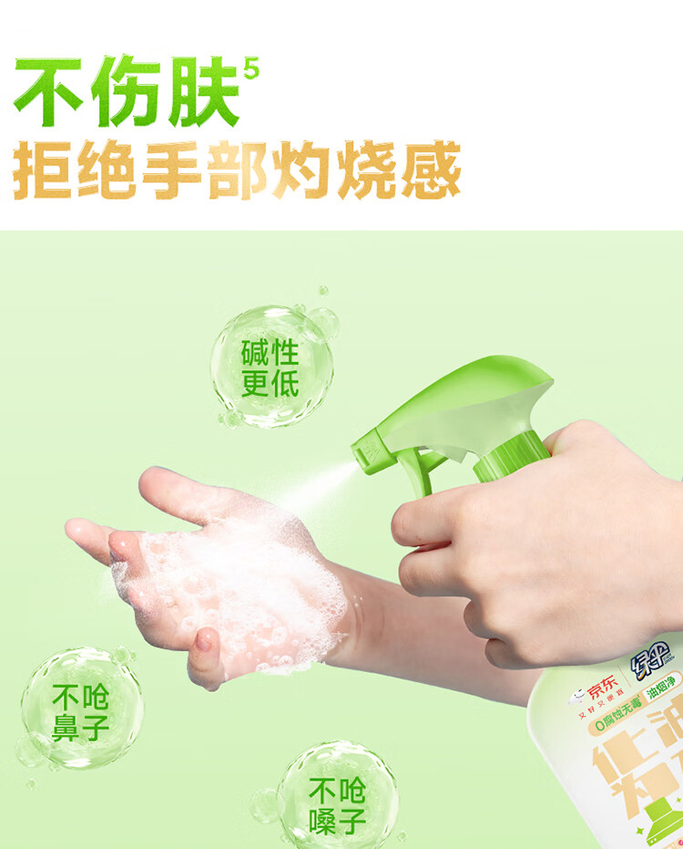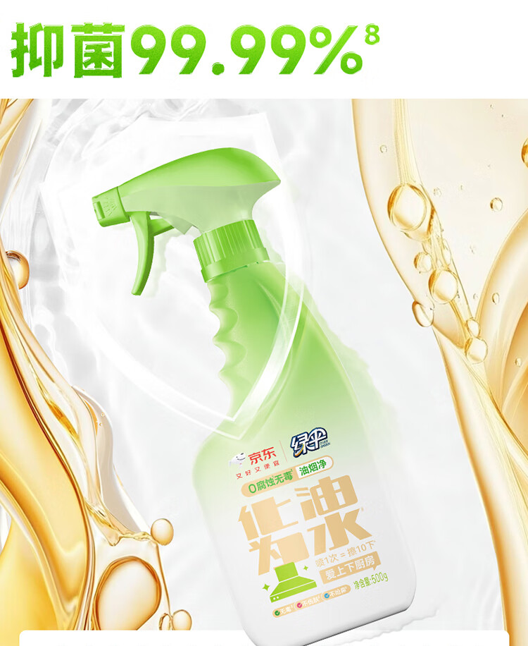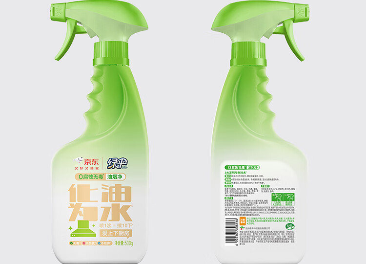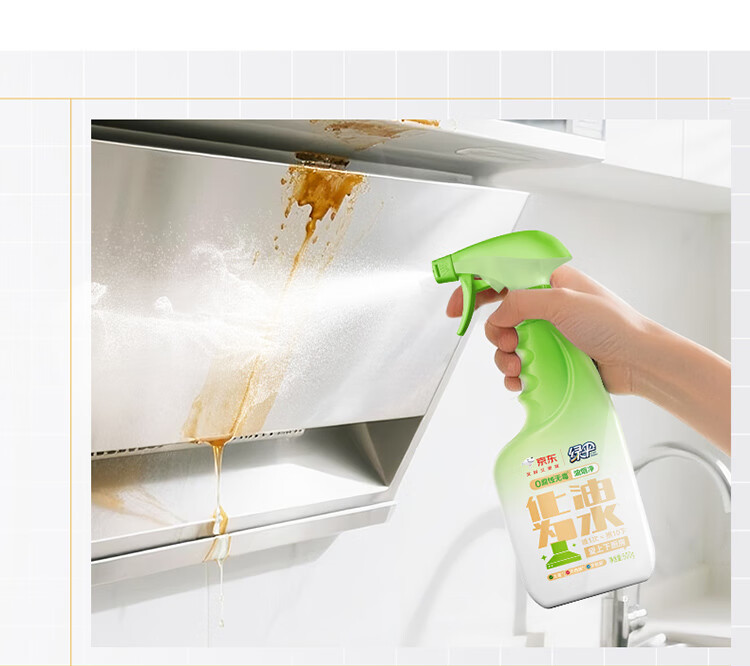 绿伞0腐蚀无毒油烟净化油为水厨房餐厅小家电油污净500g青瓜薄荷香