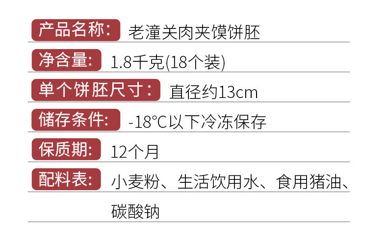 悦味纪 老潼关肉夹馍饼胚1.8kg 共18个 千层饼 早餐半成品速食 无起酥油