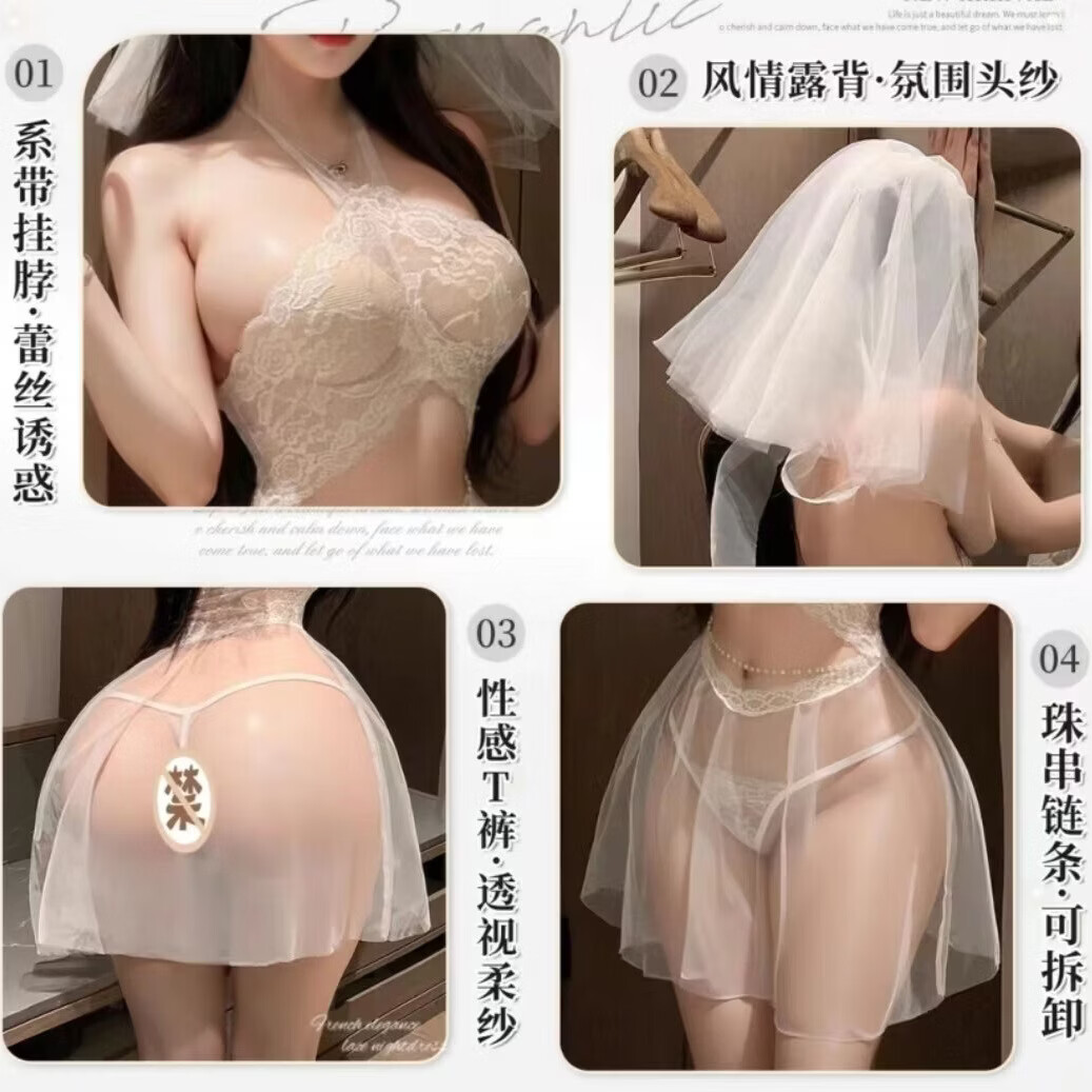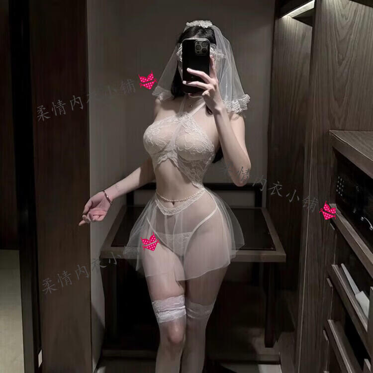 情趣战袍新娘婚纱制服诱惑装2026新款性感睡衣女约会激情大码衣服 新娘套装+眼罩+头纱+内裤+腰链 【高品质】均码70-90斤