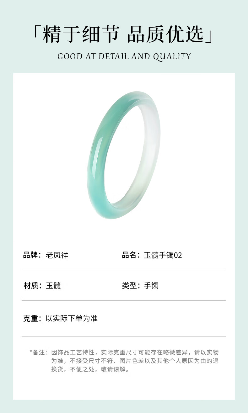 老凤祥半山半水玉髓手镯玛瑙远山黛高冰玉镯子送女友老婆情人节生日礼物 半山半水玉髓手镯#58-60