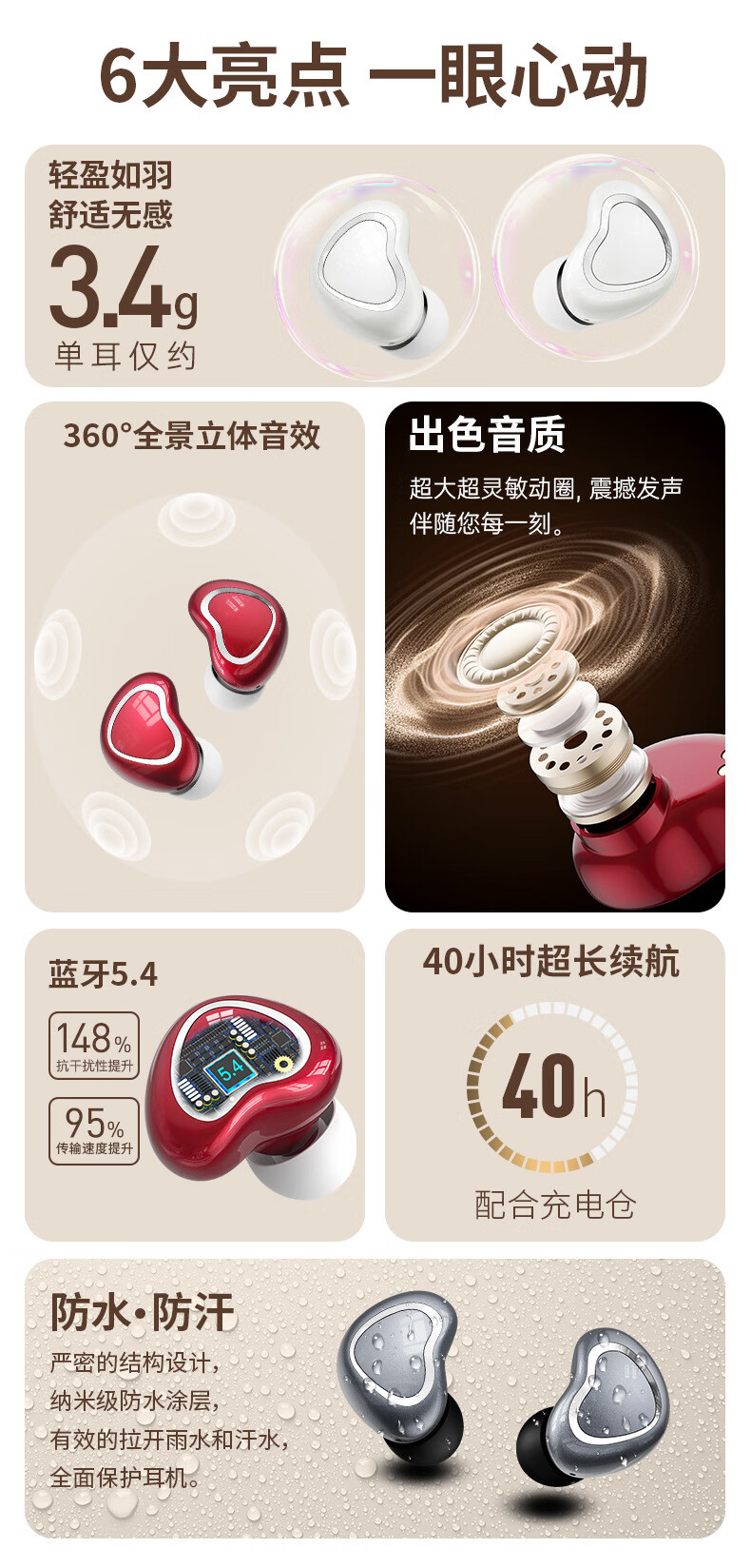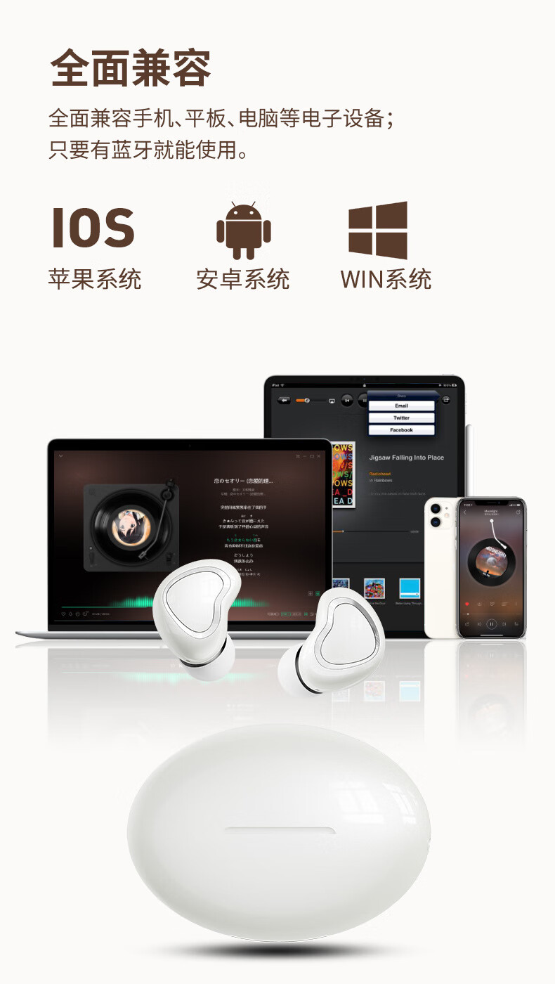 鑫羽音【甄选好物】新款无线蓝牙耳机不入耳气骨 白+超长续航+超清通话 蓝牙通用