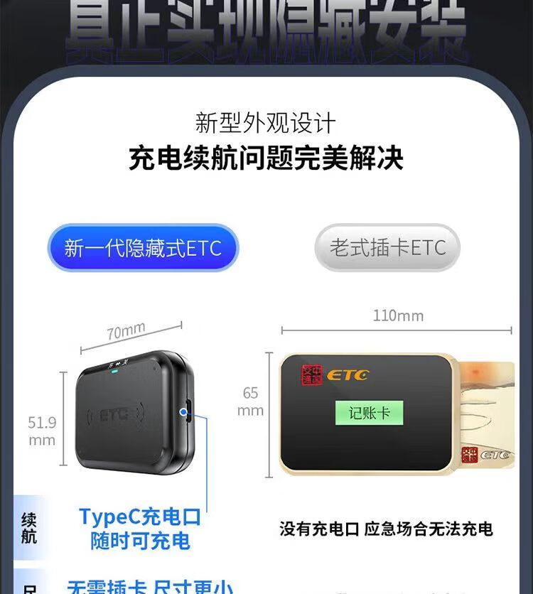 高速车载etc办理全国通用智能无卡etc可开关隐藏式etc免贴玻璃ETC 买断版ETC【防盗刷 带开关】