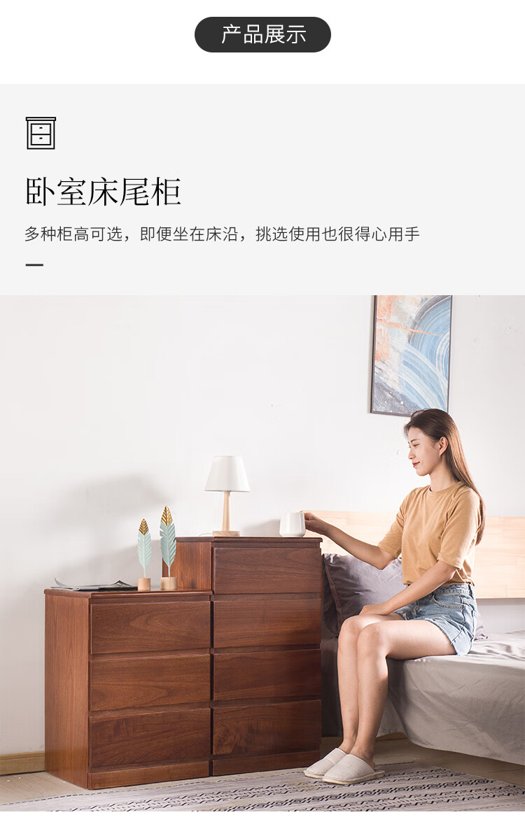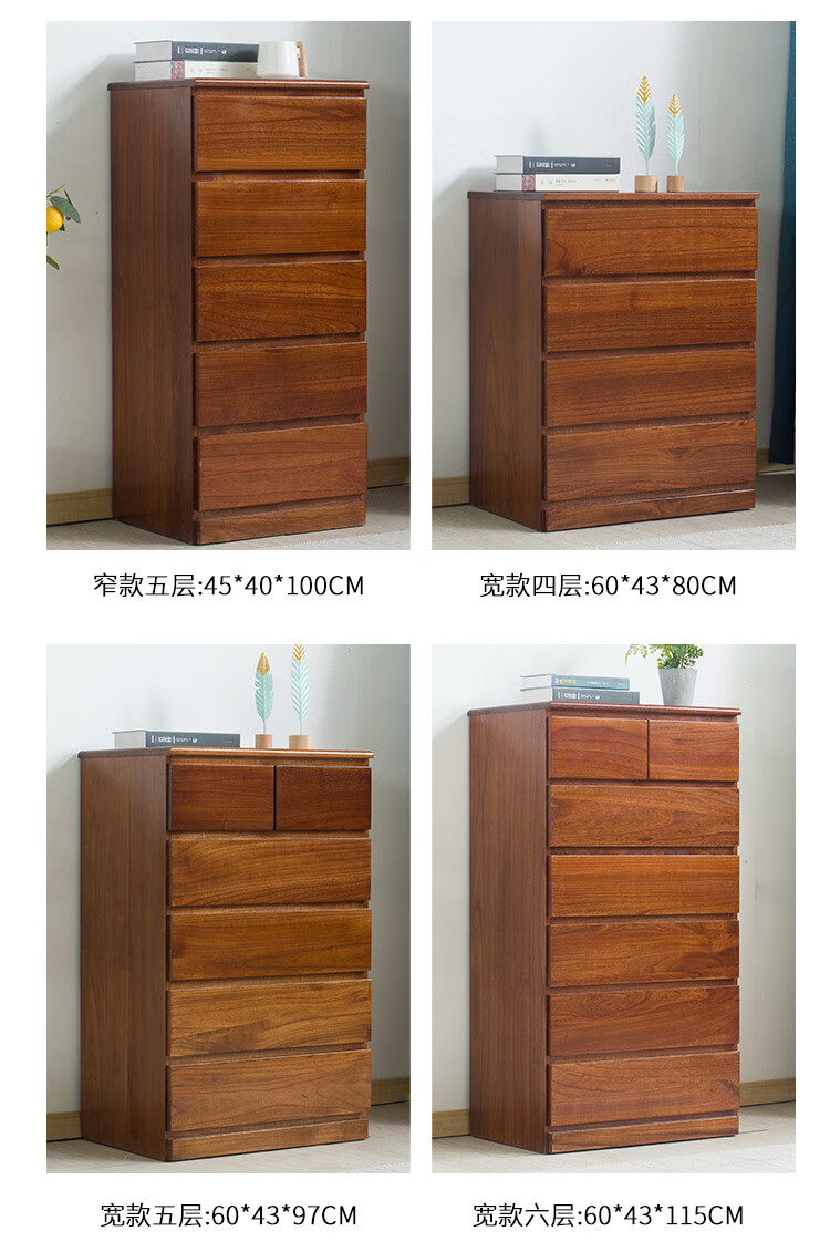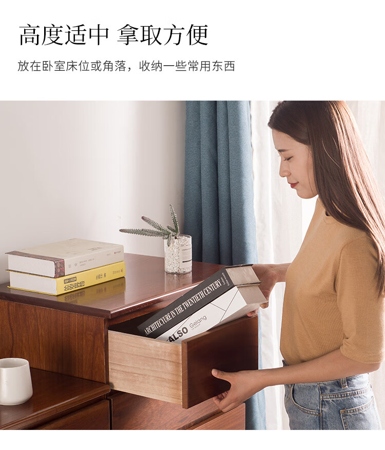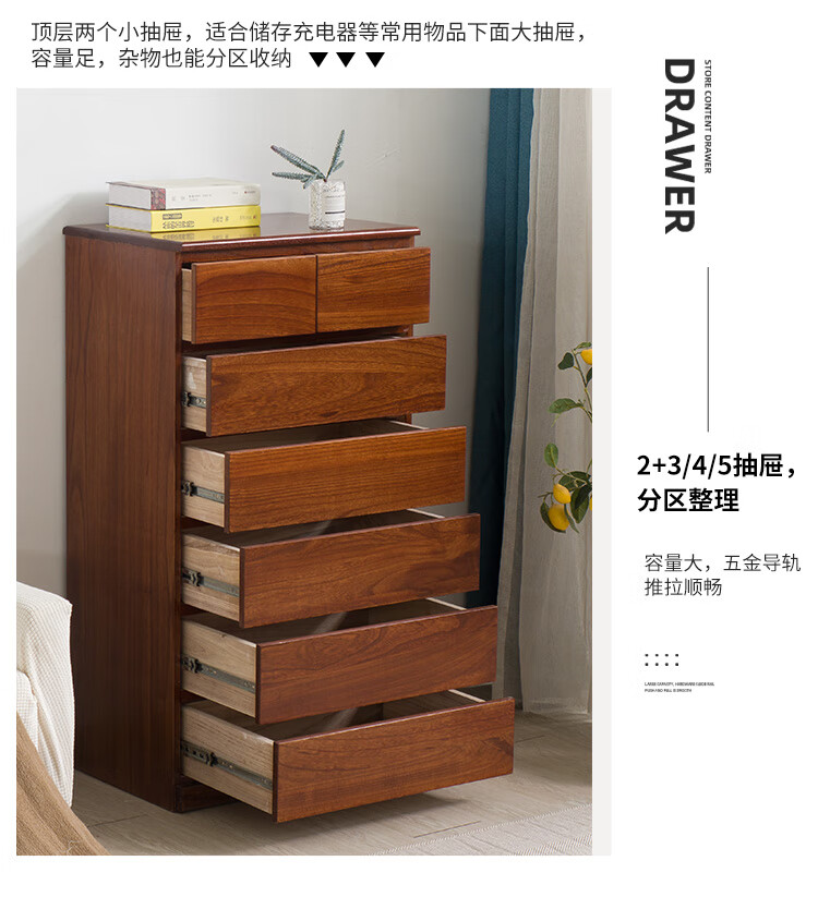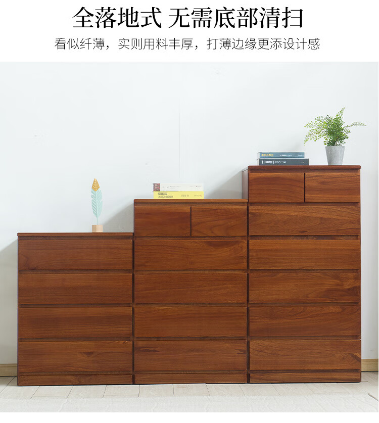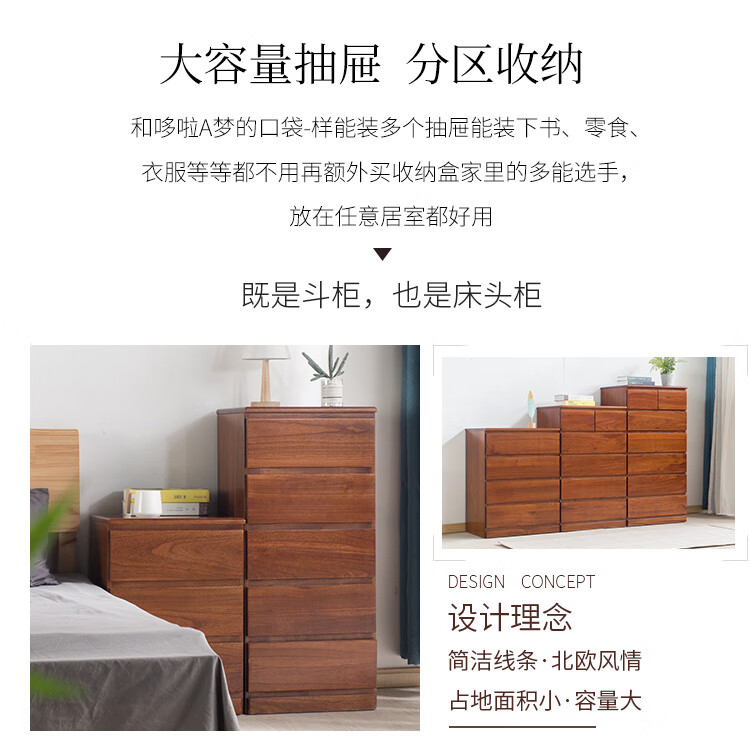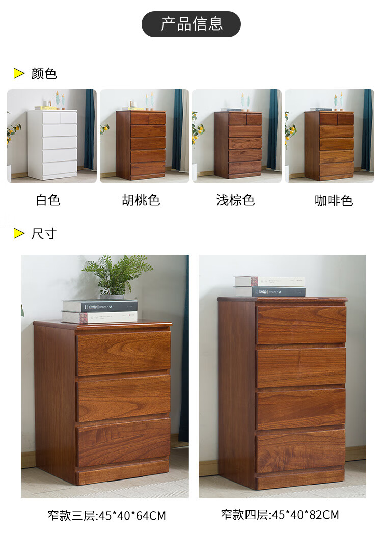 仟艺绘全实木斗柜整装收纳柜床头柜现代简约家用小柜子客厅抽屉式储物柜 窄三斗胡桃【长45*宽40*高64cm】