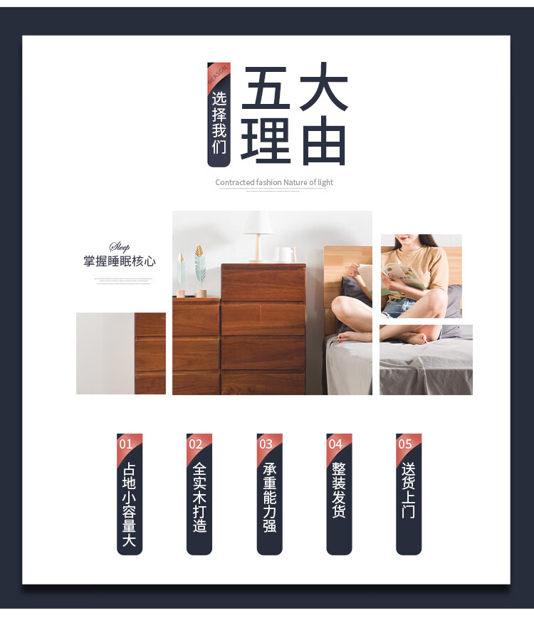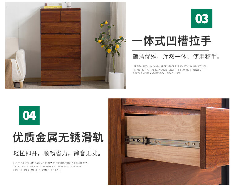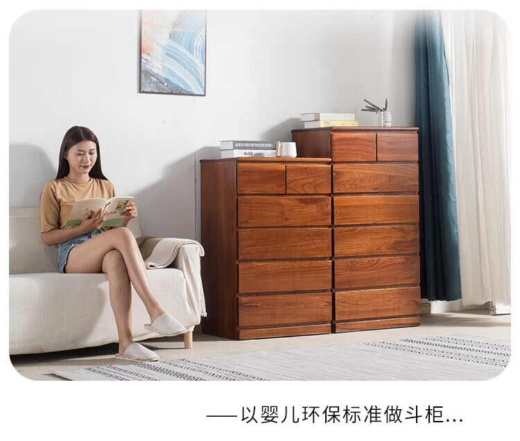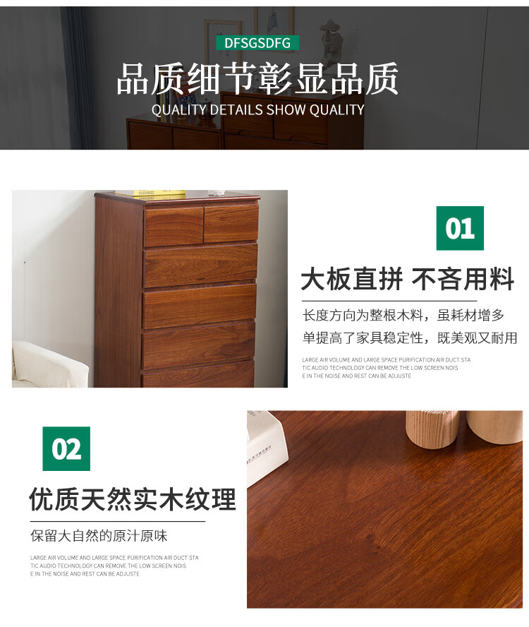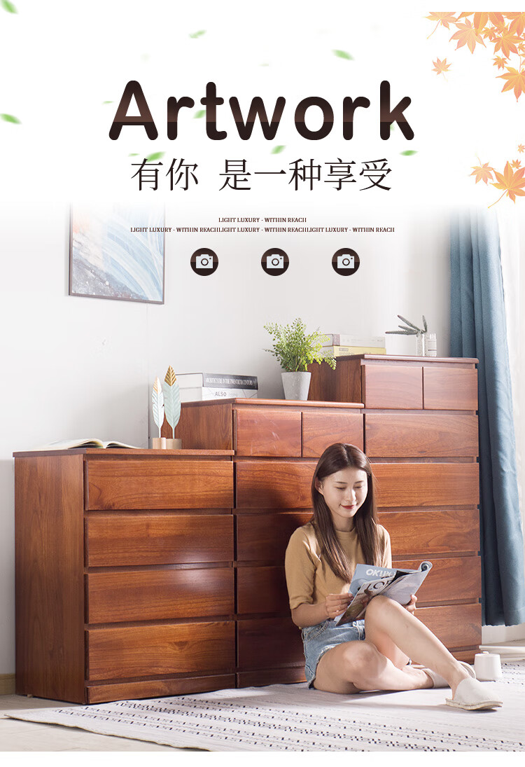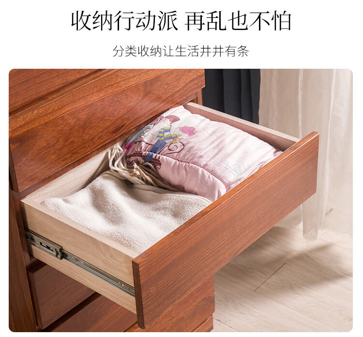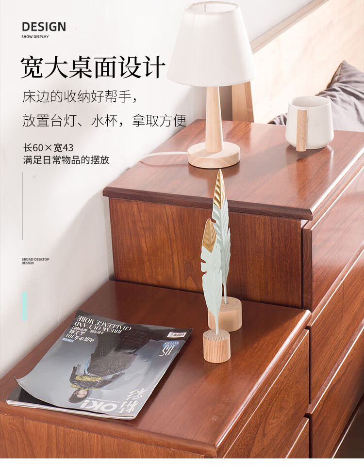 仟艺绘全实木斗柜整装收纳柜床头柜现代简约家用小柜子客厅抽屉式储物柜 窄三斗胡桃【长45*宽40*高64cm】
