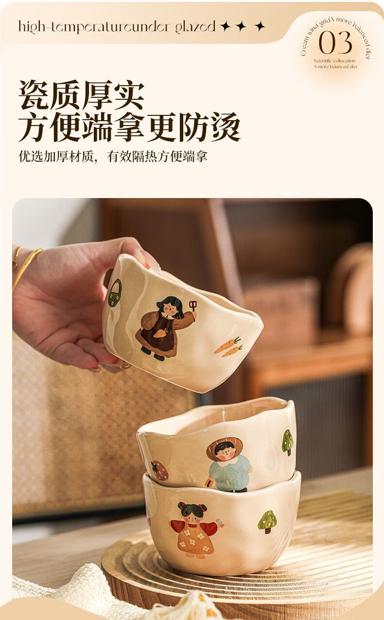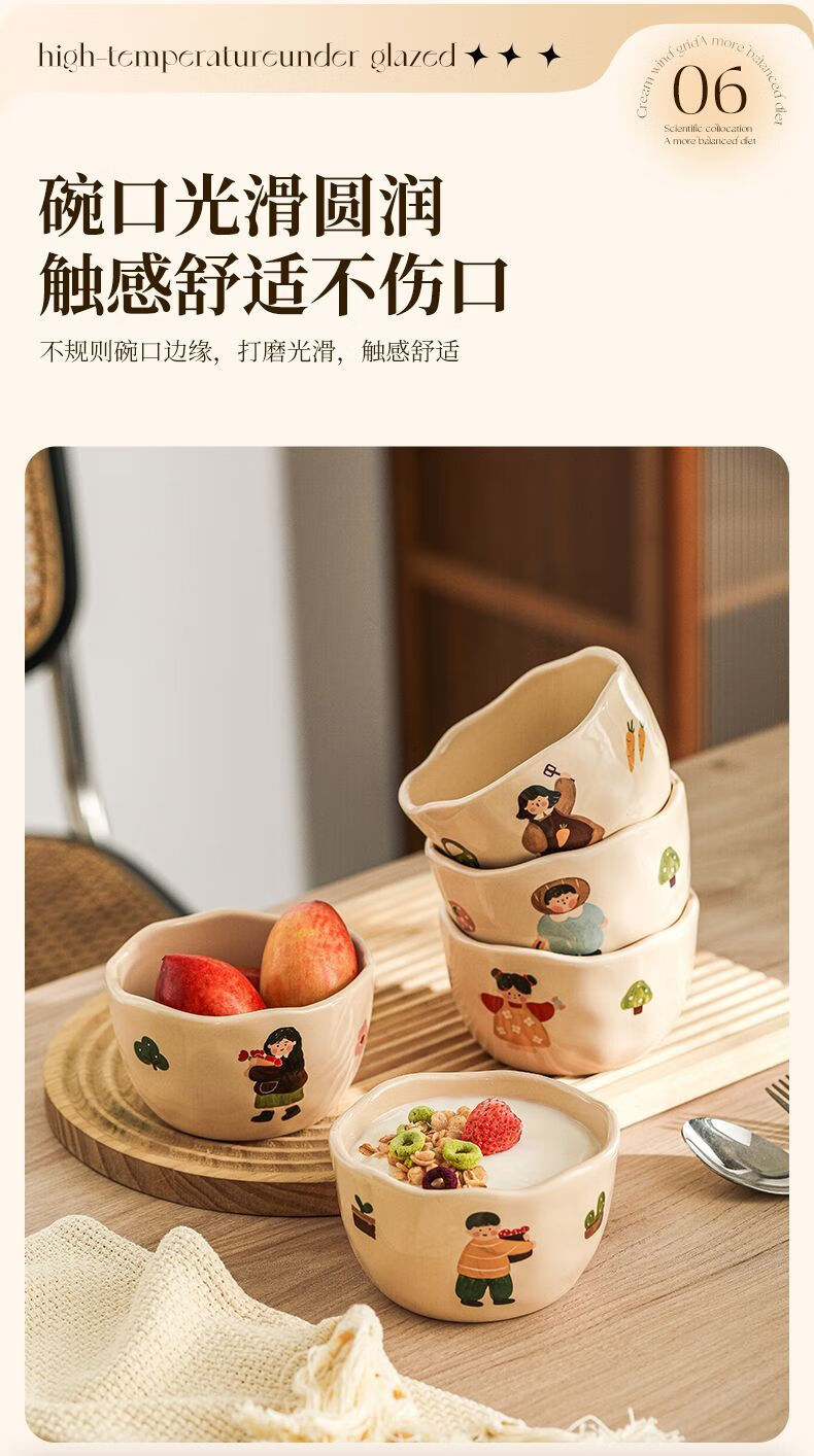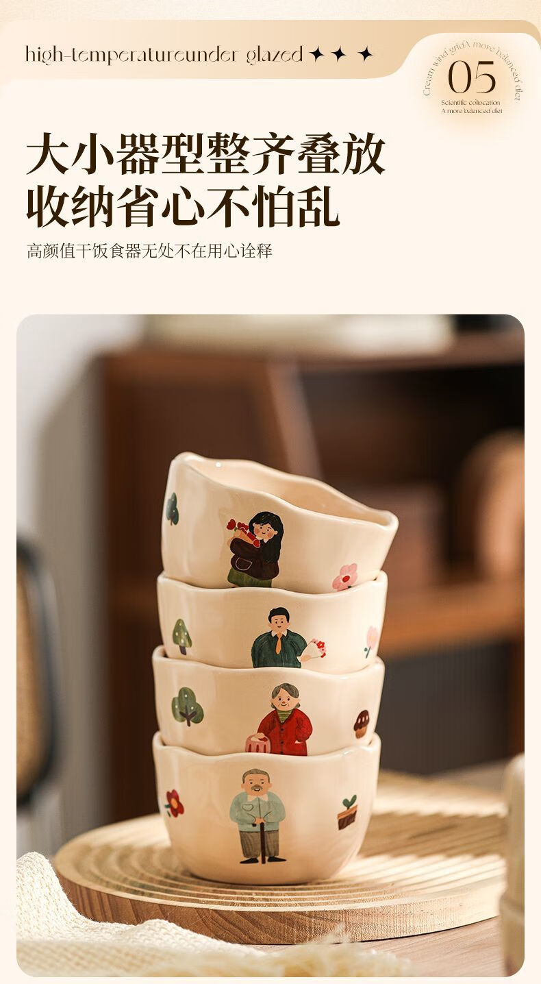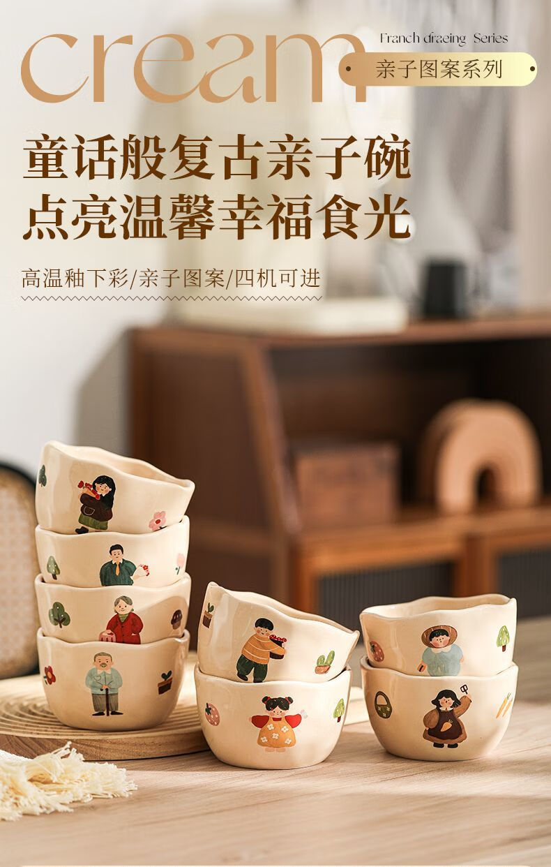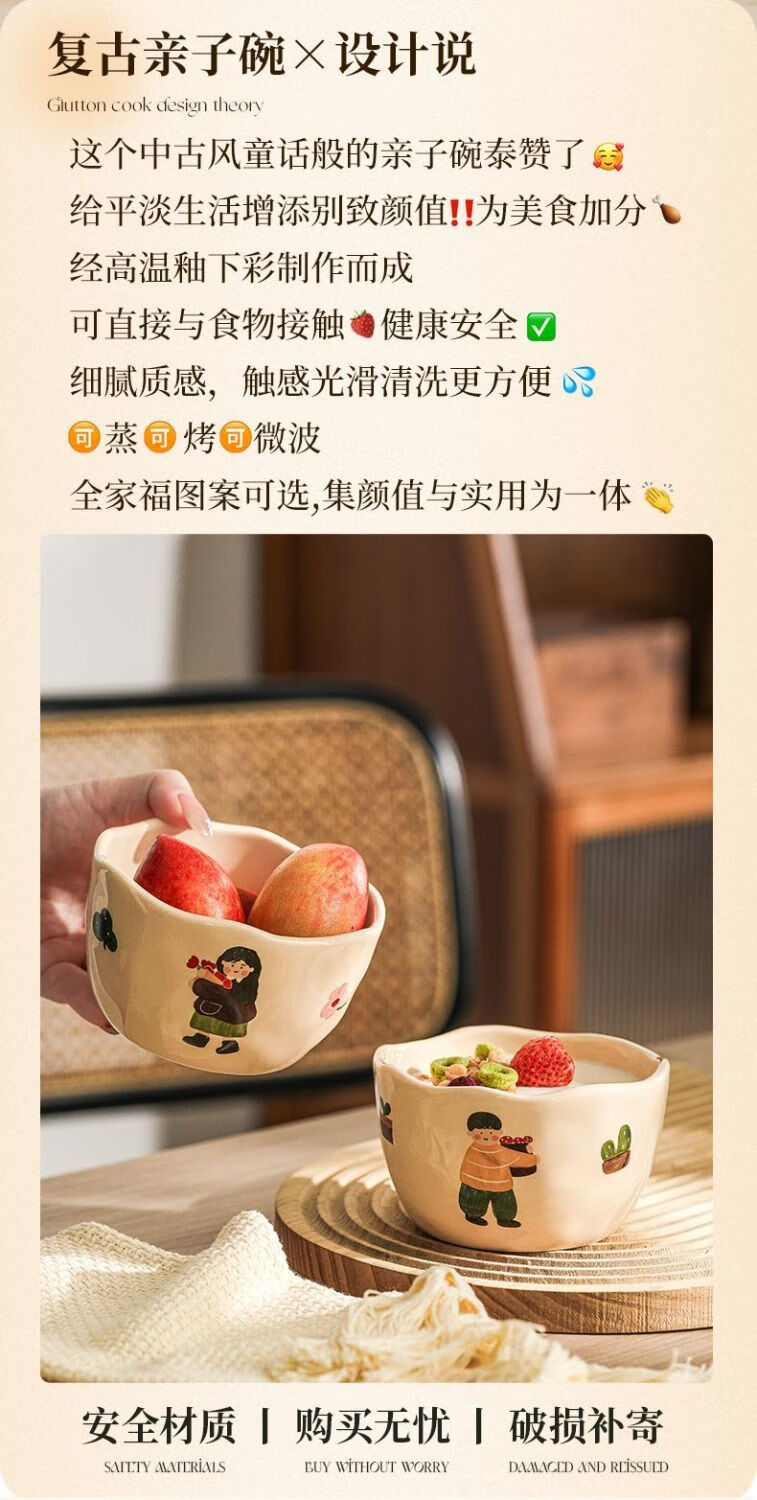 LZJV卡通亲子饭碗加厚耐高温陶瓷健康釉下彩米饭碗家用可爱创意吃饭碗 4.5英寸亲子饭碗-弟弟 4.5英寸高温烧制健康釉下彩/可