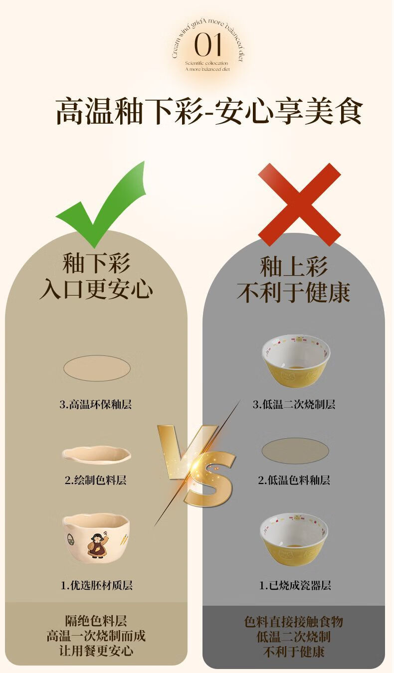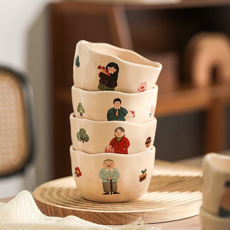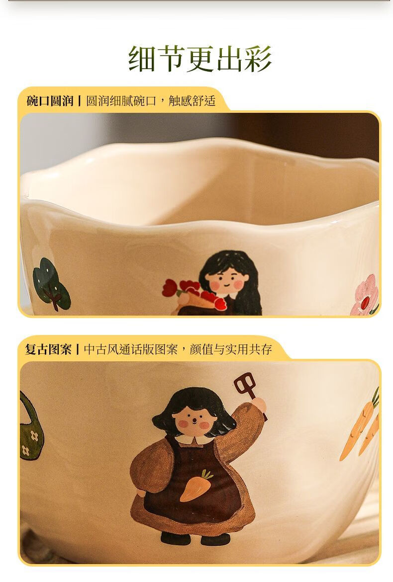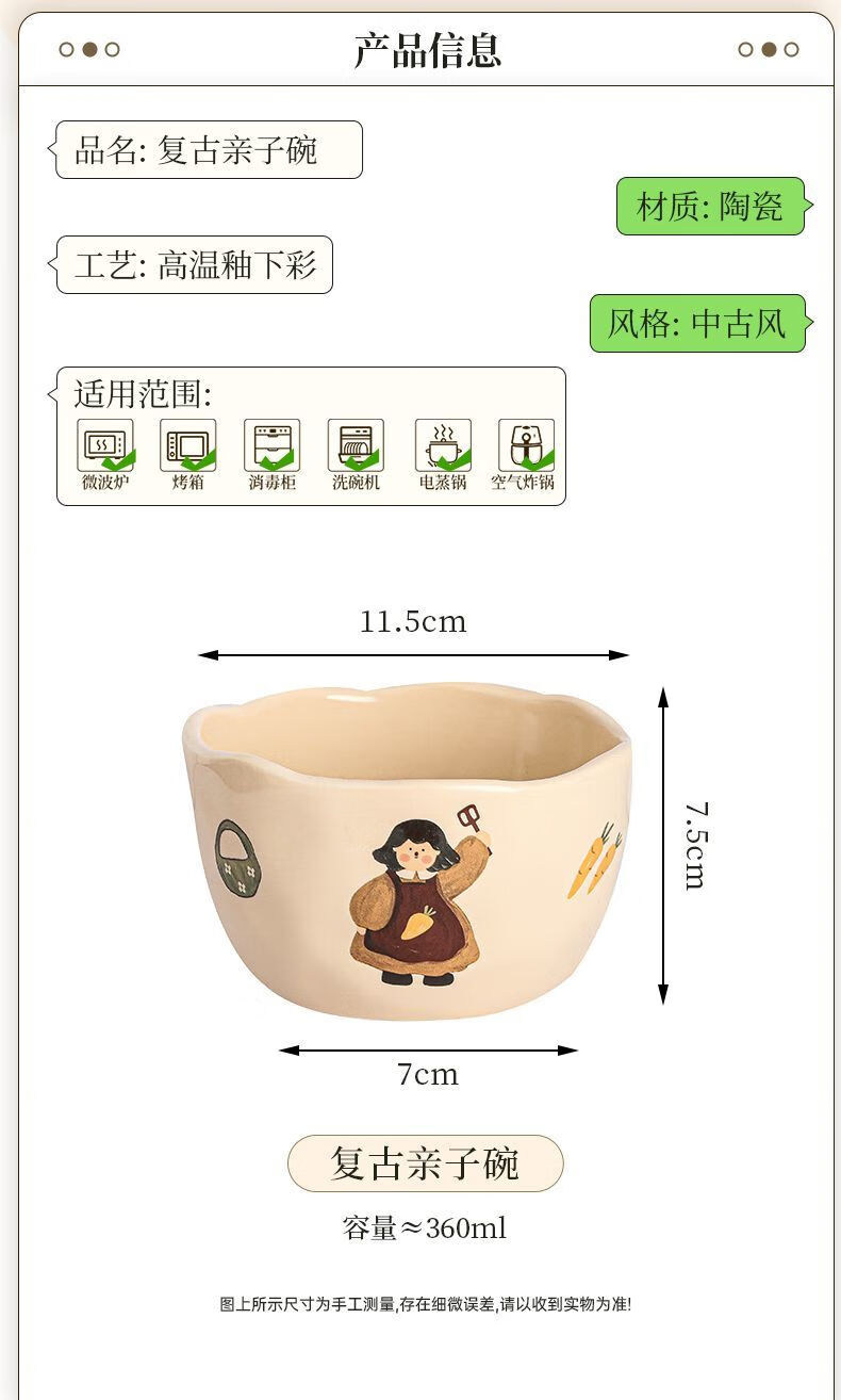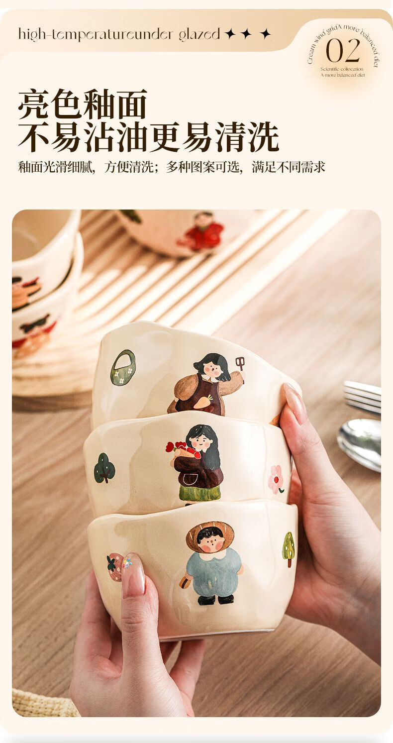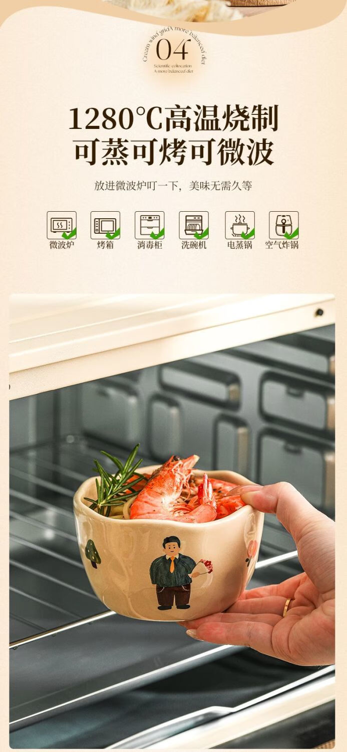 LZJV卡通亲子饭碗加厚耐高温陶瓷健康釉下彩米饭碗家用可爱创意吃饭碗 4.5英寸亲子饭碗-弟弟 4.5英寸高温烧制健康釉下彩/可
