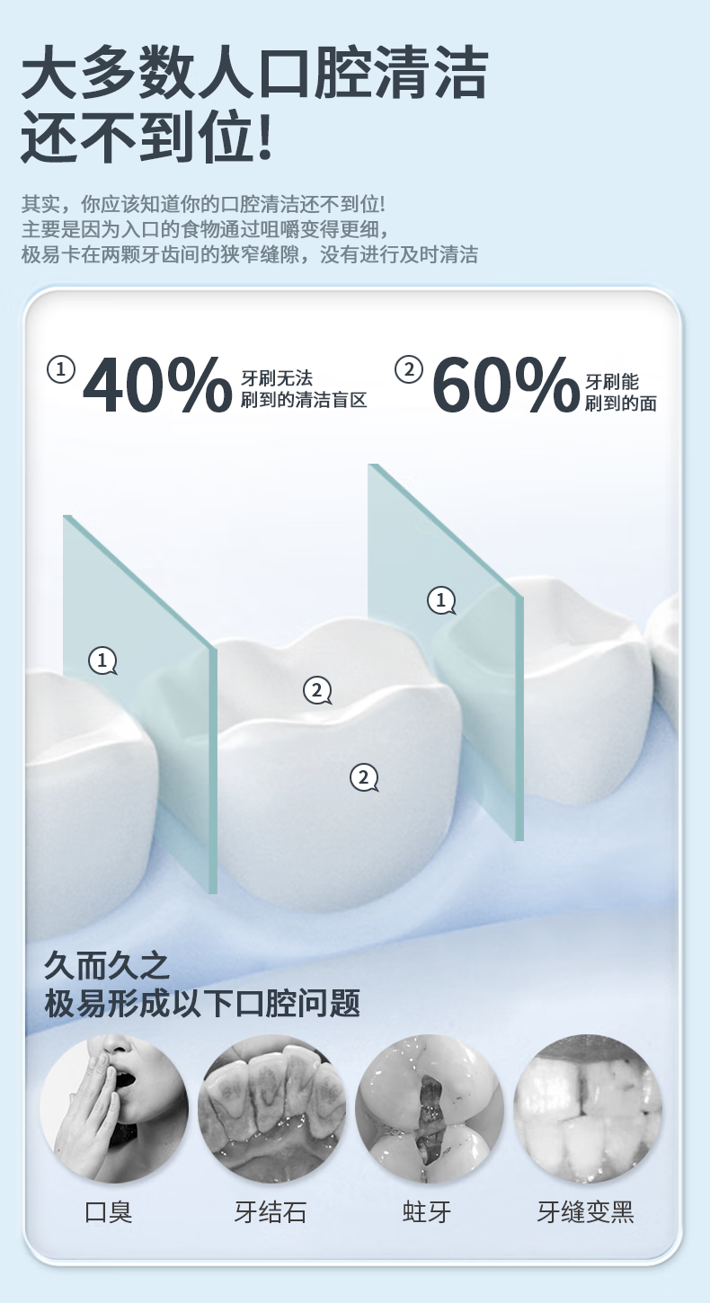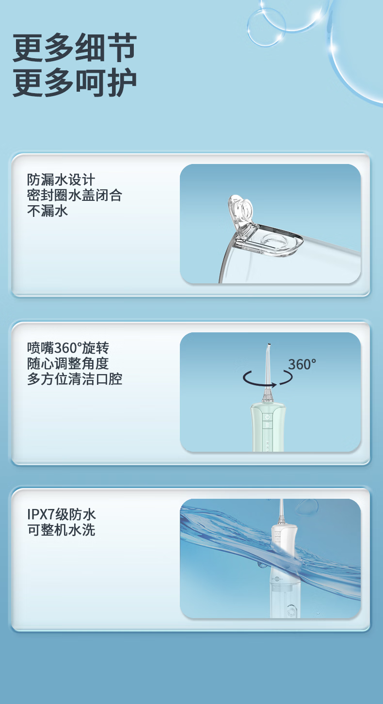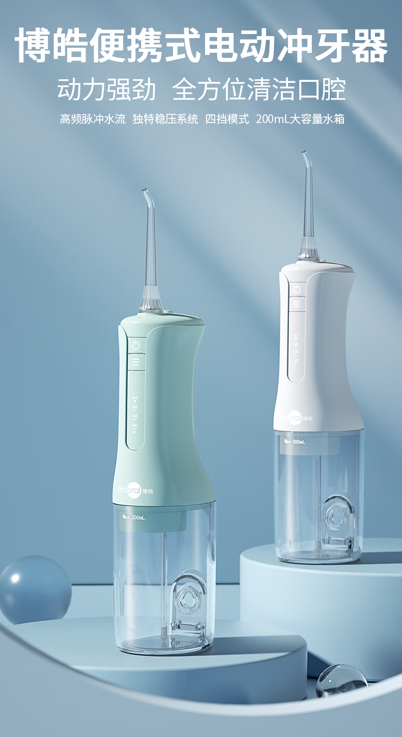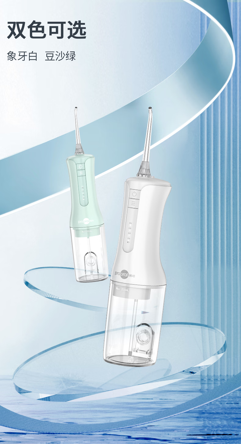 博皓(prooral)冲牙器立式手持洗牙器家用电动牙齿冲洗器水牙线声波洁牙器 便携式冲牙器 F40 象牙白