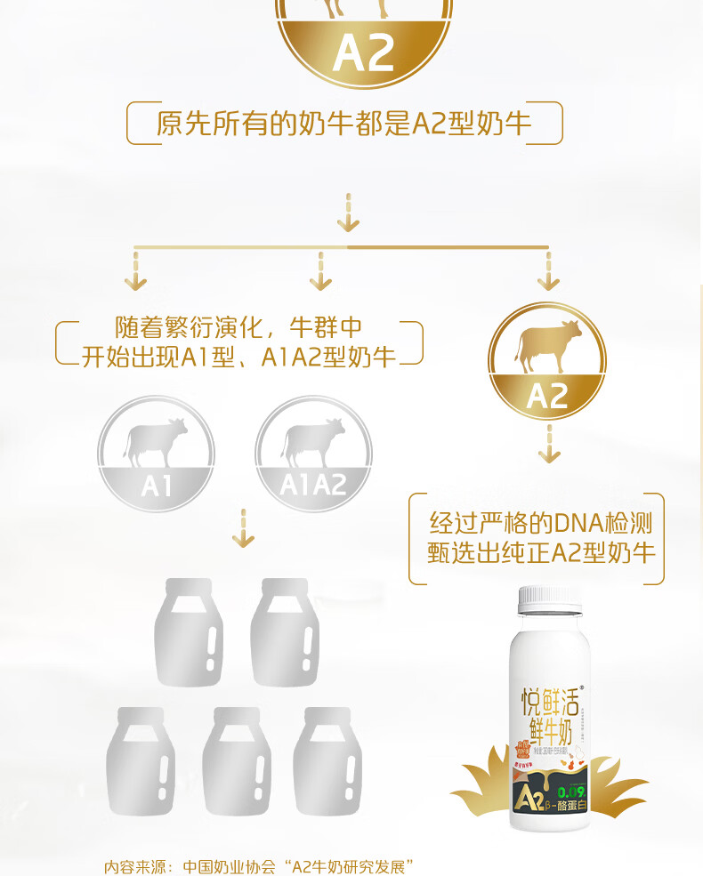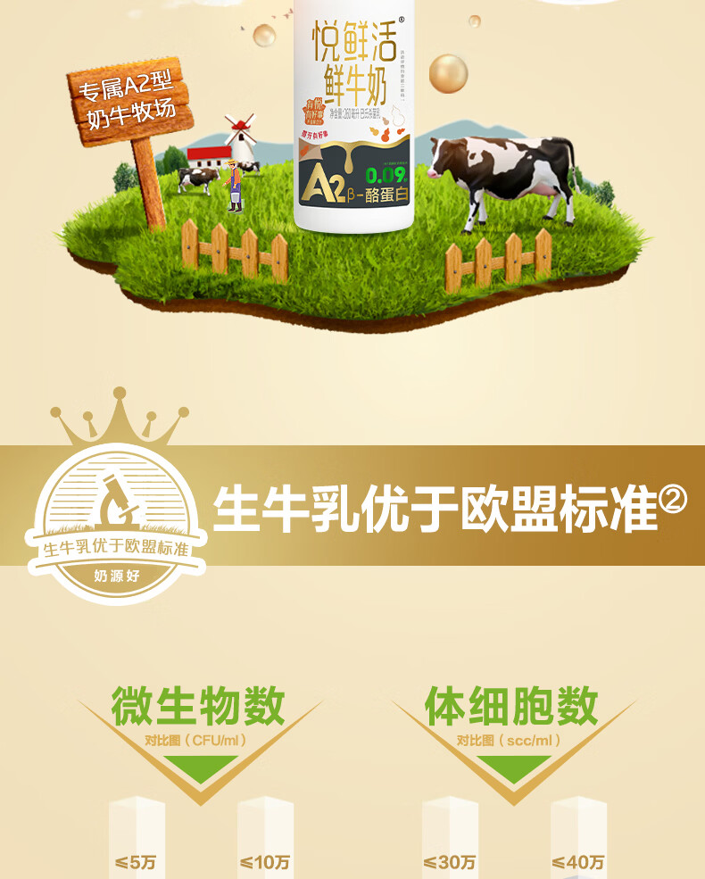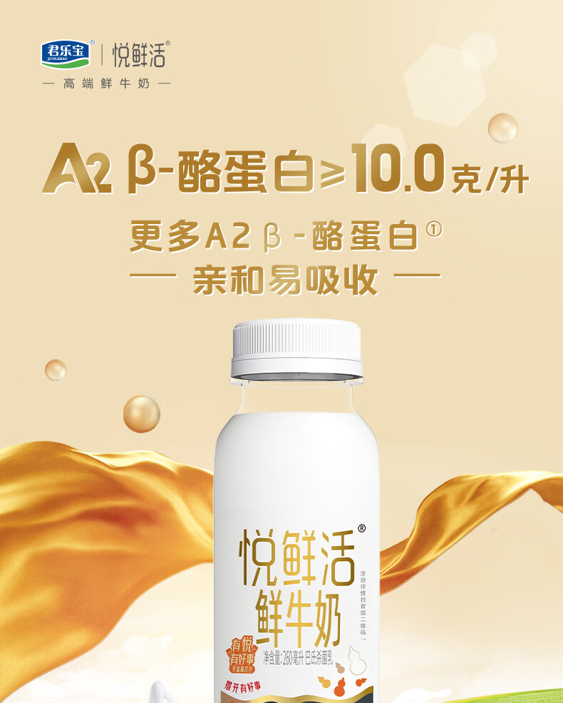 悦鲜活鲜牛奶 A2β-酪蛋白 低温奶 生牛乳 260ml 组合装 A2-260*5+260*5