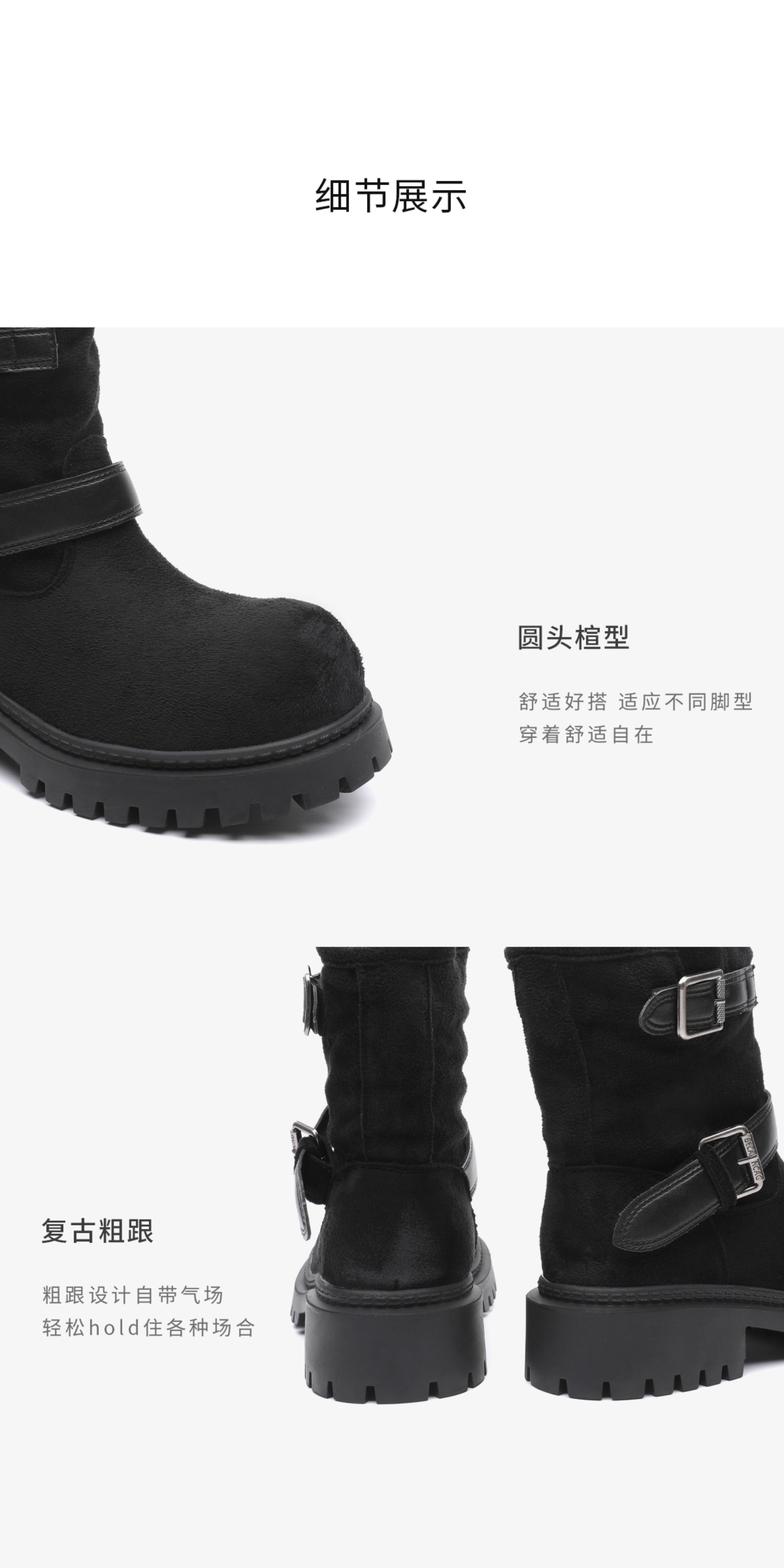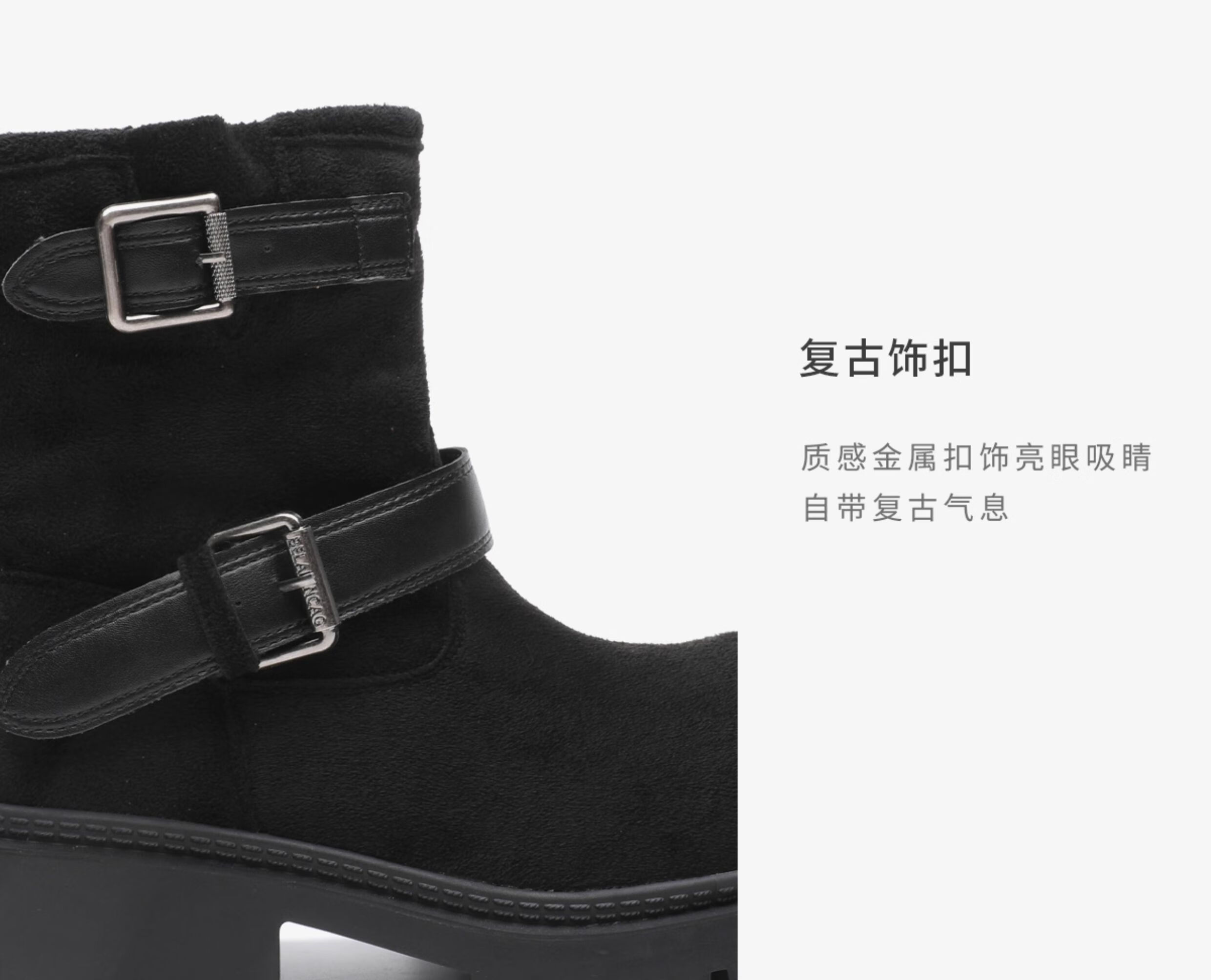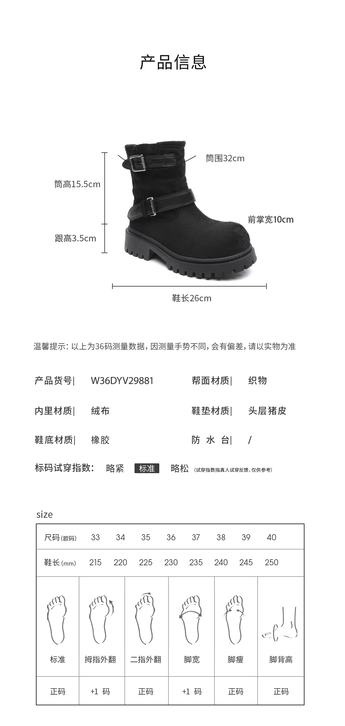 月芽儿马丁靴女2025新款冬季复古皮带扣加绒保暖中跟英伦靴子短靴 绒里黑色01T 34