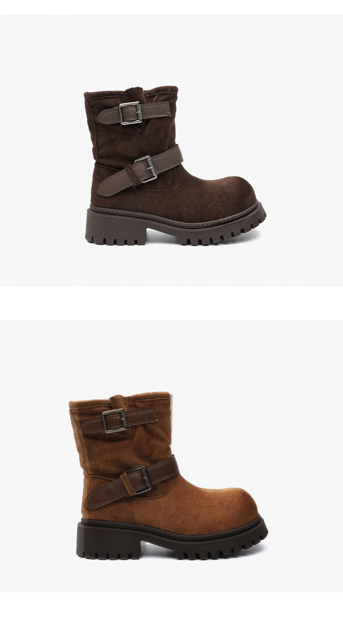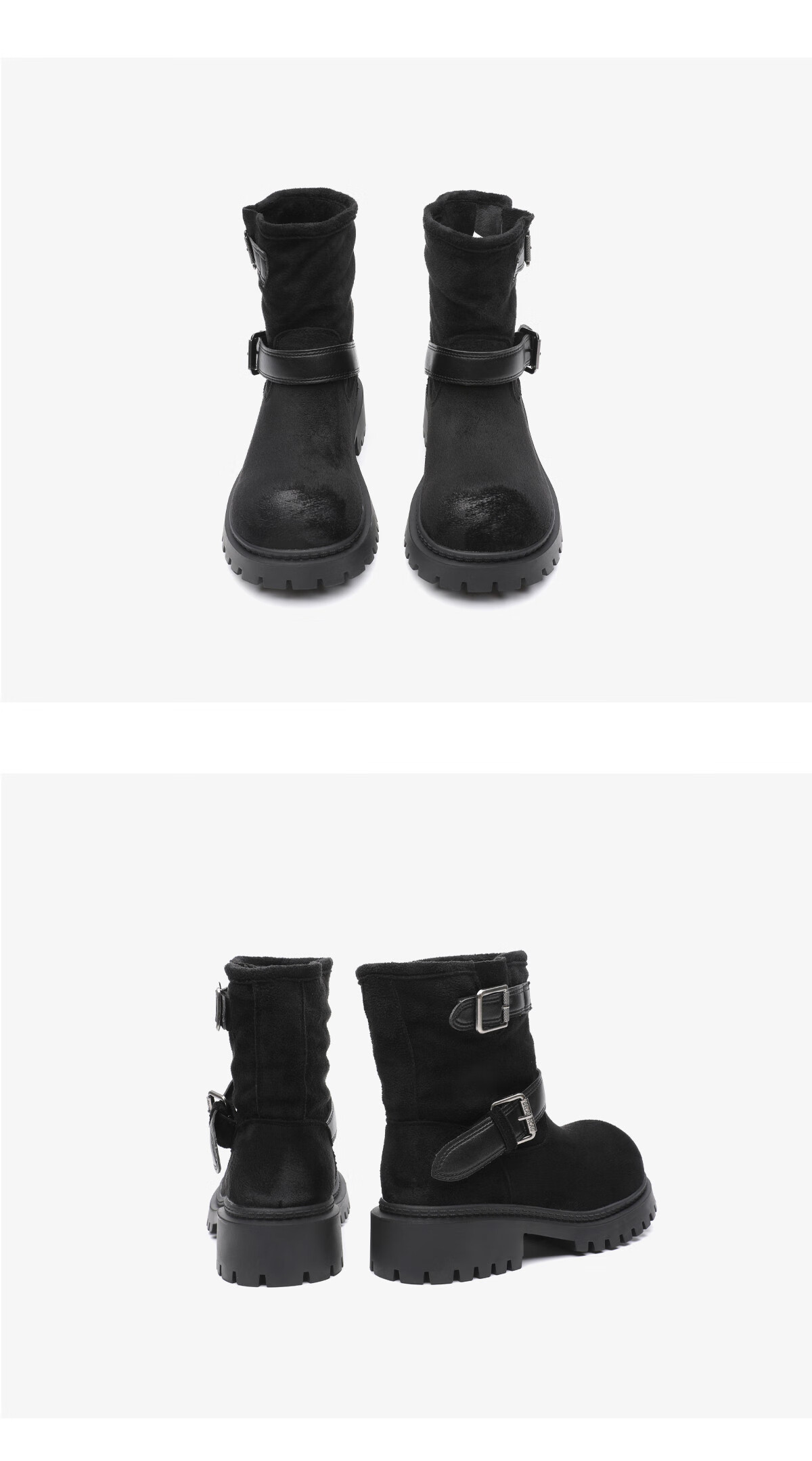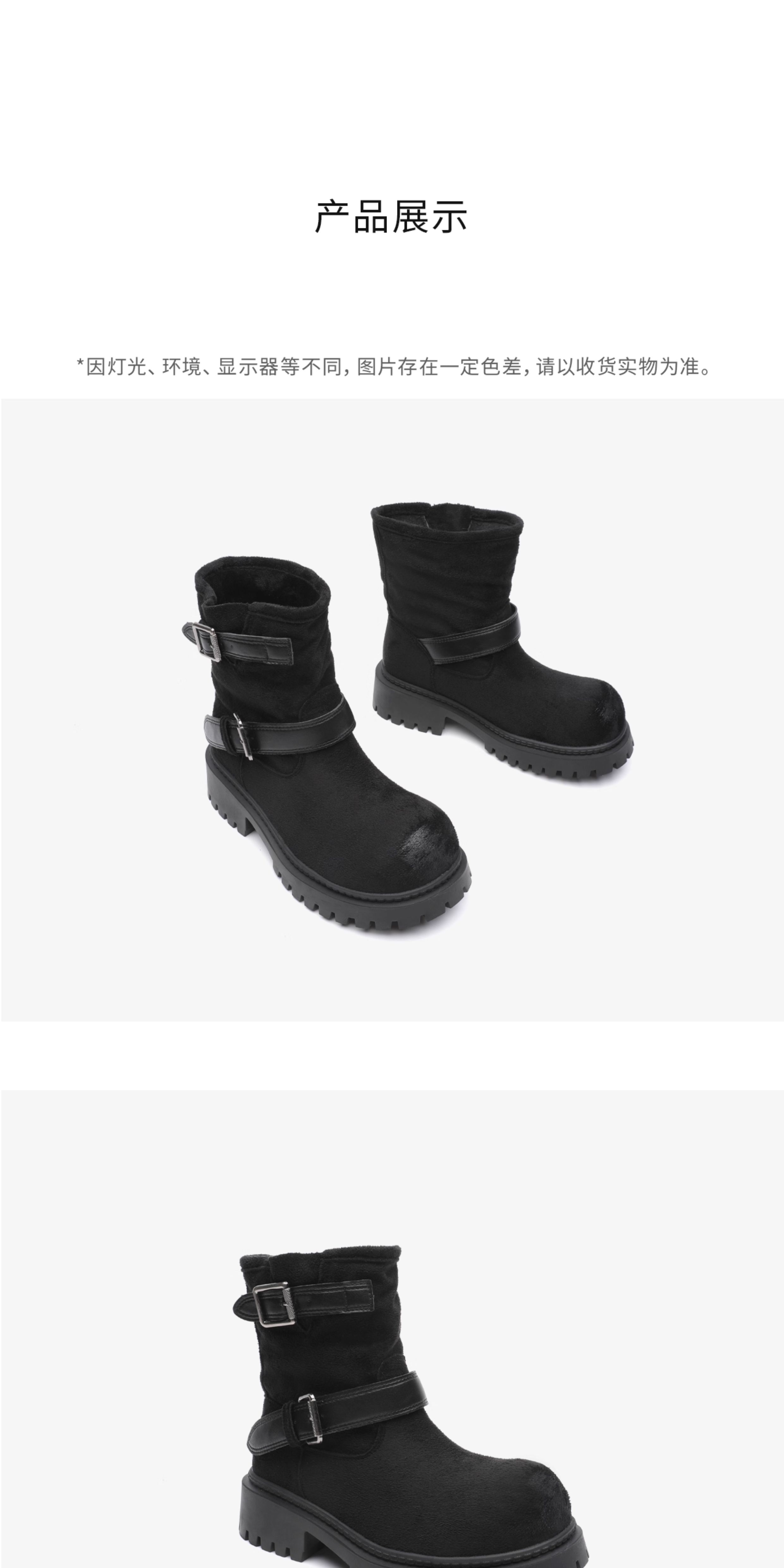 月芽儿马丁靴女2025新款冬季复古皮带扣加绒保暖中跟英伦靴子短靴 绒里黑色01T 34