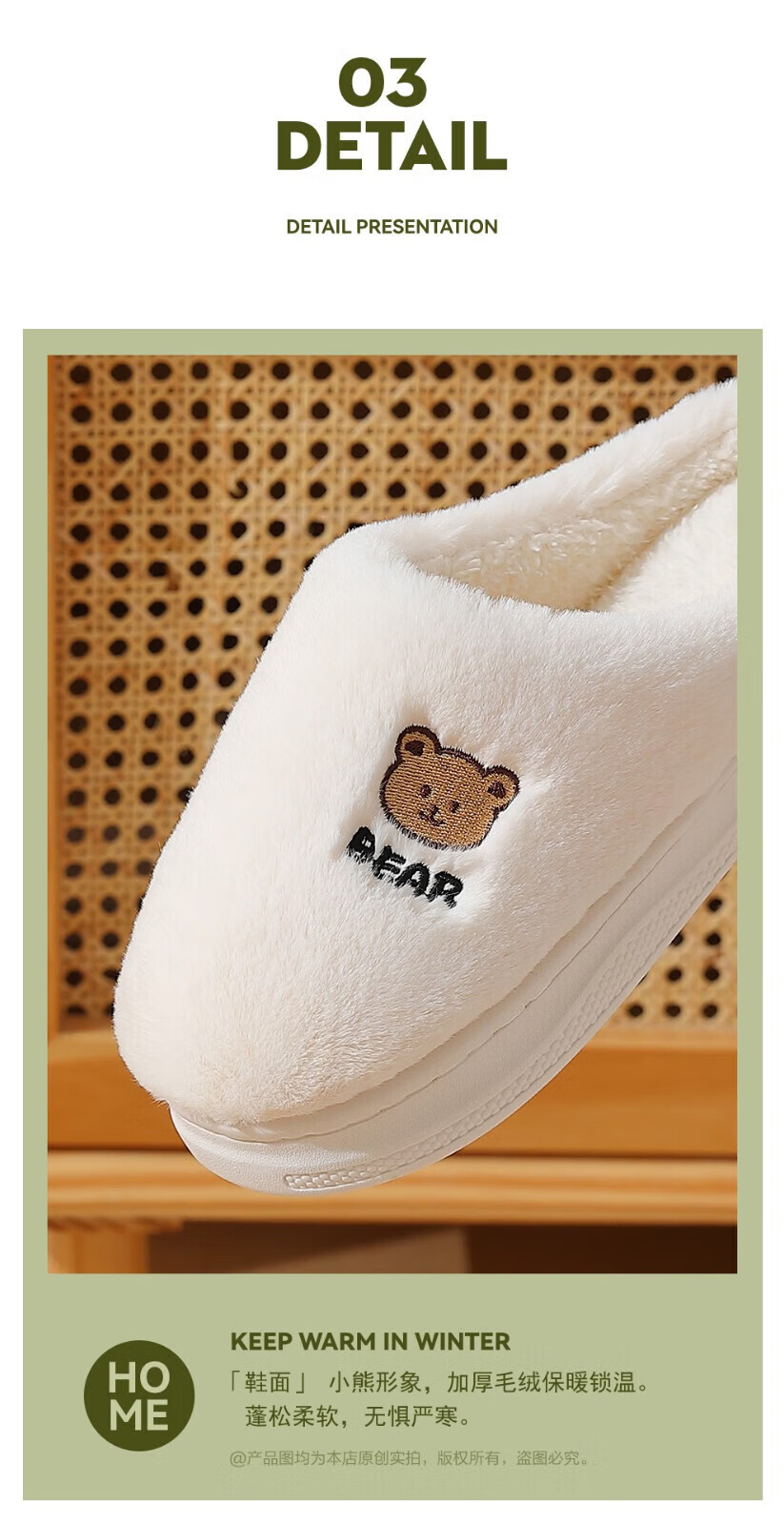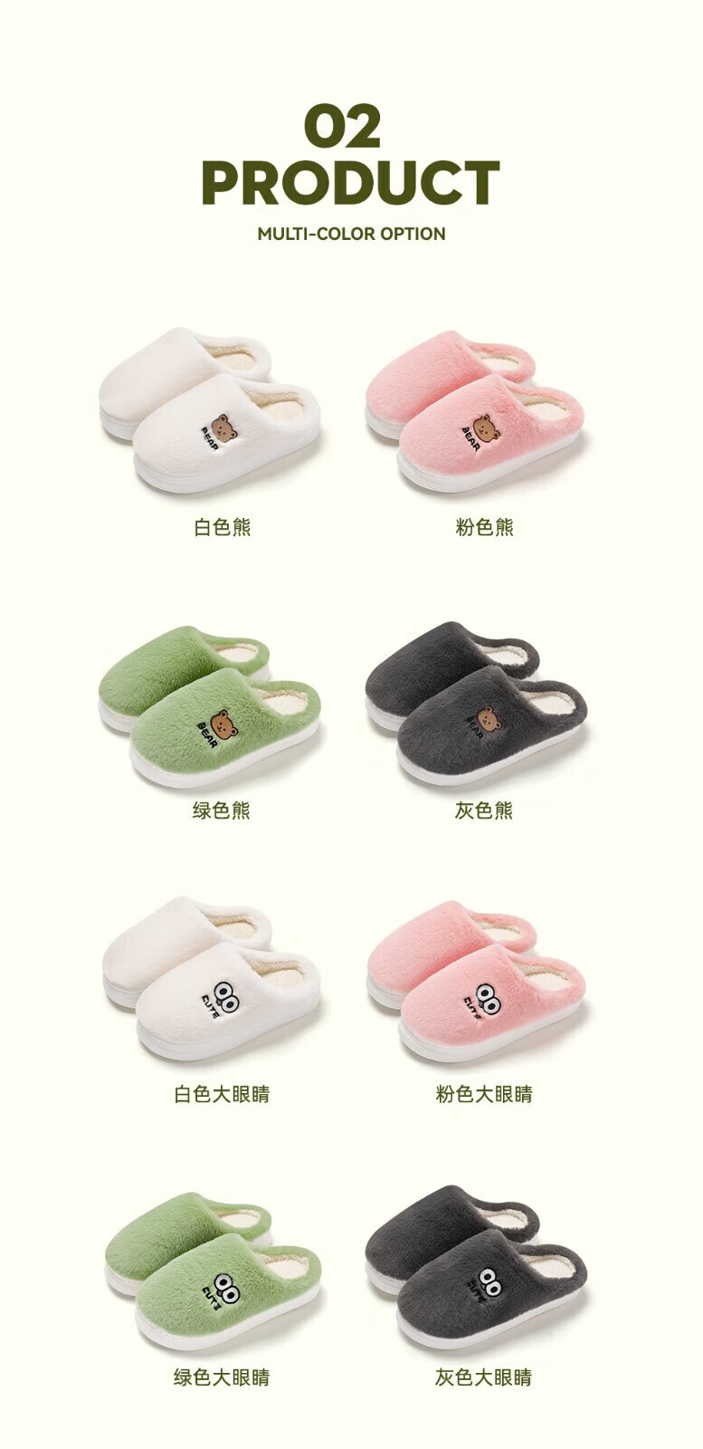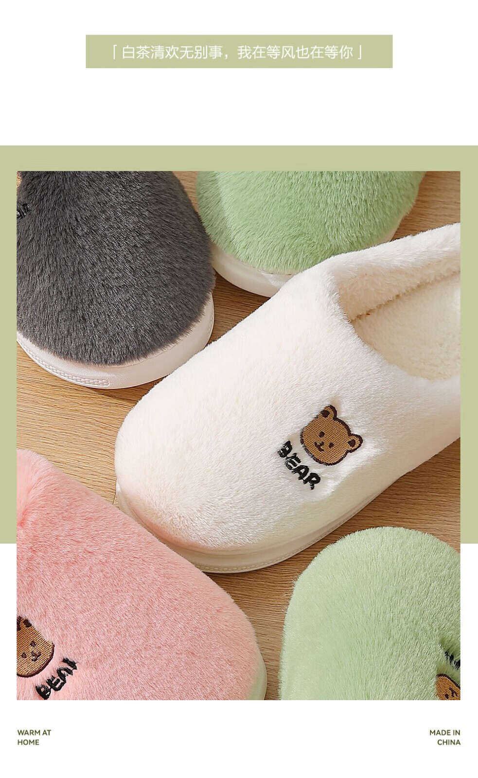 FZT踩屎感棉拖鞋男士秋冬季外穿新款户外家居加绒保暖半包跟棉鞋男 绿色【侧边小熊】 40-41 (240mm)适合39-40