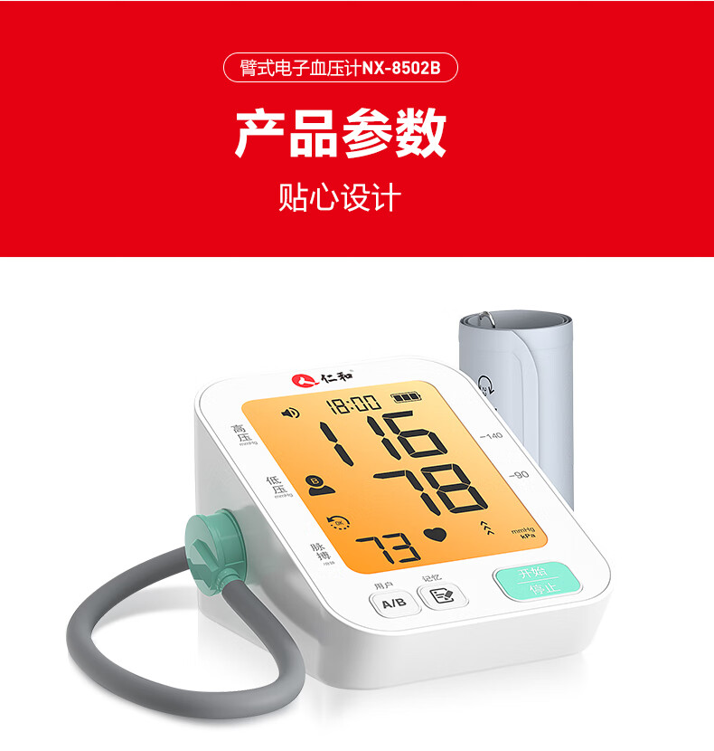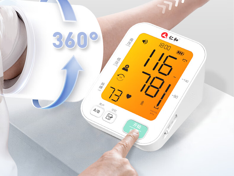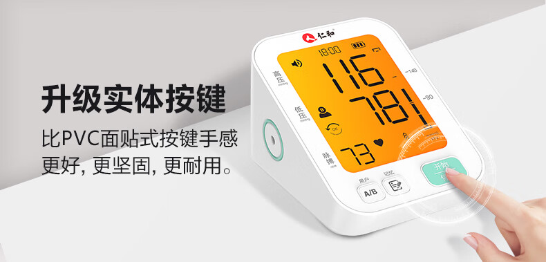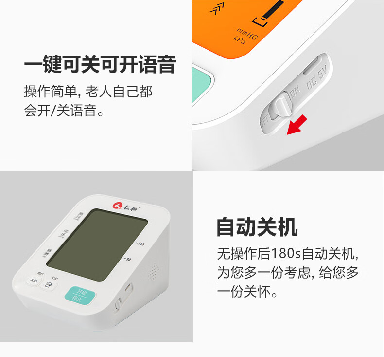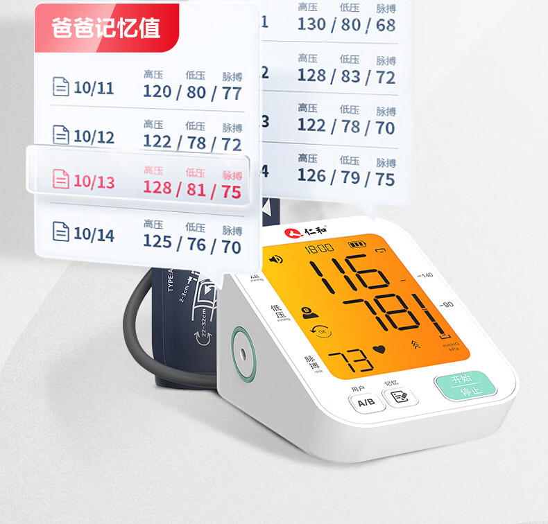 仁和电子血压计血压检测医用标准高精准量血压器家用上臂式测血压仪 高配款语音播报+4.0寸大屏-电池款【赠品+2】