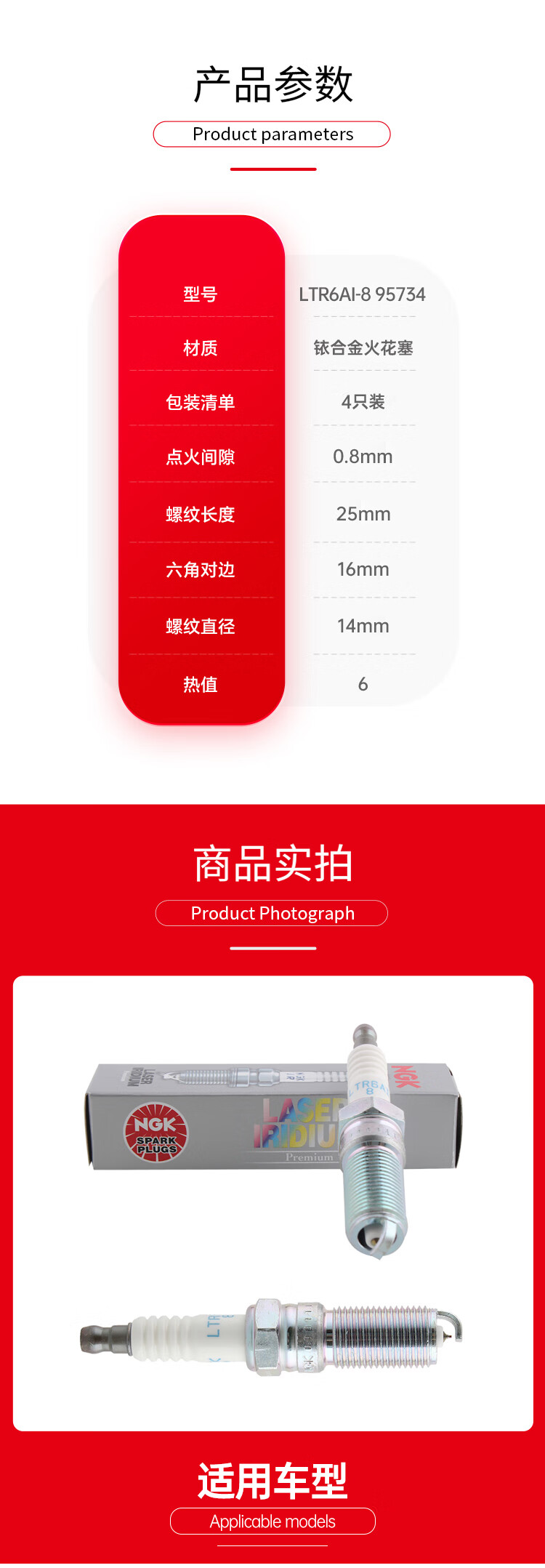NGK铱合金火花塞LTR6AI-8四支装福特福克斯蒙迪欧致胜翼虎锐界金牛座