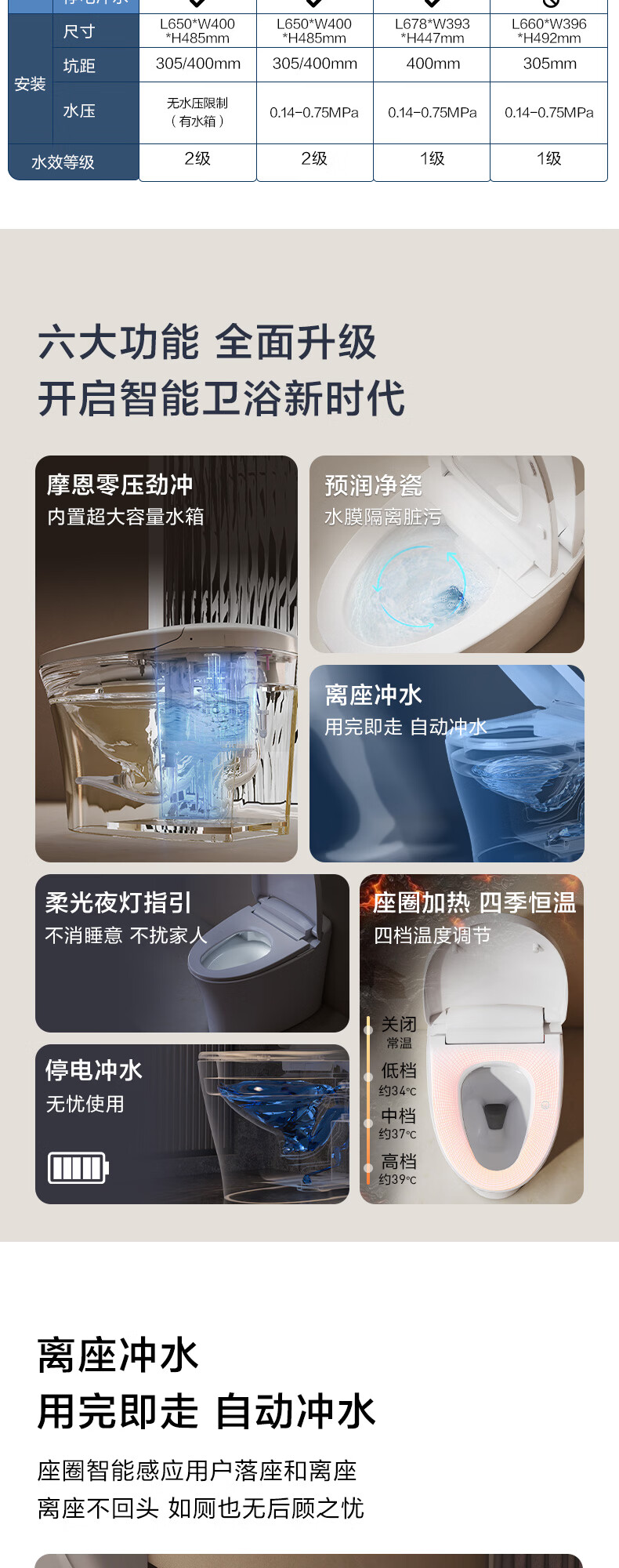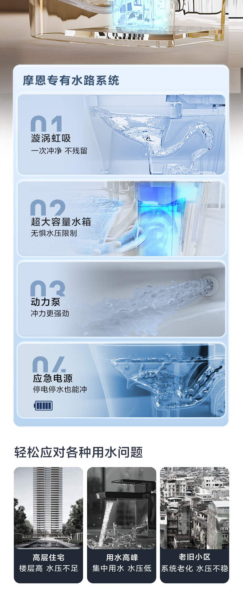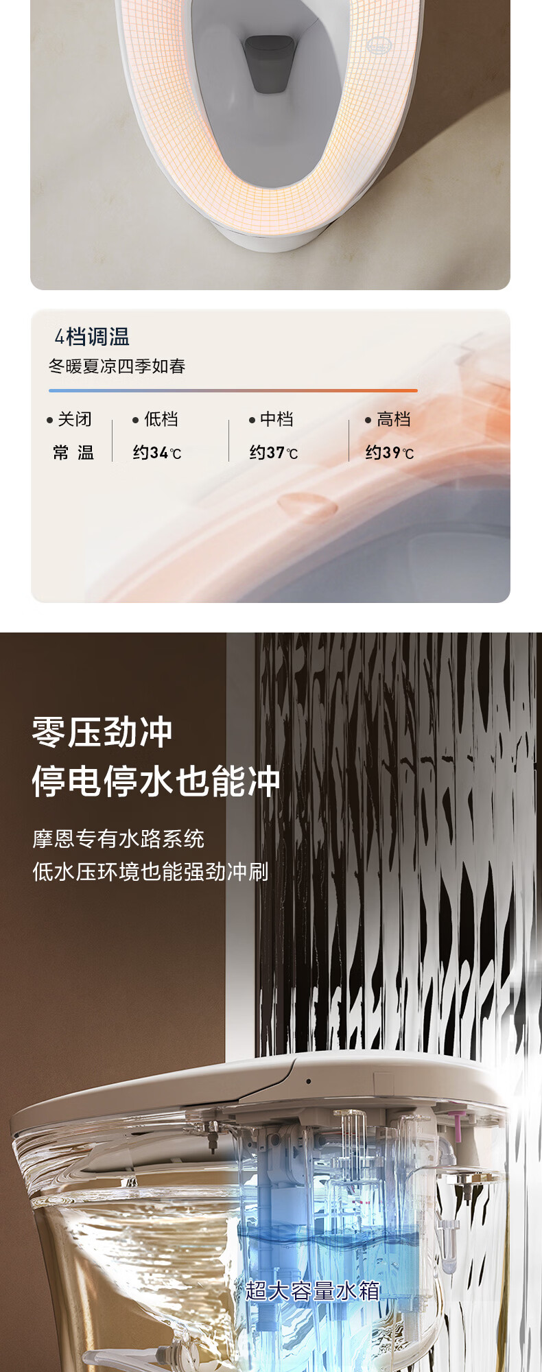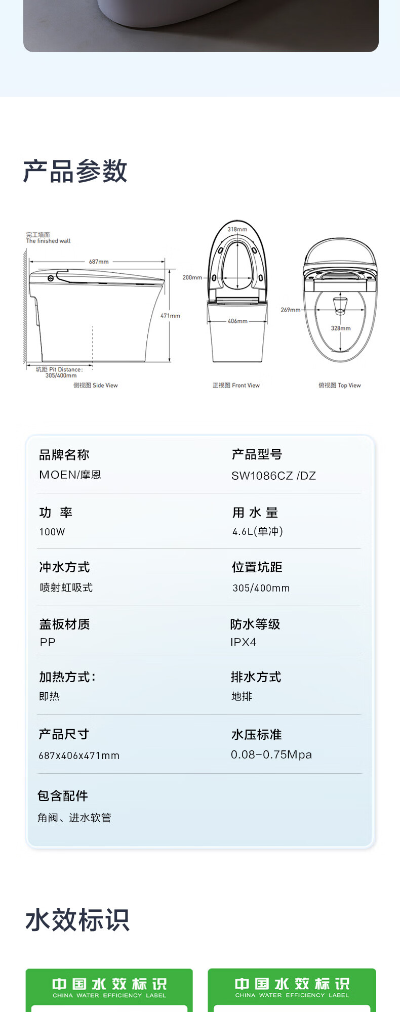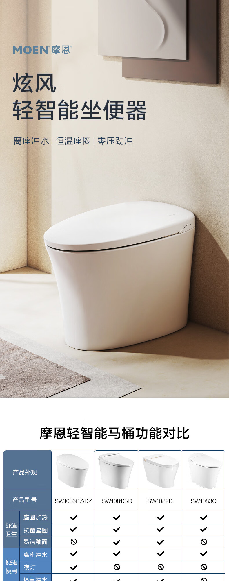 摩恩(MOEN)轻智能马桶一体式家用坐便器泡沫盾零压劲冲1086 SW1082(停电冲水 离座冲水 座圈加热) 400mm