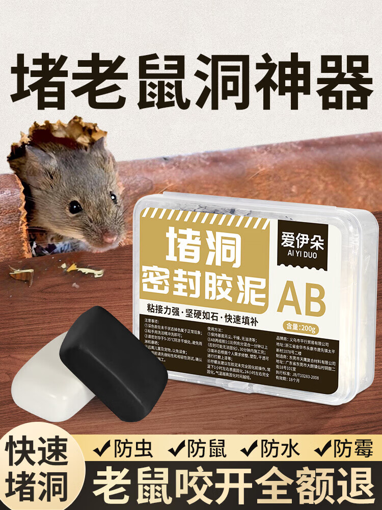 翰鸥斐橡皮泥堵洞堵老鼠洞神器防老鼠堵塞空调口孔洞封堵防水密封胶泥封 土黄色200g【防水防鼠防虫-超硬