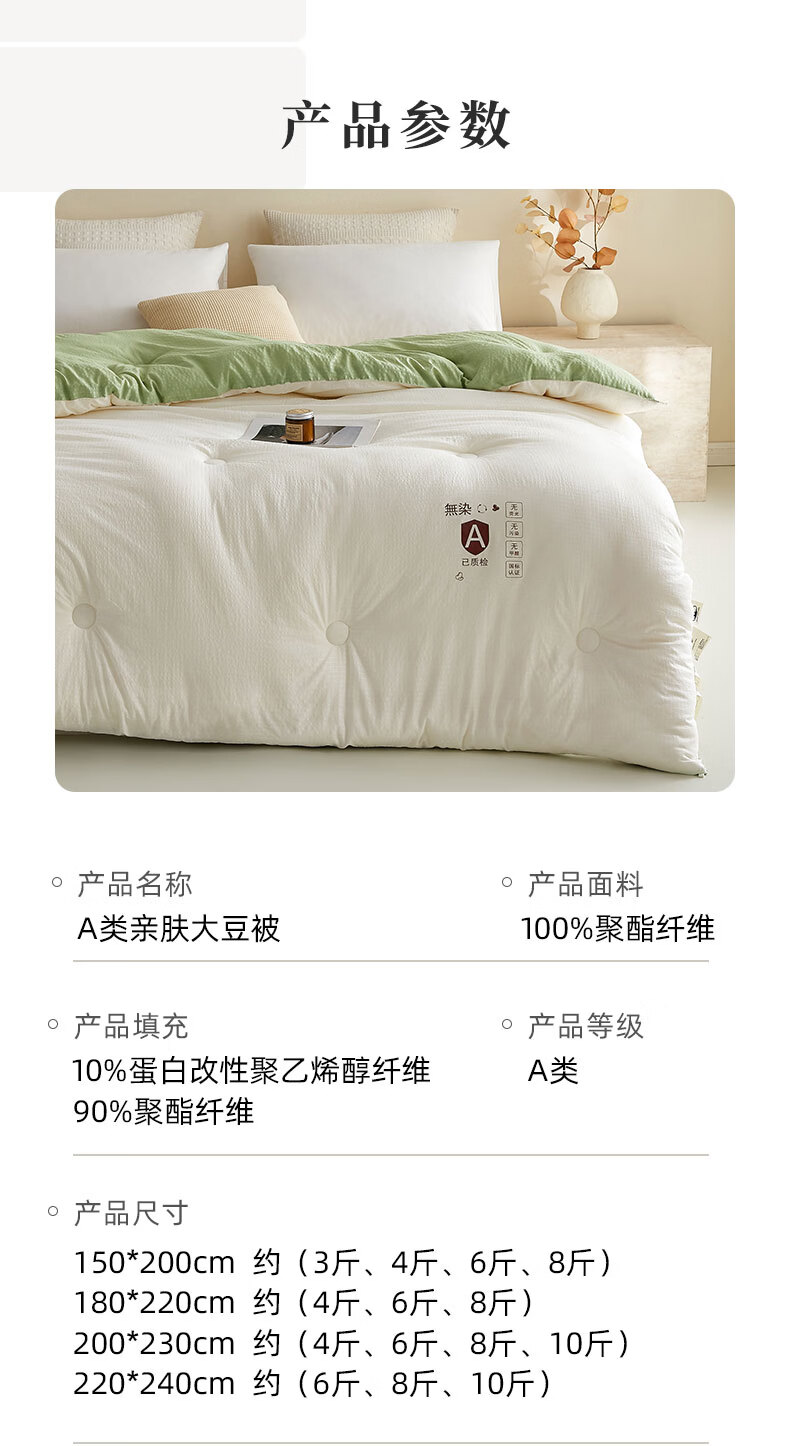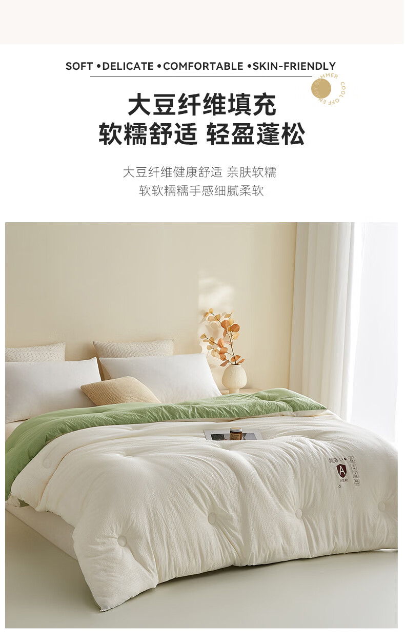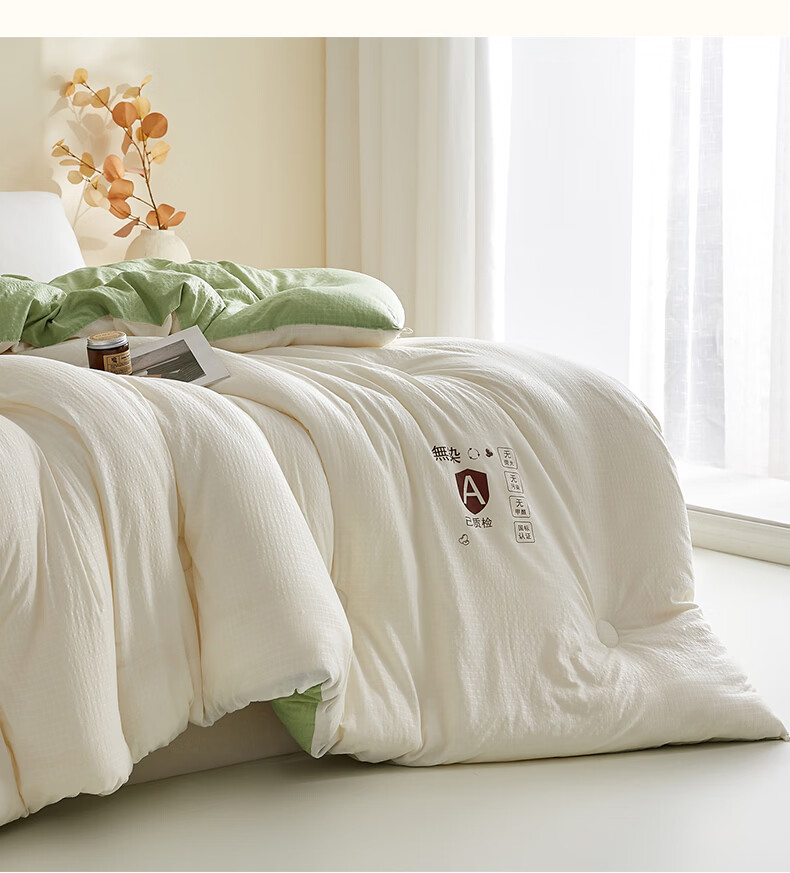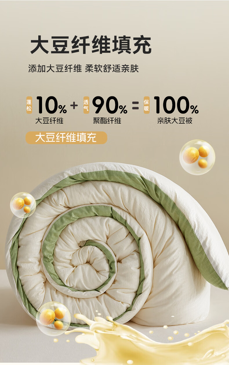 金号10%大豆被春秋被被子冬被冬季加厚保暖单双人宿舍四季被芯棉絮被 米拼绿【10%大豆纤维填充】 200*230cm冬被-约6斤室温15°