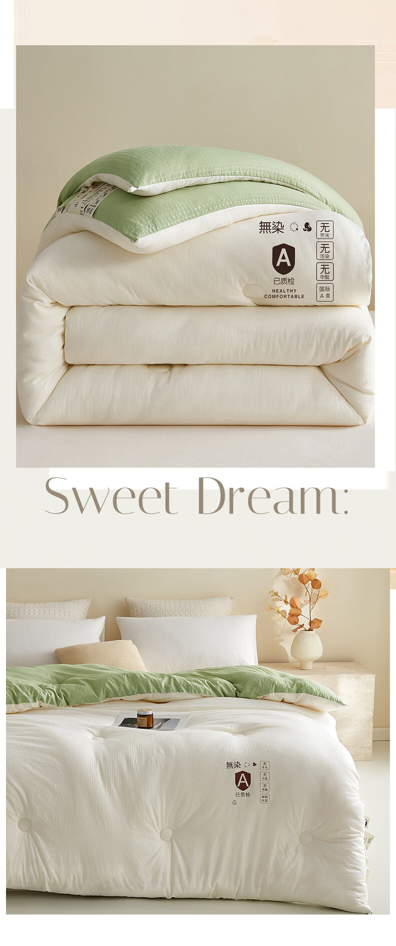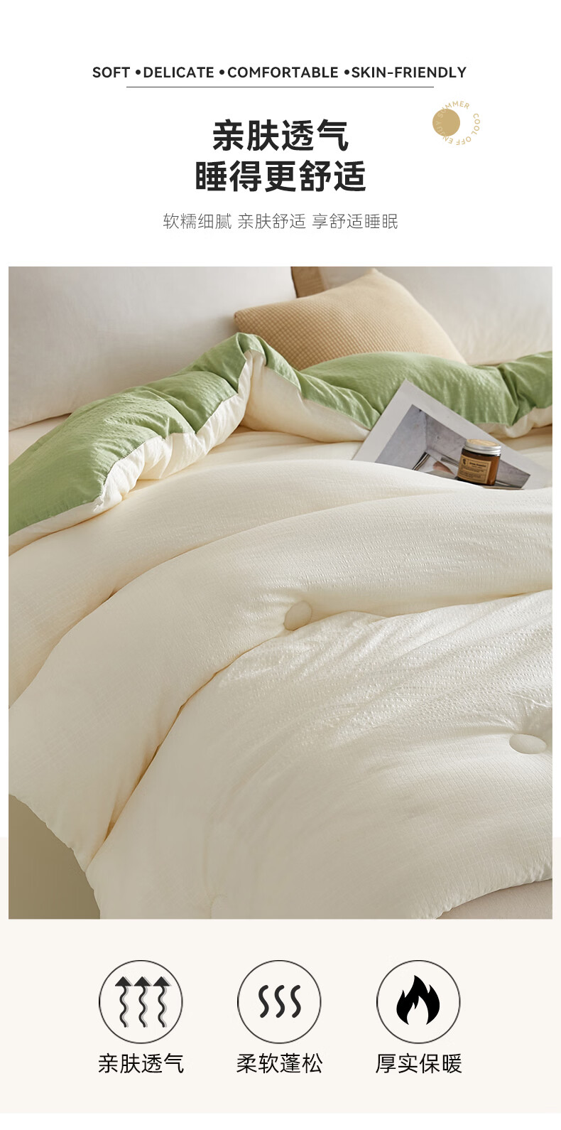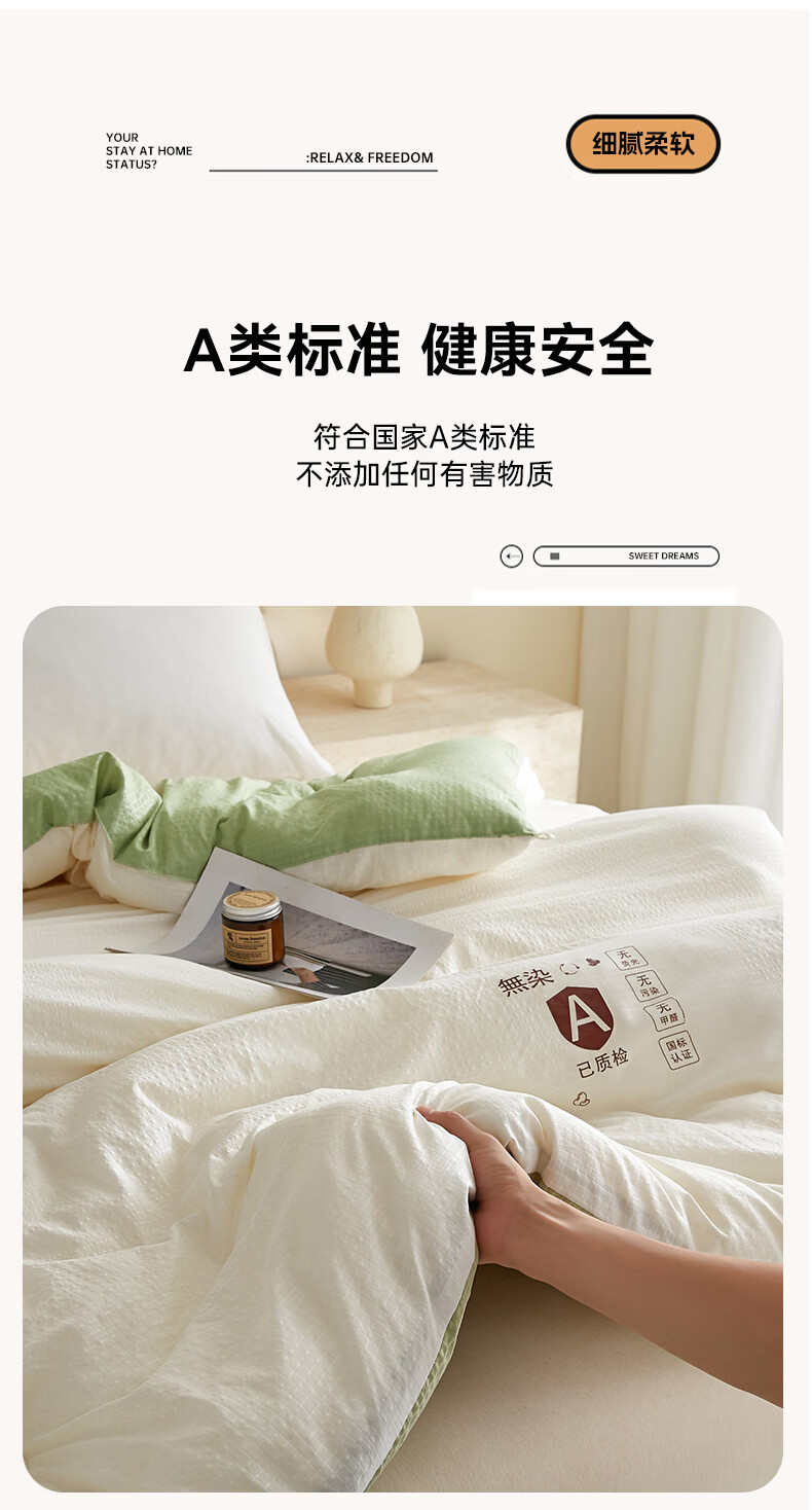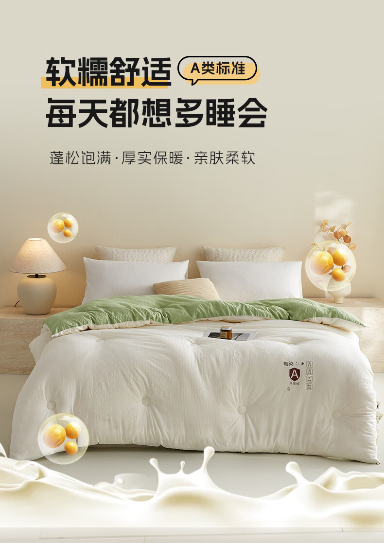 金号10%大豆被春秋被被子冬被冬季加厚保暖单双人宿舍四季被芯棉絮被 米拼绿【10%大豆纤维填充】 200*230cm冬被-约6斤室温15°