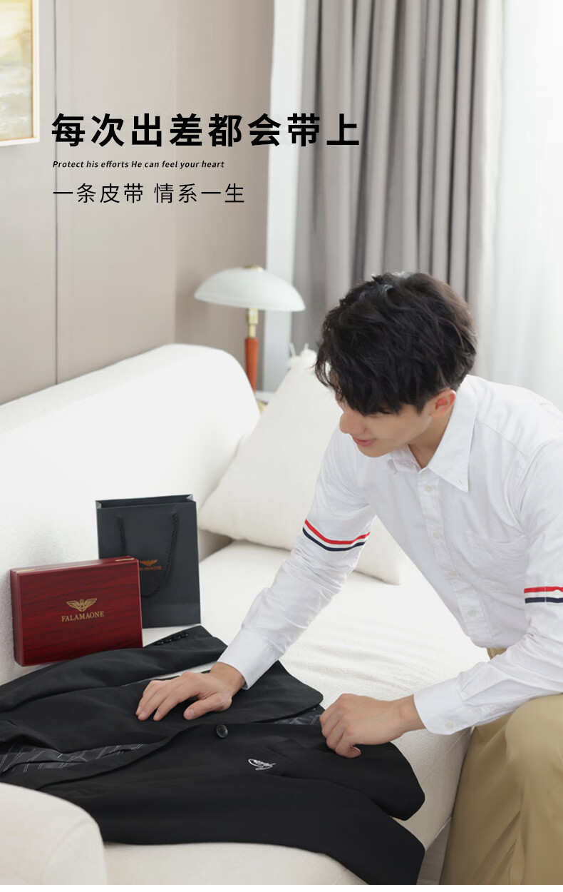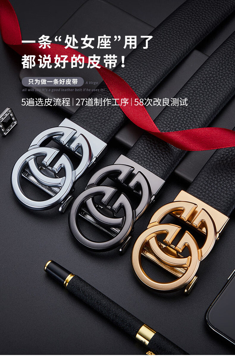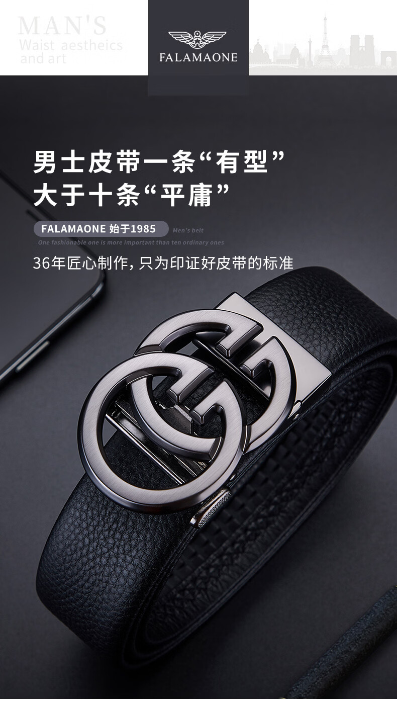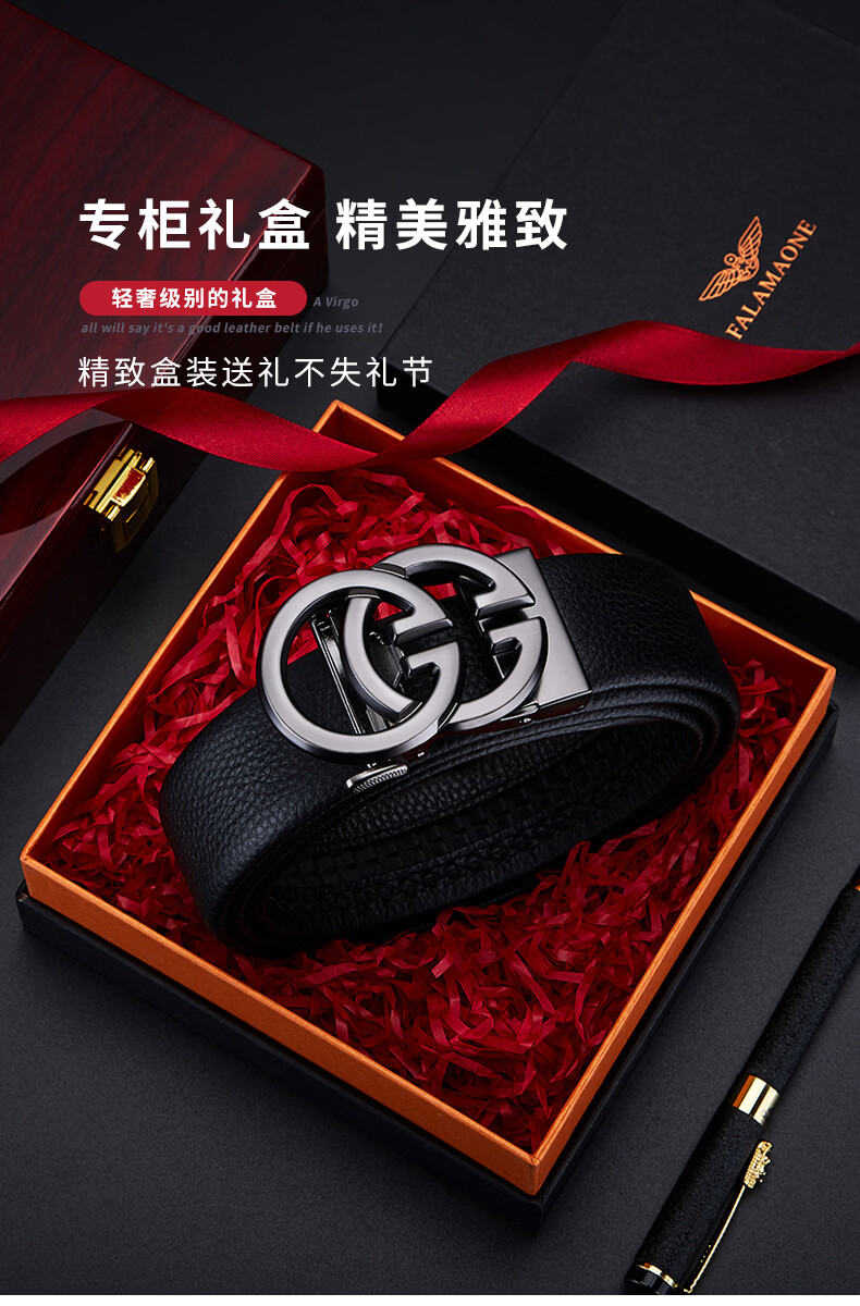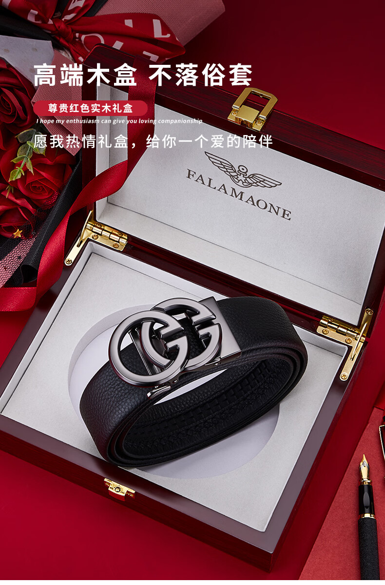 FALAMAONE男士皮带真皮自动扣2025新款腰带生日礼物送男友老公高档又实用 京仓配送/枪色【专柜礼盒】 120cm 改尺寸联系客服或下单备注