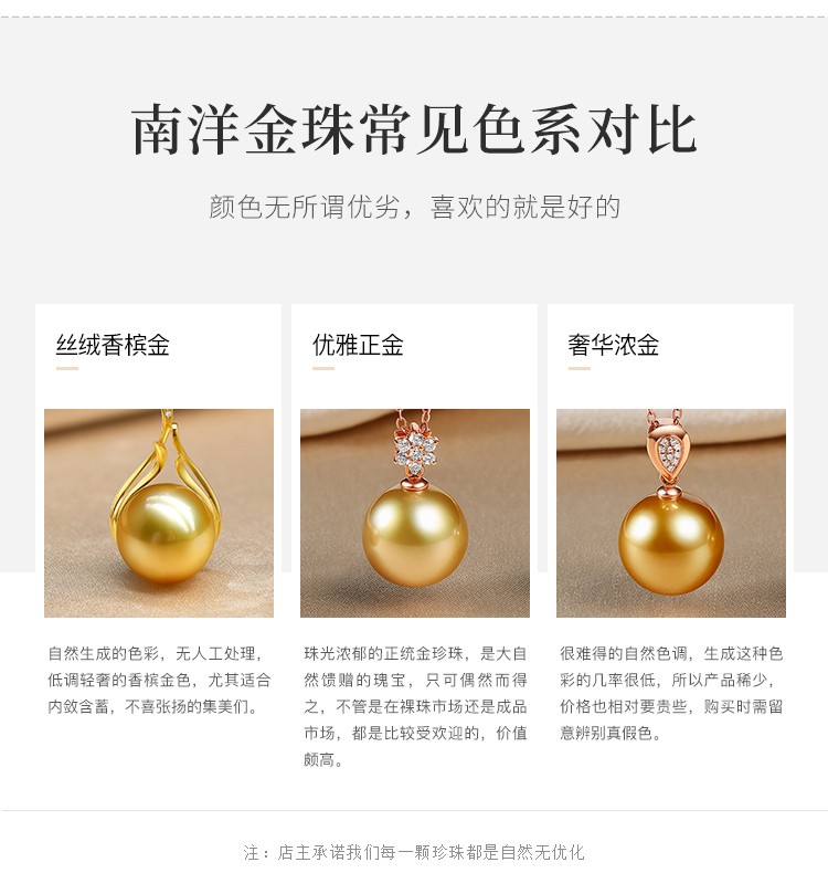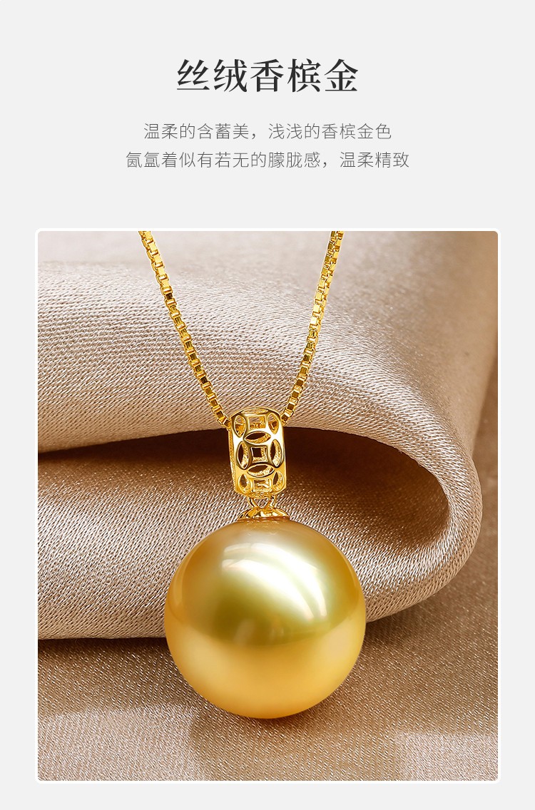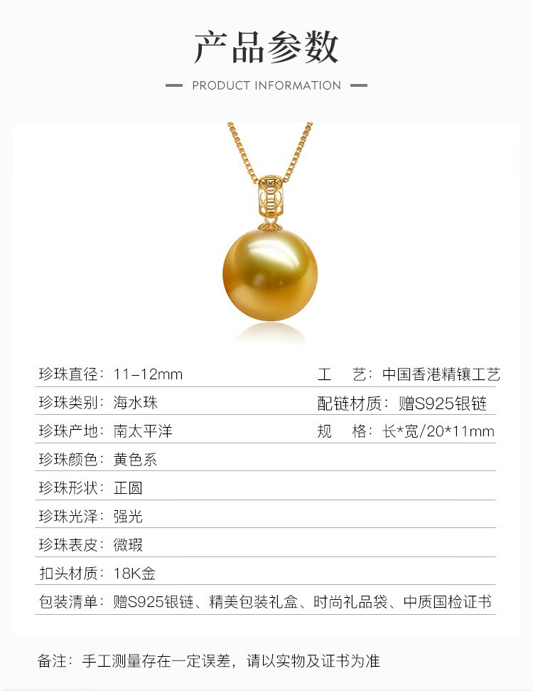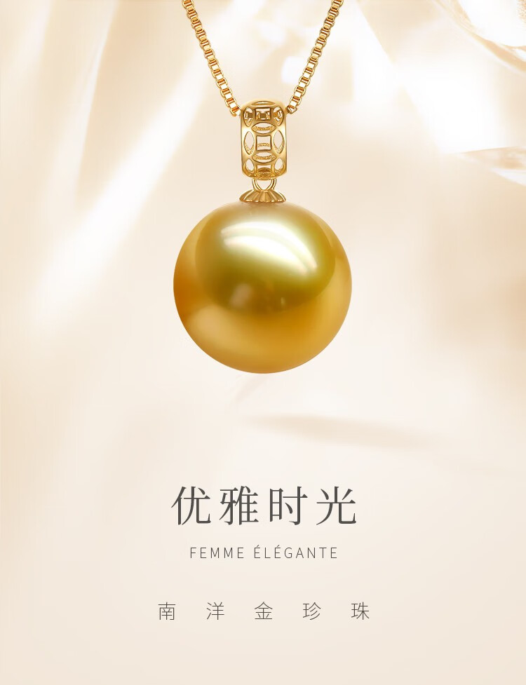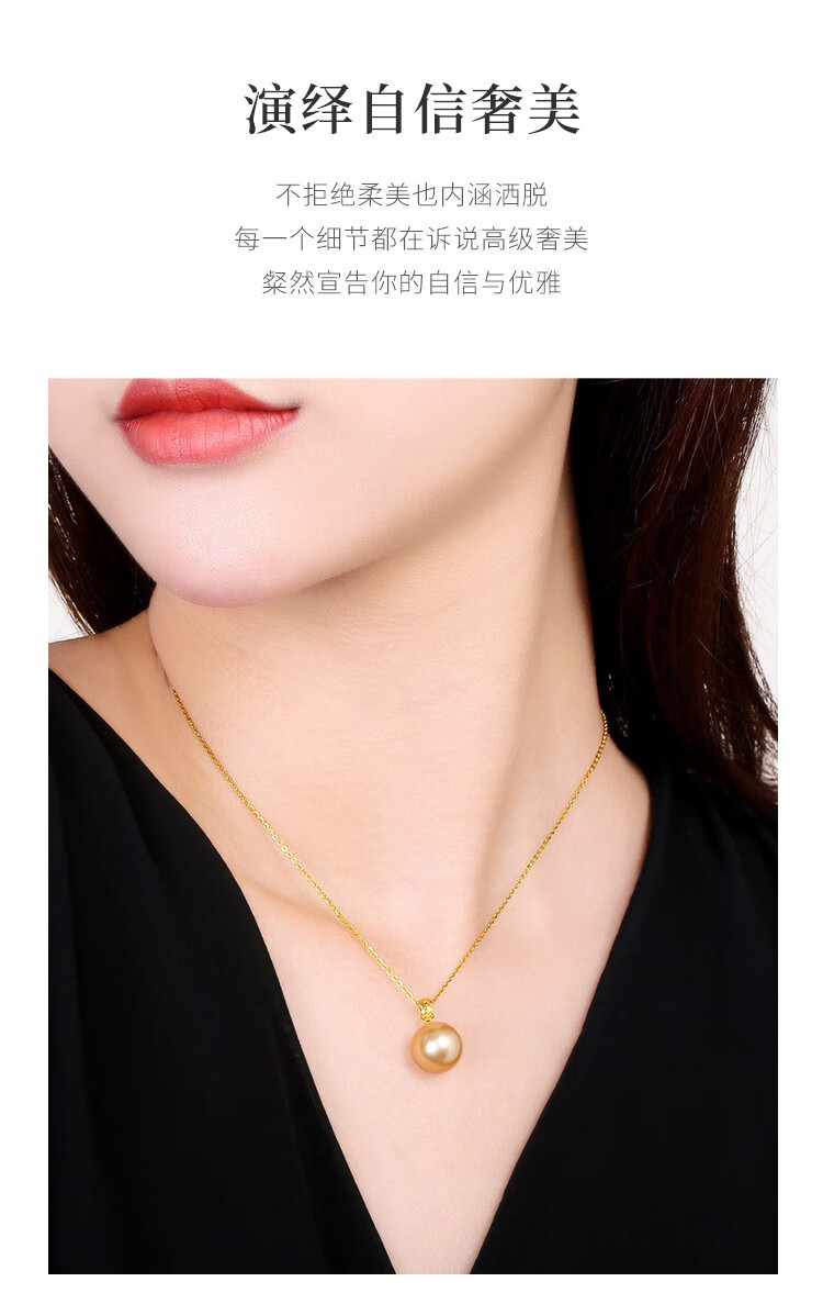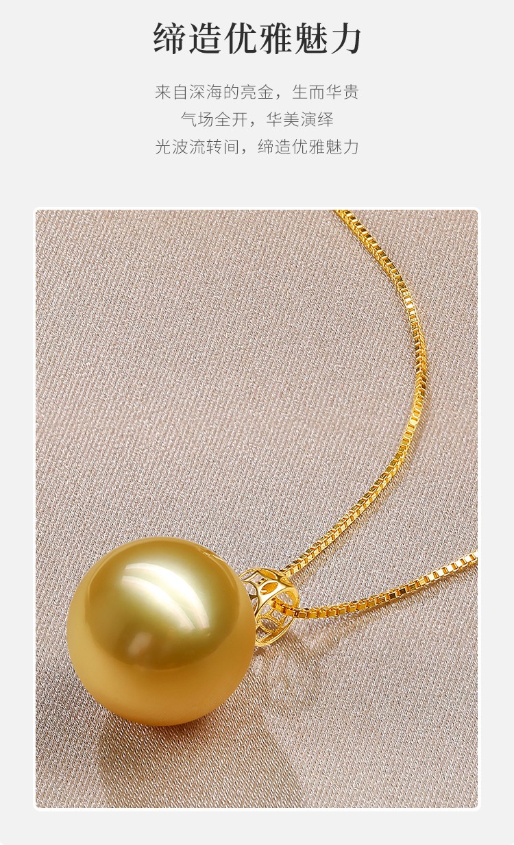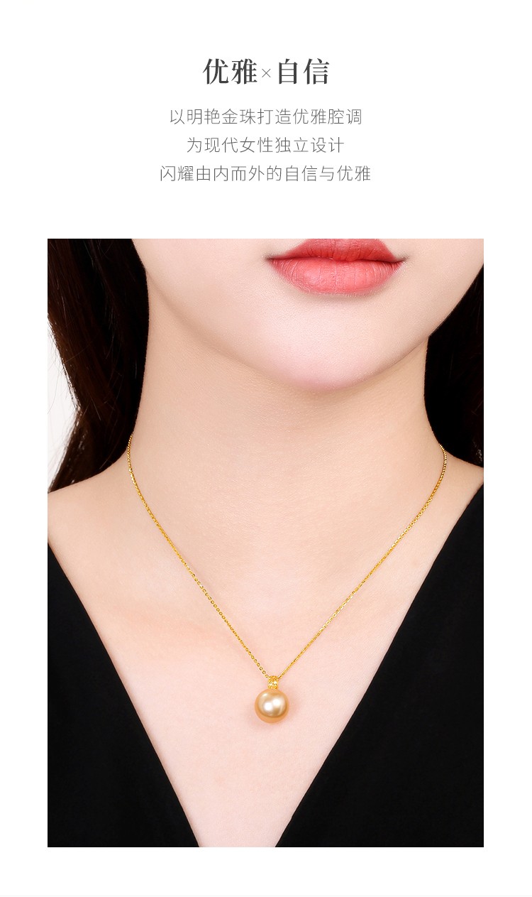 珍珠皇后 18k金南洋金珠吊坠单颗海水珍珠项链优雅生日礼物送女朋友 10-11mm
